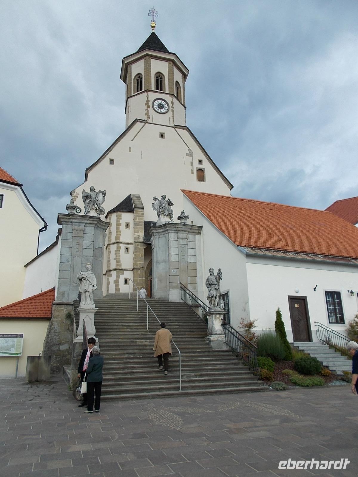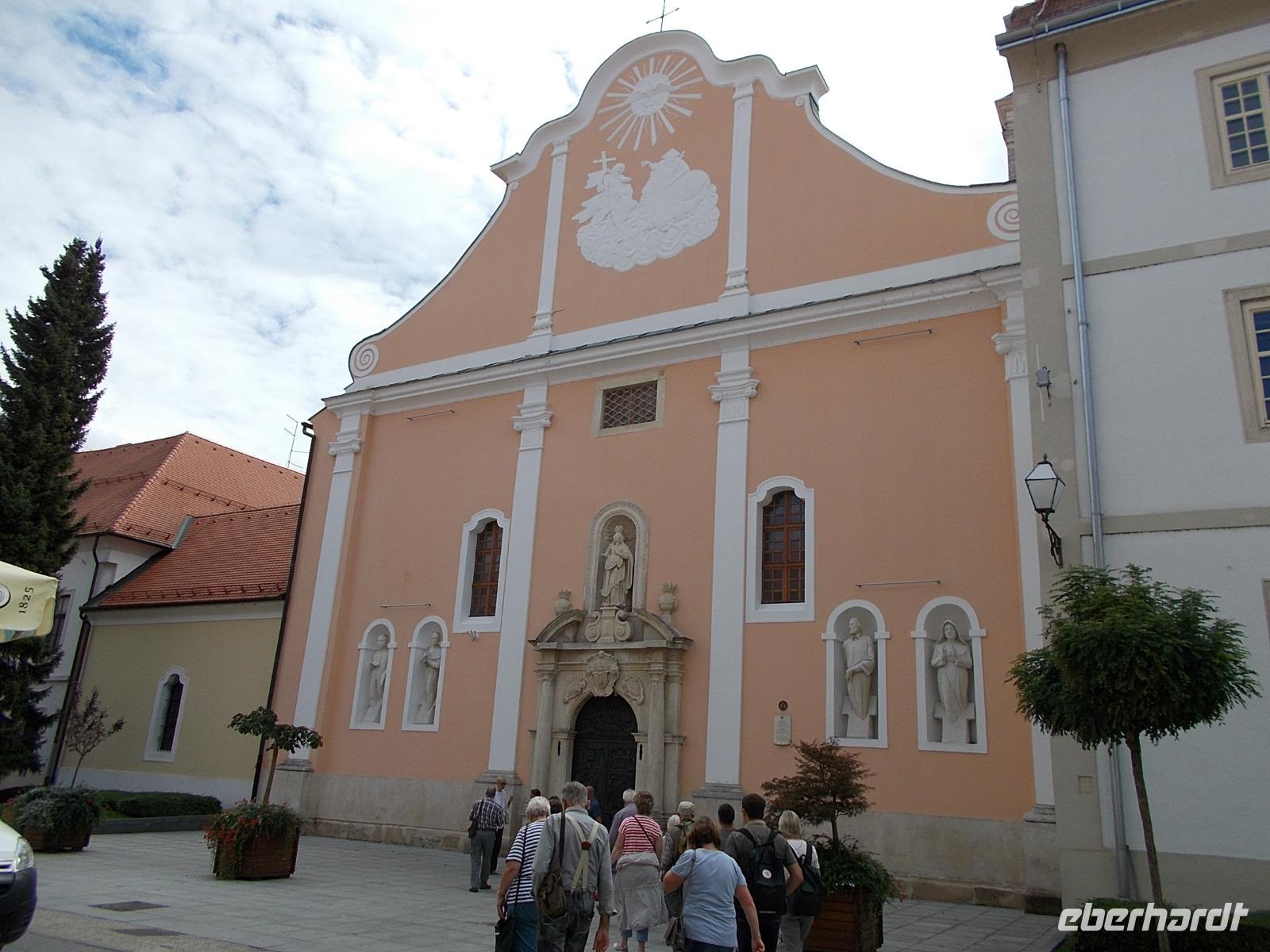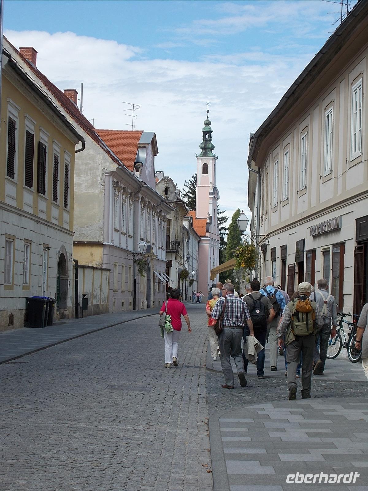 An diesem Tage fuhren wir über die kroatische Grenze nach Varazdin. Die Stadtführerin, eine Lehrerin, konnte sich nicht von ihrer Klasse trennen, daher verbrachten wir die freie Zeit auf dem Rathausplatz. Die anschließende Führung in der Stadt im Norden Kroatiens dauerte dann zwei Stunden und endete am Friedhof. Varazdin liegt am rechten Ufer der Drau und ist wirtschaftliches Zentrum Nordkroatiens. Danach fuhren wir bei Strigova über die kroatische Grenze, wo penibel unsere Ausweise kontrolliert wurden. Über Ljutomer erreichten wir den Weinbauernhof Ratek, wo wir zum Abendessen eingeladen waren. Unser Fahrer Roman meisterte die engen Weinbergsgassen mit Bravour.