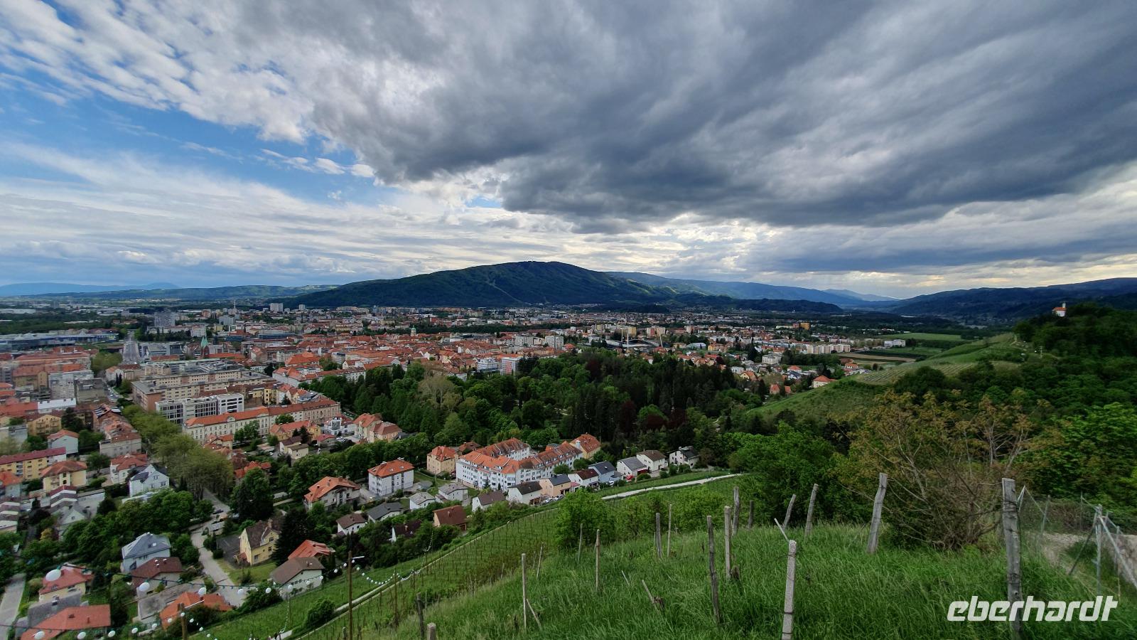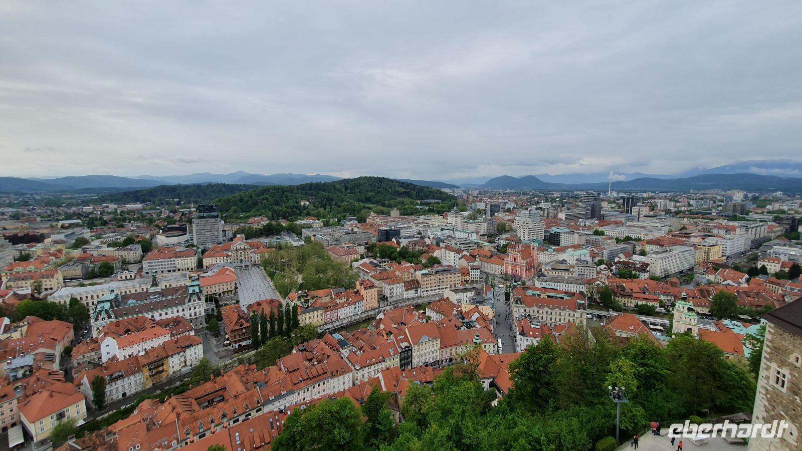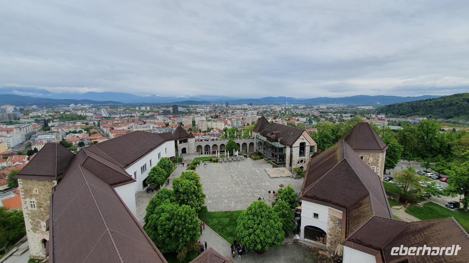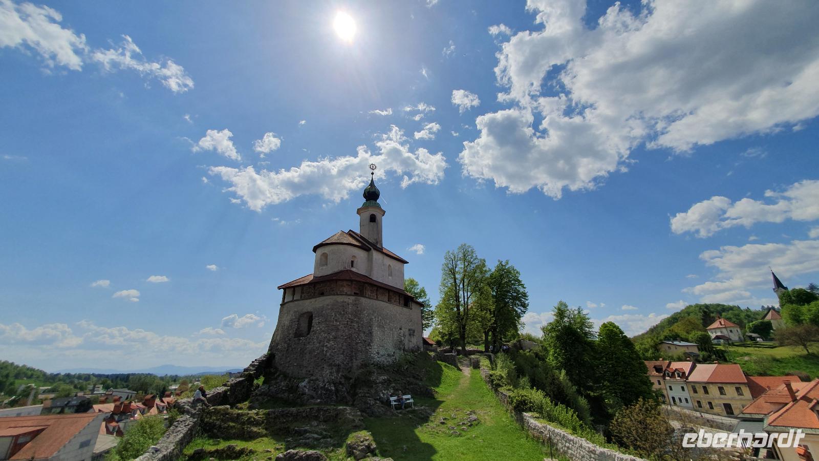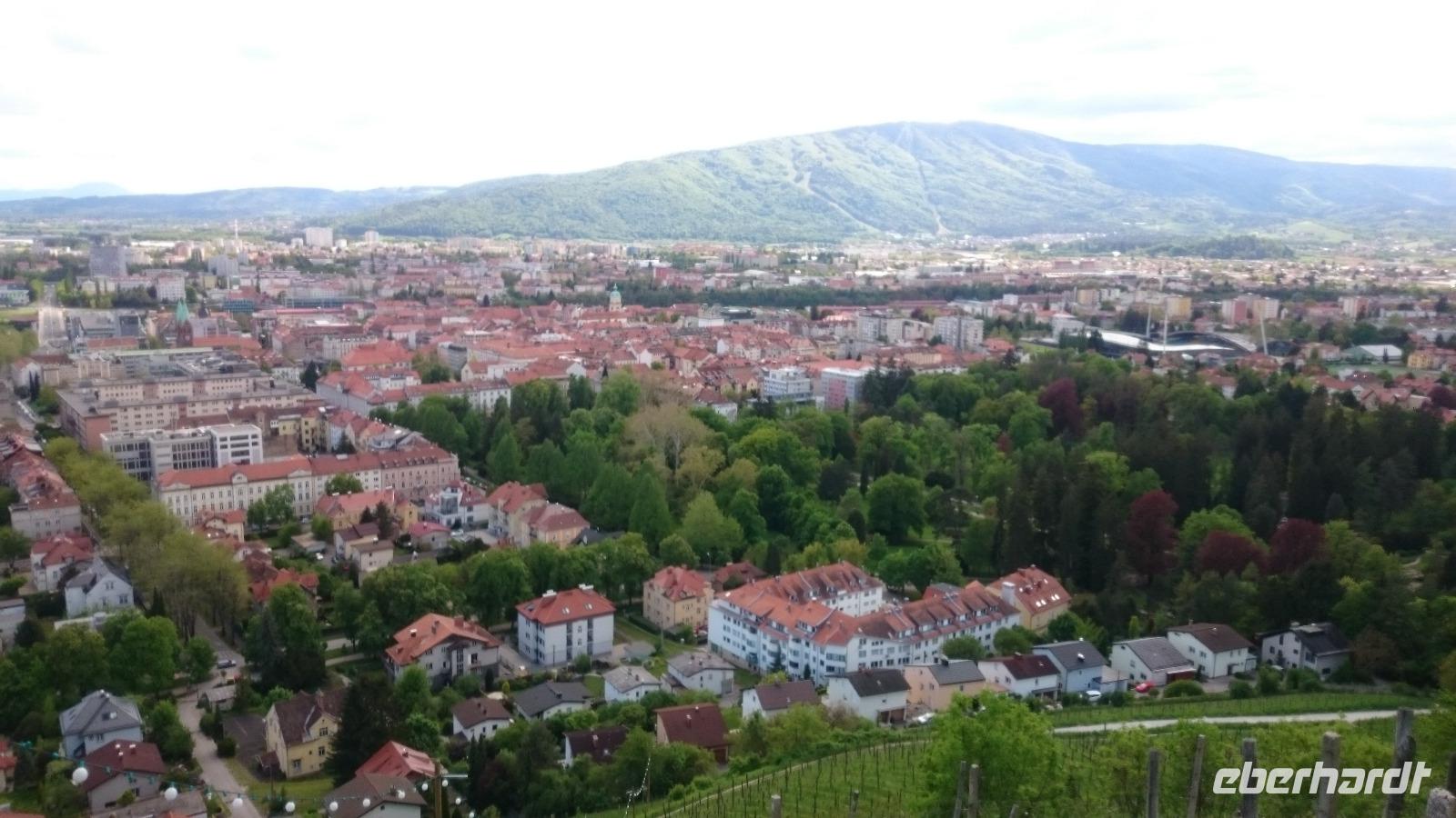 Blick von der Kapelle auf dem Steinklotz mitten in der Stadt bot uns ein herrliches Panorama Kamnik-s.