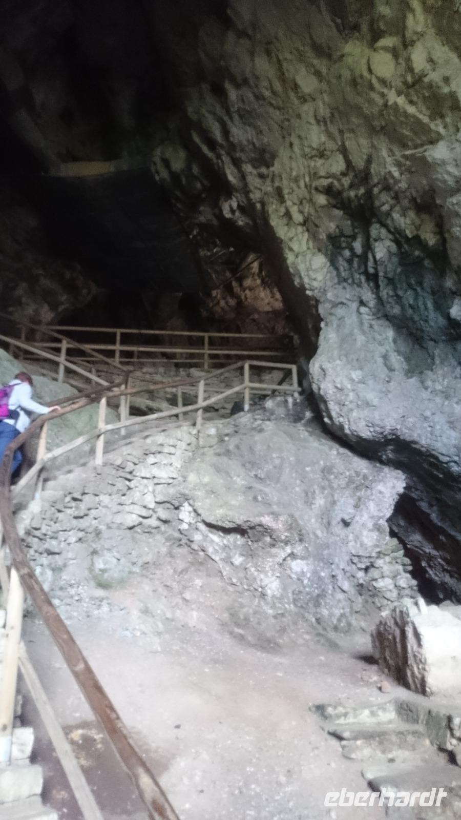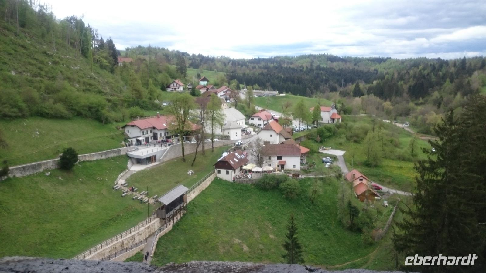 bedeutet Vor der Höhle. Predjamski grad - die Burg vor der Höhle. Einer der größten und best erhaltensten Höhlenburgen der Welt. Bevor wir uns in die Seele des berühmtesten Bewohners - Erasmus Predjamski - versetzen, stärken wir uns zuerst mit einheimischen Spezialitäten, die man unmittelbar an der Burg, in dem Wirtshaus Pozar, bekommen kann. Für Groß- und Kleinhunger, alles dabei. Vertieft in den Texten des Audioquide erhoffen Viele die Geheimnisse der Burg und ihren Geist zu erahnen. Erasmus würde schmunzeln wenn er das alles sehen würde. Allerdings würde er nicht schmunzeln über sein Schicksal - na ja, Hochmut kommt vor dem Fall - ein ganzes Jahr lang hat er mit den Belagerern Humbuck getrieben damit dass er sie mit den reifen Kirschen aus Vipava Tal, die er sich durch ein unterirdisches Tunnelsystem bringen ließ, beworfen hat. In Postojna waren die Kirschbäume erst in der Blüte. Sein Ende fand Erasmus der Raubritter, auf der Latrine