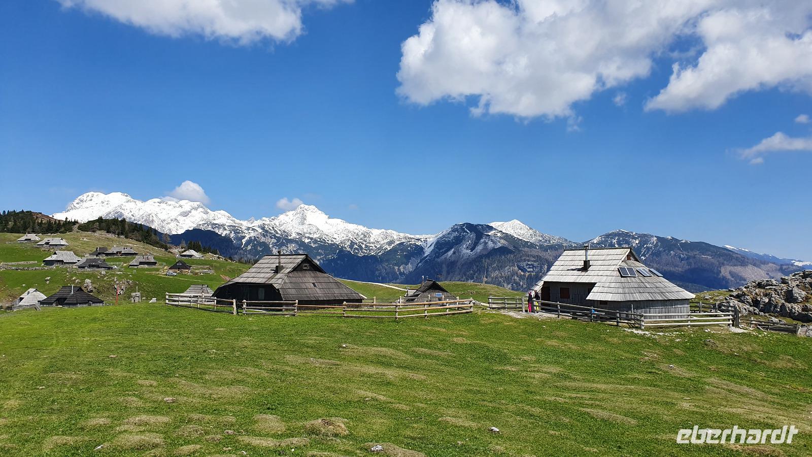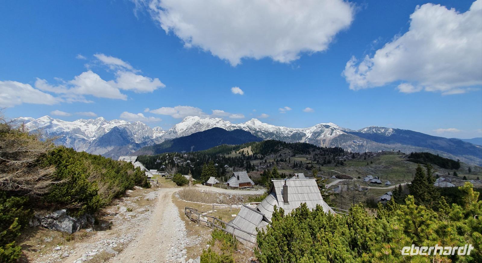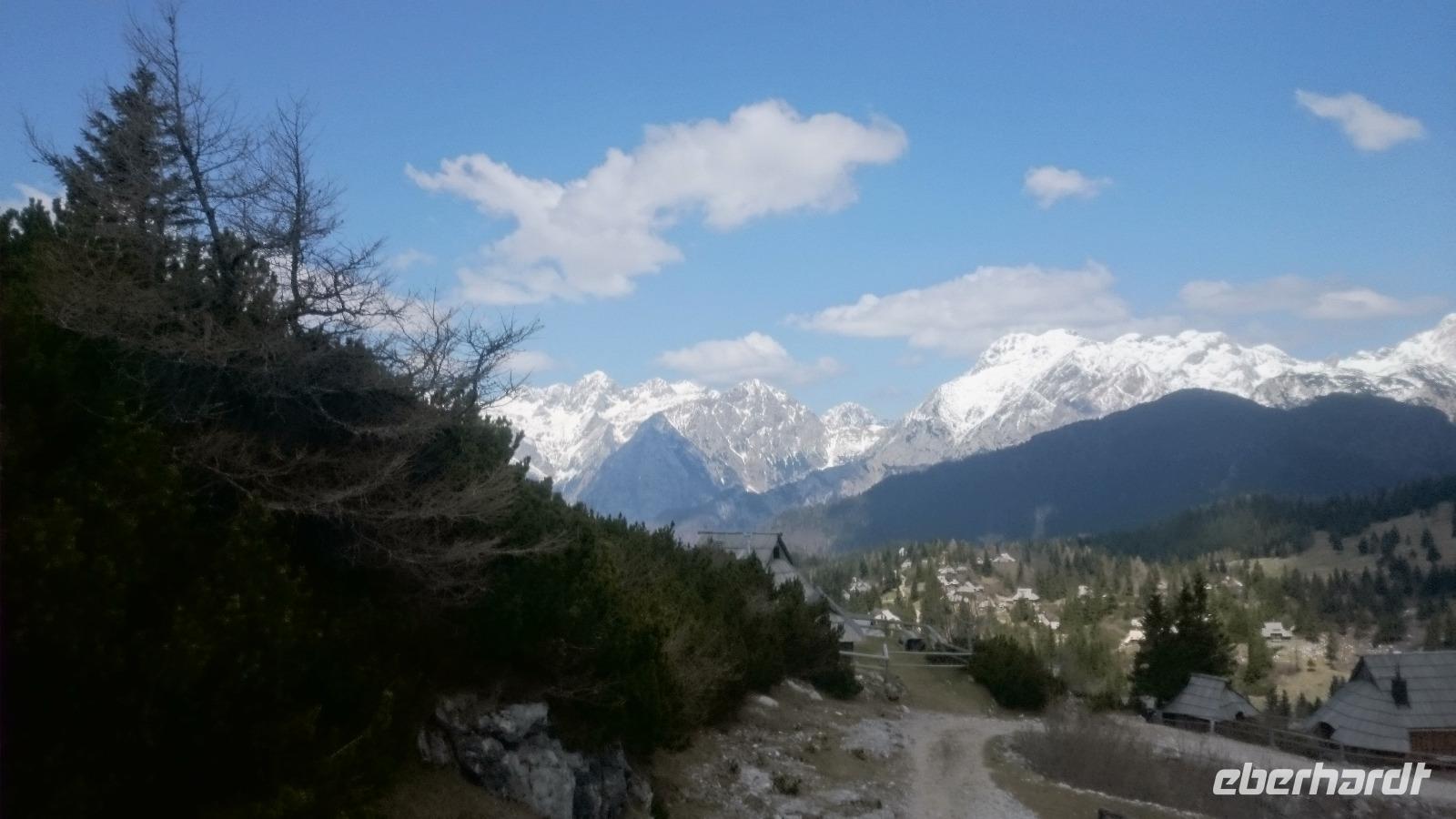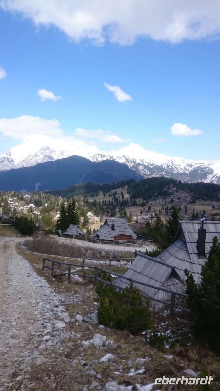 Heute möchten wir in die Berge: hoch hinauf auf Velika Planina. Das Wetter, wie aus dem Bilderbuch: ein richtiger oberkrainischer Frühlingstag - , der Himmel blau, die Gipfel der Berge mit einer weißen Schneekappe bedeckt und die Täler und Tiefebene in zartem Grün. Das einzige Weiße sind die Apfelbäume in der Blüte. Mit Seilbahn und Sessellift auf 1600 m und dann 2 Stunden spazieren in der Bergwelt mit Almhütten und Blumenwiesen....Man kann sich hinsetzen und einfach das Ganze einatmen, ohne etwas zu sagen - die Natur flüstert von selbst ihr Lied....