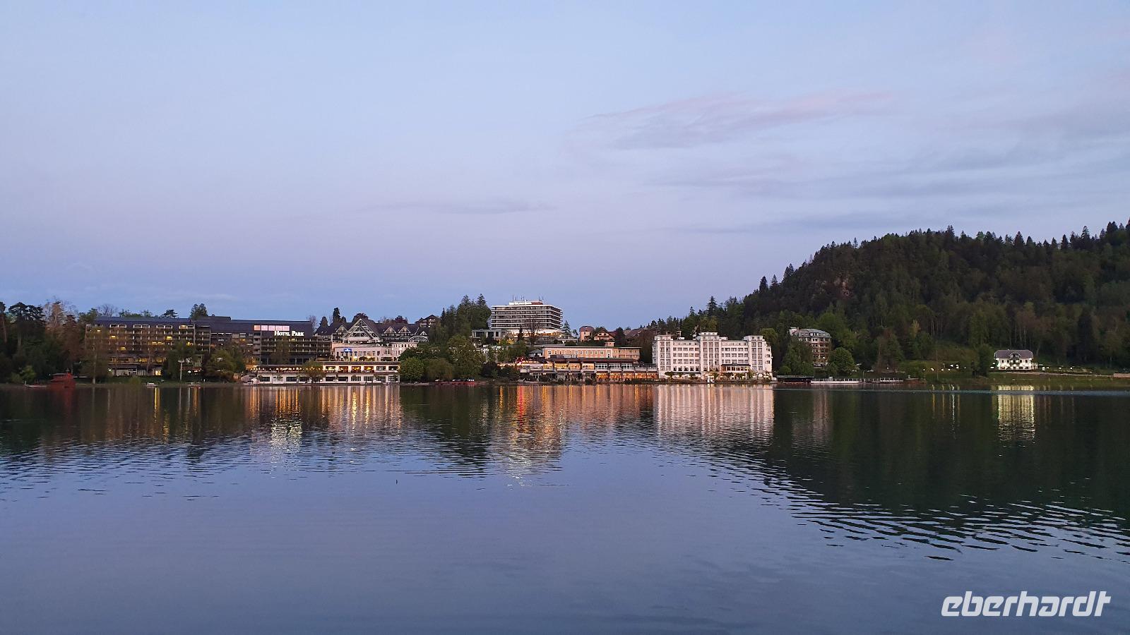 Anschließend erwartet uns Bled, noch warm von der Sonne und herrlich im Sonnenuntergang. Das Hotel Astoria hat ein besonderes Fleur. Und wir haben Hunger - Essen ist ganz, ganz gut.