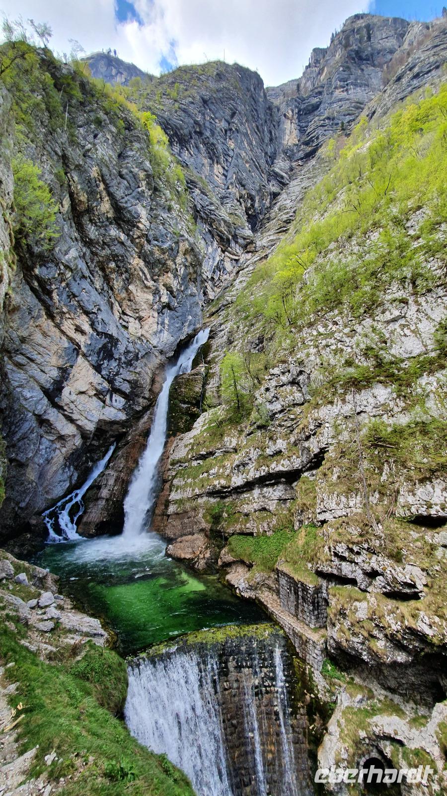 Der Wasserfall Boka zeigte sich mit etwas weniger Wasserpracht, weil die ganzen Monate sehr trocken waren und das Flussbett des Wildbaches fast austrocknen ließ. Trotzdem war der Blick majestätisch.