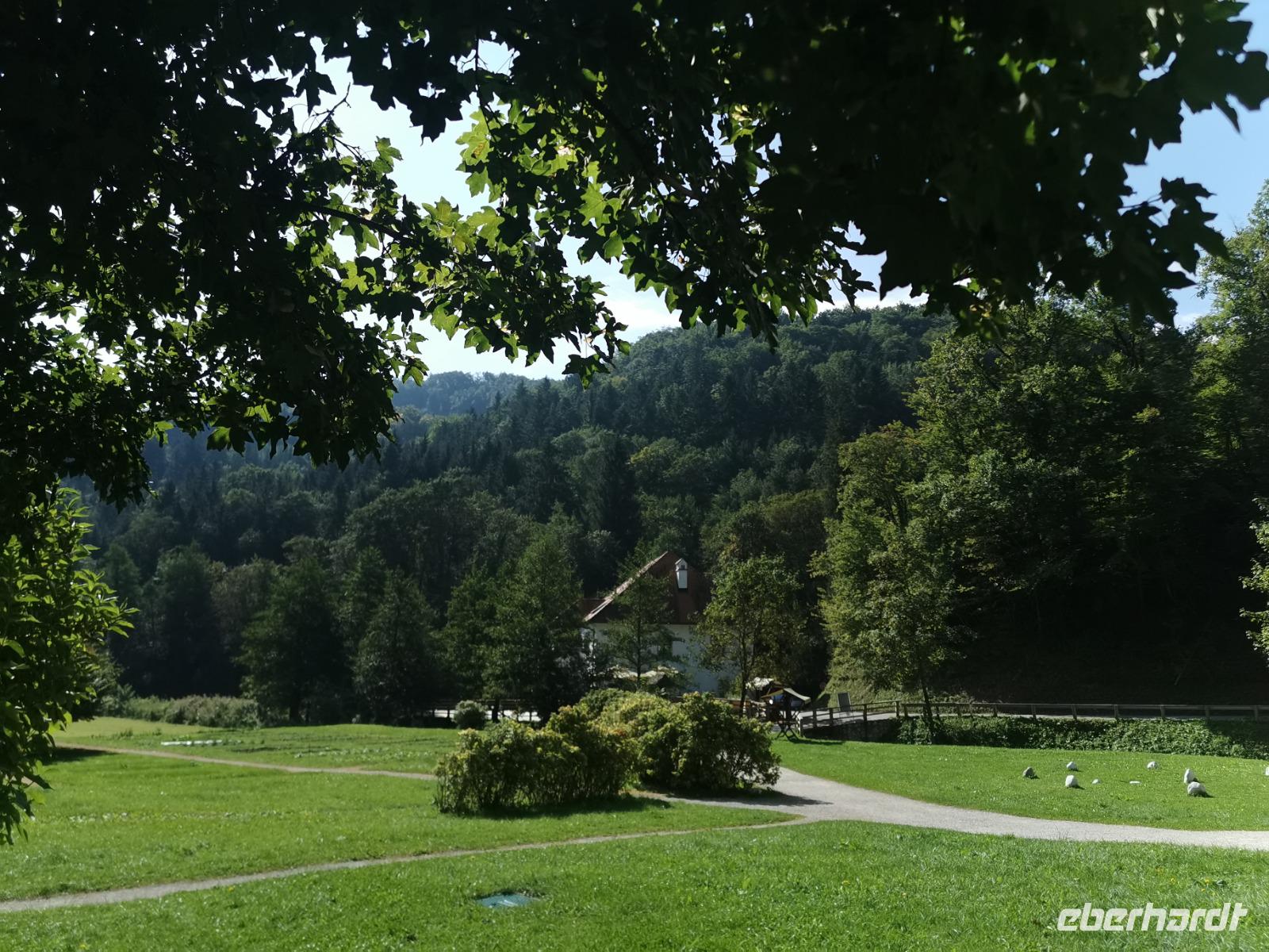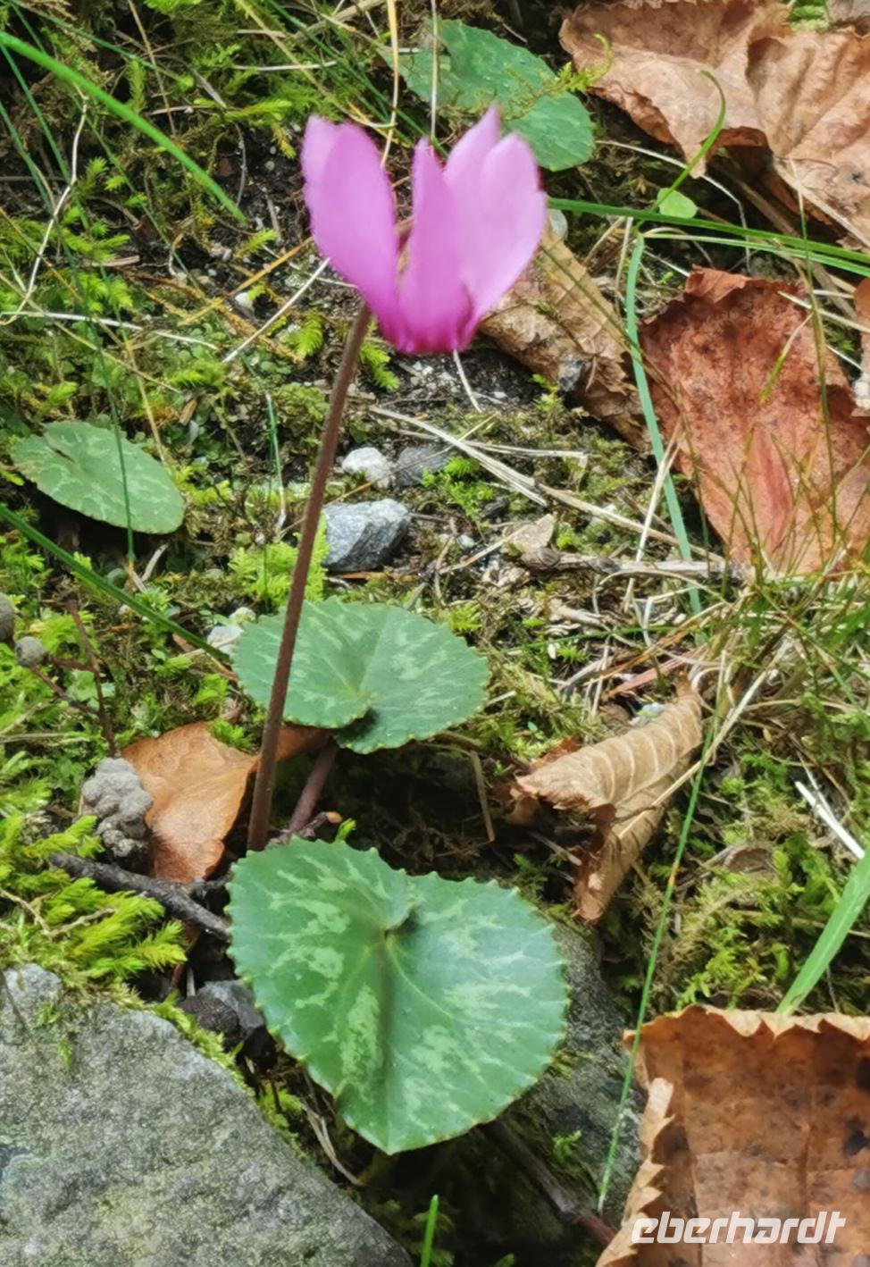 Ein kleines Naturerlebnis in diesem herrlichen Tal wollten wir zum Abschluß noch erleben. So machen wir uns in Boka auf den etwa zehnminütigen recht steilen Aufstieg zum Bokawasserfall, der eine Gesamthöhe von 144 Metern erreicht. Dieser Wasserfall stürzt 106 Meter im freien Fall nach unten auf ein Plateau, um dann weitere 30 Meter in das Tal zu fallen. Im Sommer allerdings ist er nicht so wasserreich wie im Frühjahr nach der Schneeschmelze und so kann man sich dieses Spektakel heute nur annähernd vorstellen. Aber alle, die mitgekommen sind, freuen sich über einen Abschluß in so schöner Natur mit blühenden Alpenveilchen rechts und links im Wald.