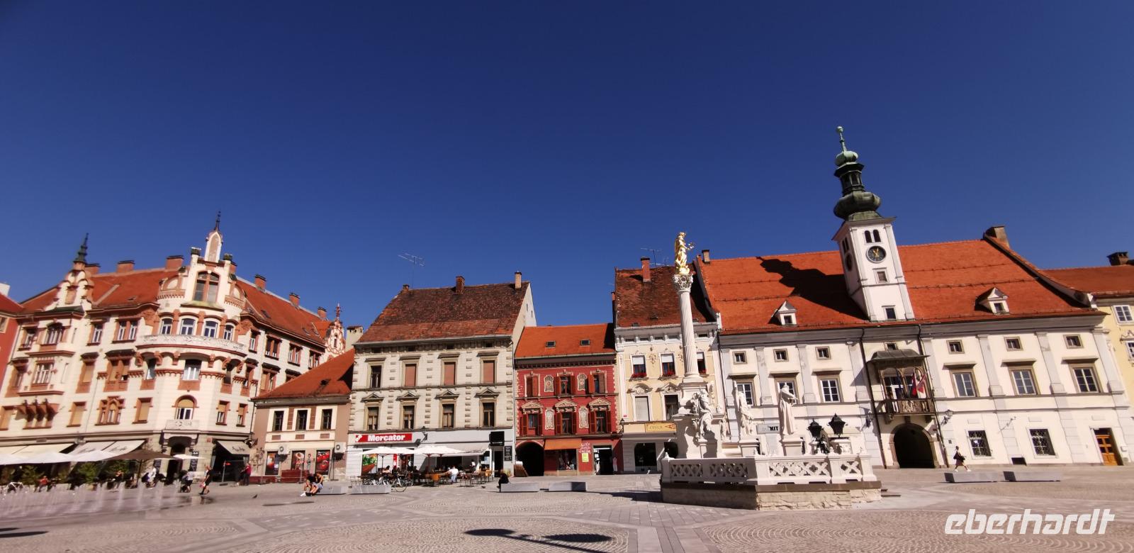 Nach einer erholsamen Nacht holte uns Petra um 9.30 Uhr am Mercure Hotel in Maribor ab und zu Fuß starteten wir zur Stadtbesichtigung. 2012 war Maribor Kulturhauptstadt Europas. Allein die Stadtgeschichte ist spannend. Im Mittelalter gehörte die Stadt an der Drau zum Herzogtum Steiermark bis 1282, danach übernahmen die Habsburger die Vorherrschaft. Im Jahre 1804 wurde sie wieder dem Herzogtum der Steiermark einverleibt und erst 1918 als Provinz Sloweniens zum damaligen Staat Jugoslavien erklärt.