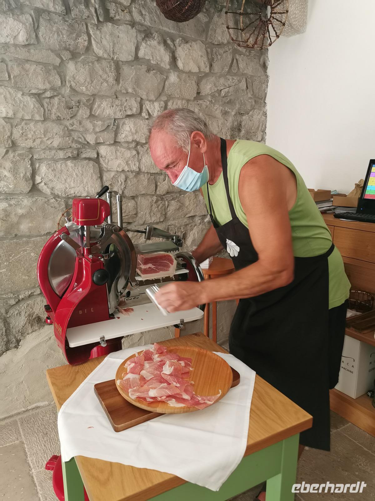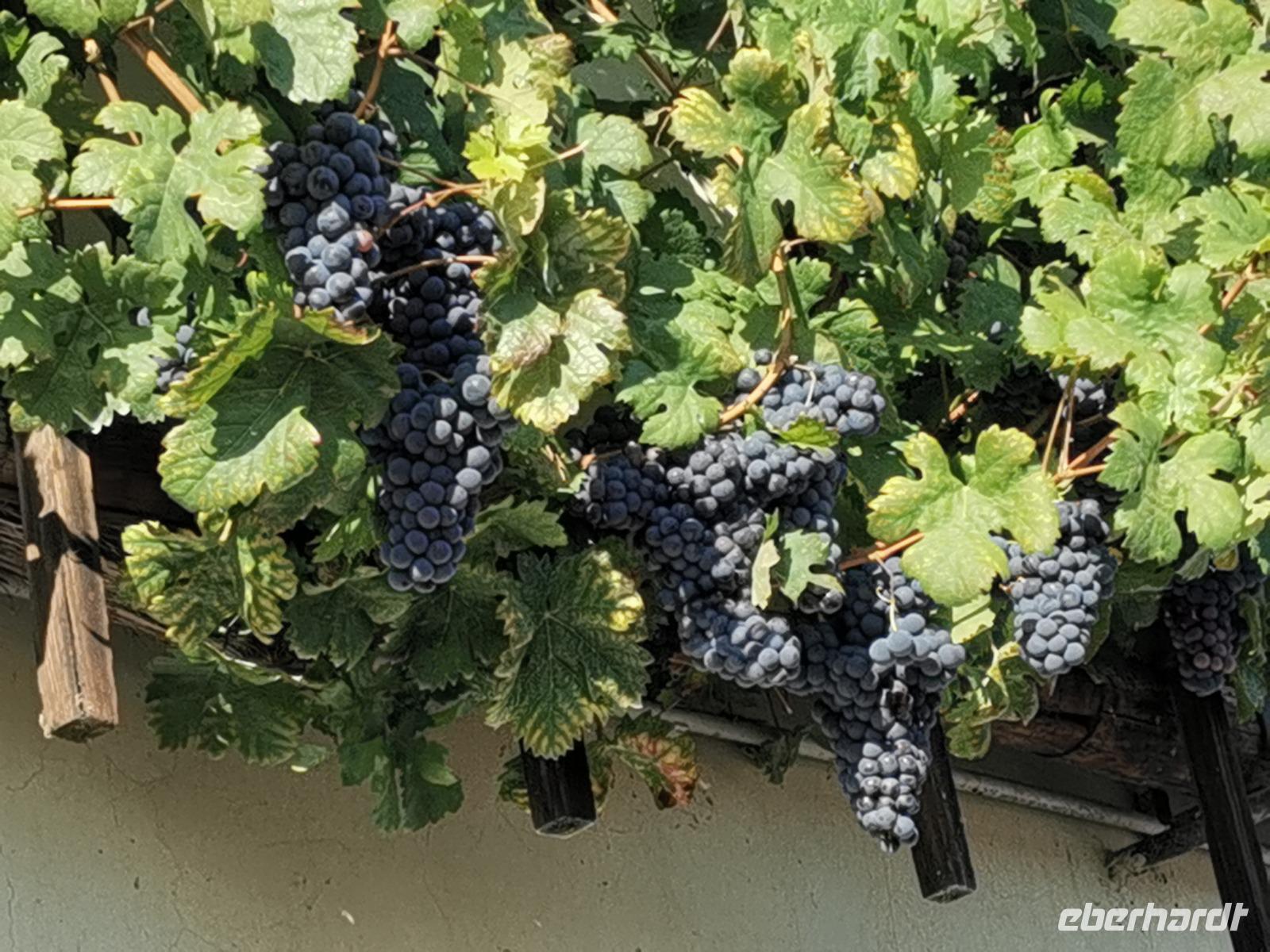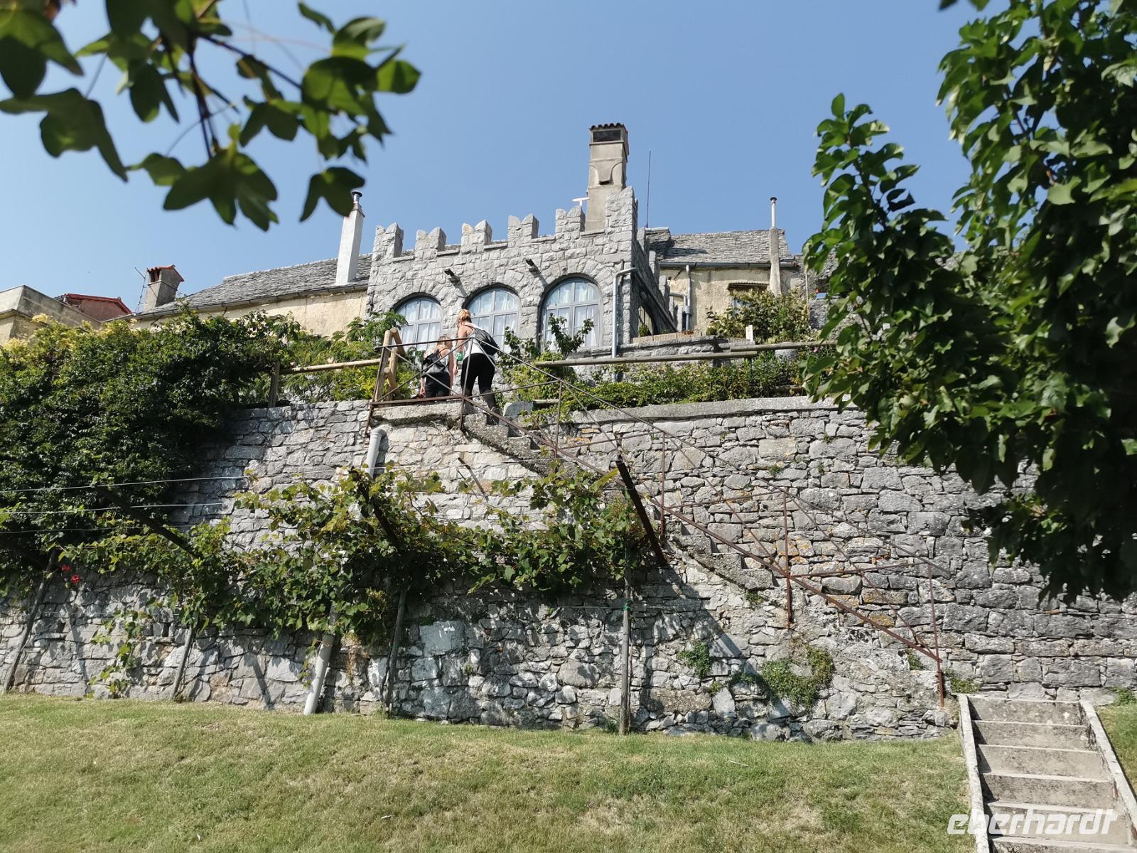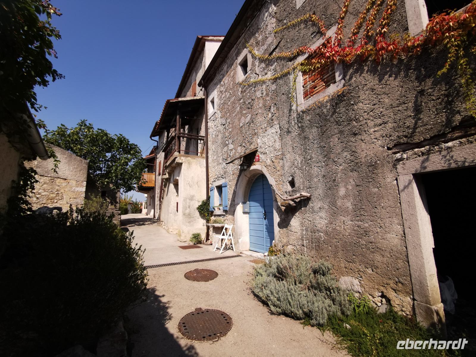 Im Ort selbst fühlten wir uns eher in ein mittelalterliches Szenario versetzt und Simone spendiert 3 verschiedene Weine von den exzellenten regionalen Karstreben, die wir bei unserer Fahrt rechts und links am Weg schon bewundern durften.