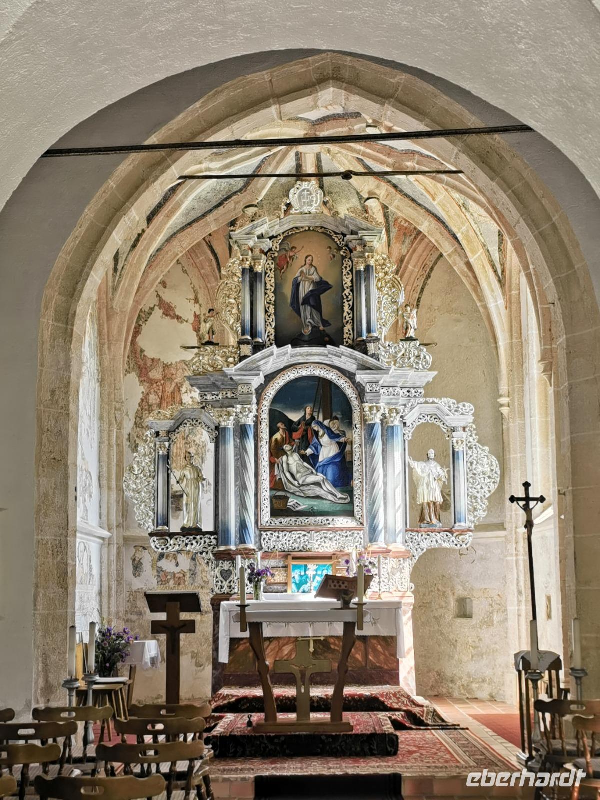 Heute existiert von der Klosterkirche nur noch die Ruine und lediglich die umliegende Mauer und die Wirtschaftsgebäude sind gut erhalten bzw. erneuert worden. Als wir ankamen waren gerade an der Kirchenruine umfangreiche Sanierungsmaßnahmen im Gange. Die kleinen Klosterlädchen mit Kräutertees und Schnaps aus eigener Herstellung zogen die Gäste magisch an und der Klostertöpfer wurde regelrecht bestürmt von den Damen, alle wollten seine kleinen Tonsternzeichen haben. Zuallerletzt hatten wir heute sogar das Glück, daß wir den Schlüssel zur im Kloster liegenden alten Apotheke erhielten und konnten sogar einen Blick hinein werfen.