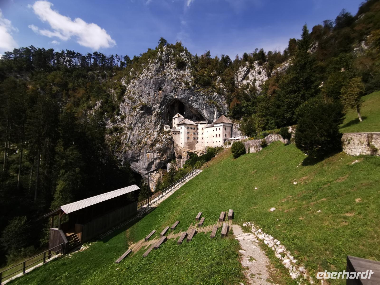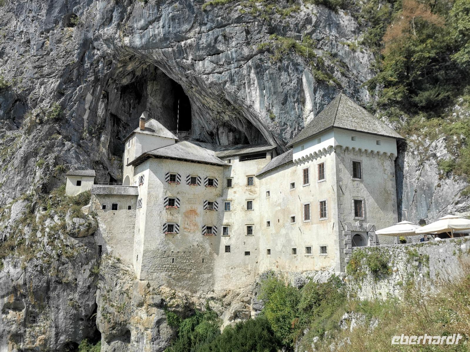 Keine 10 Kilometer von der Höhle entfernt liegt unser nächstes Ziel, die Höhlenburg Predjama, die auch unter dem Namen Erasmusburg bekannt ist. Am Ende eines Tales, in dem der Bach Lokva unter einer 123 Meter hohen Felswand versickert, wurde diese einmalig gelegene Burg in einer Höhle mitten an einer Felswand im 12. Jahrhundert errichtet und war damals im Besitz der Patriarchen von Aquileia und der Habsburger.