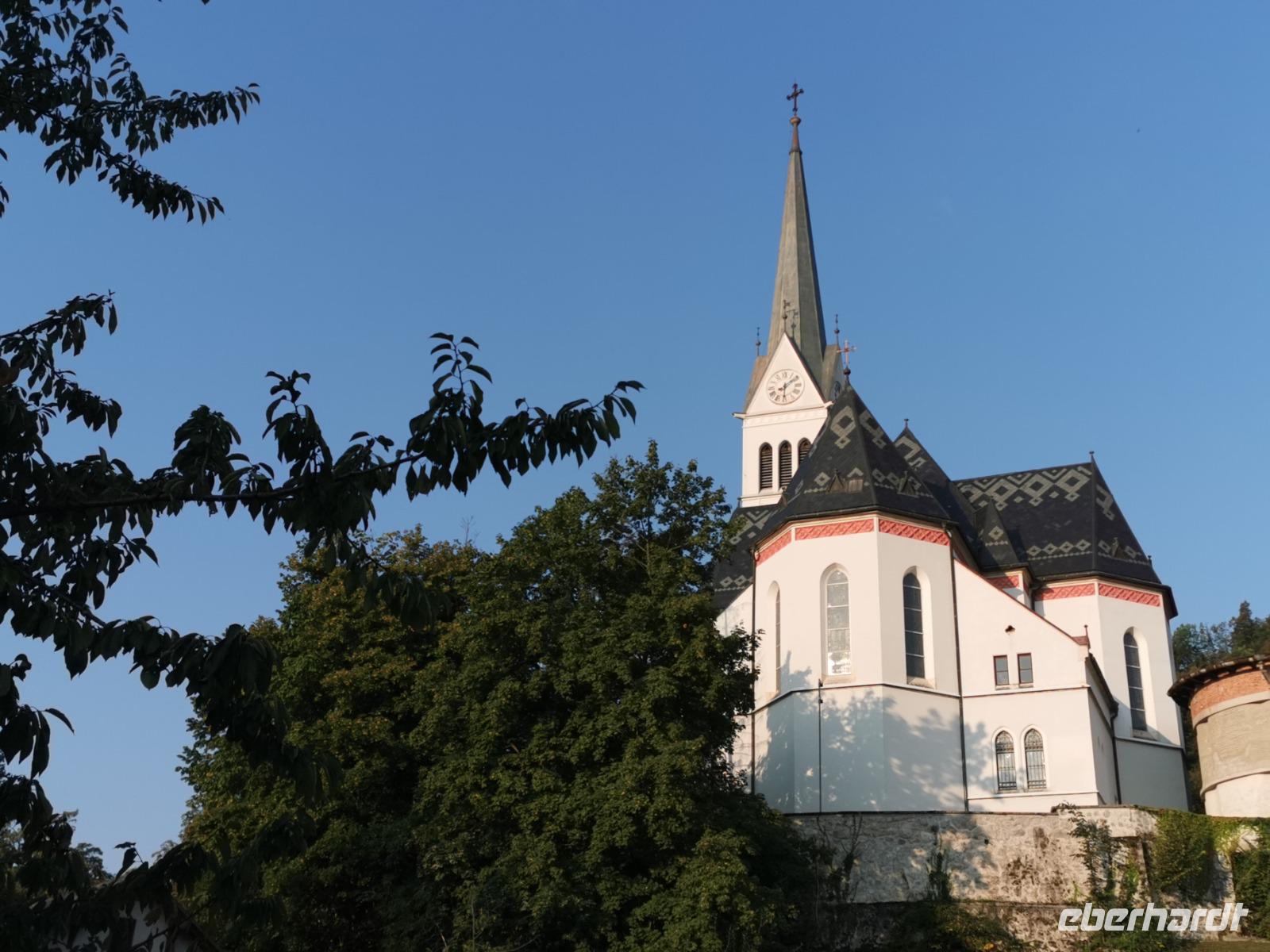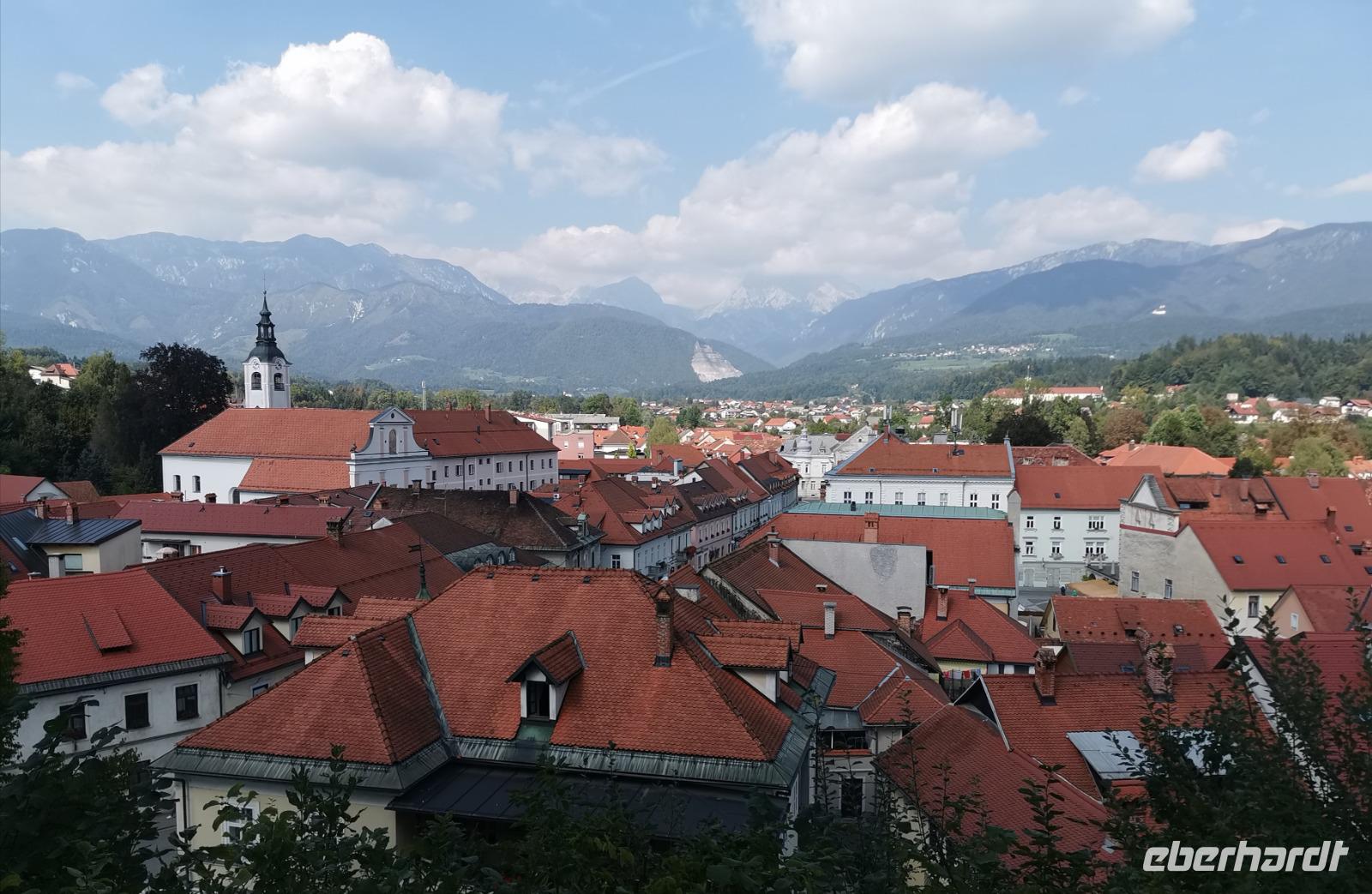 Aber auf dem Programm stand noch das kleine Krainer Städtchen Kamnik, eine Gemeinde südlich der Steiner Alpen nur 24 km entfernt von der Hauptstadt. Kamnik besitzt noch einen mittelalterlichen Stadtkern und wird von zwei Burgen, der kleinen (Maligrad) und der oberhalb der Stadt gelegenen Burgruine (Starigrad) begrenzt. Es war sehr ruhig in dem kleinen Städtchen, eine Hochzeitsgesellschaft feierte ausgelassen in einem Restaurant nahe der Burgruine. Ansonsten fallen wir mit unserer Gruppe in diesen engen Gassen sehr auf. Die meisten entschieden sich für einen Besuch des Eiscafés, andere liefen weiter bis zum Franziskanerkloster und am Nachmittag machen wir uns auf den Weg zum malerisch schönen Luftkurort Bled.