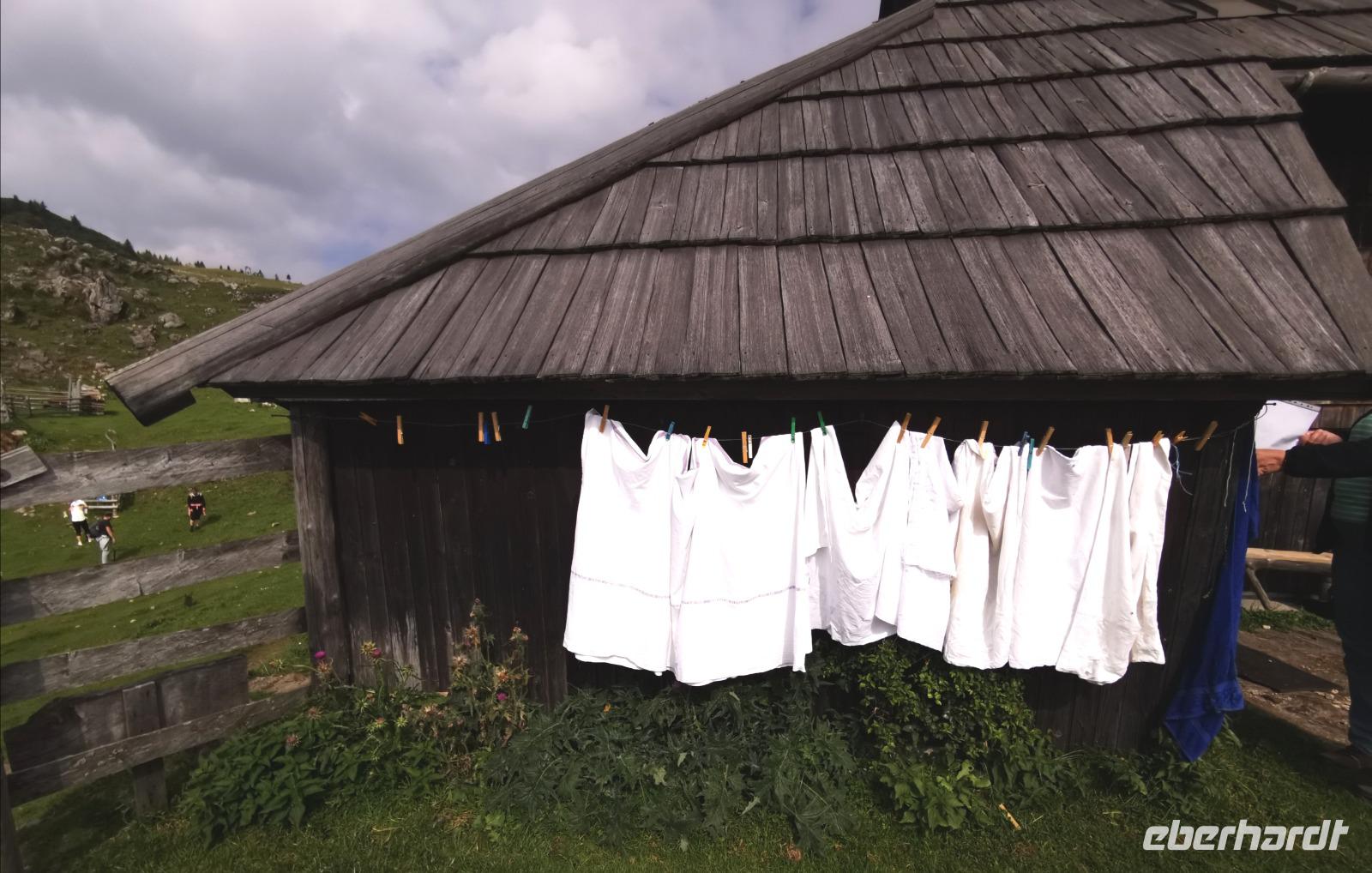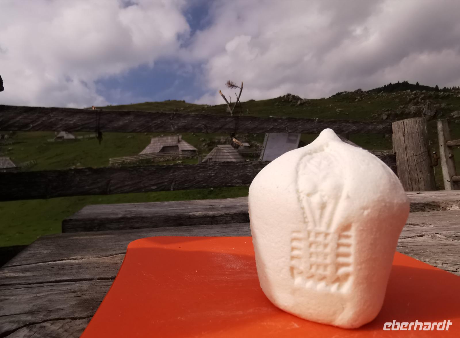 Glücklicherweise wurden Hütten und Kirche aber auf Initiative von Hirten im Jahr 1988 wieder aufgebaut und heute beherbergen sie wieder traditionelle Käsereien oder werden als Ferienwohnungen von Wanderern genutzt. Wir verbrachten fast drei Stunden in dieser Idylle, probierten den Käse, die salamiähnliche Wurst, saure Dickmilch und Sauerkraut. Neben uns grasten die frei herumlaufenden Kühe und wenn wir nicht noch einen Programmpunkt auf dem Plan gehabt hätten, wären wir gern länger oben geblieben.