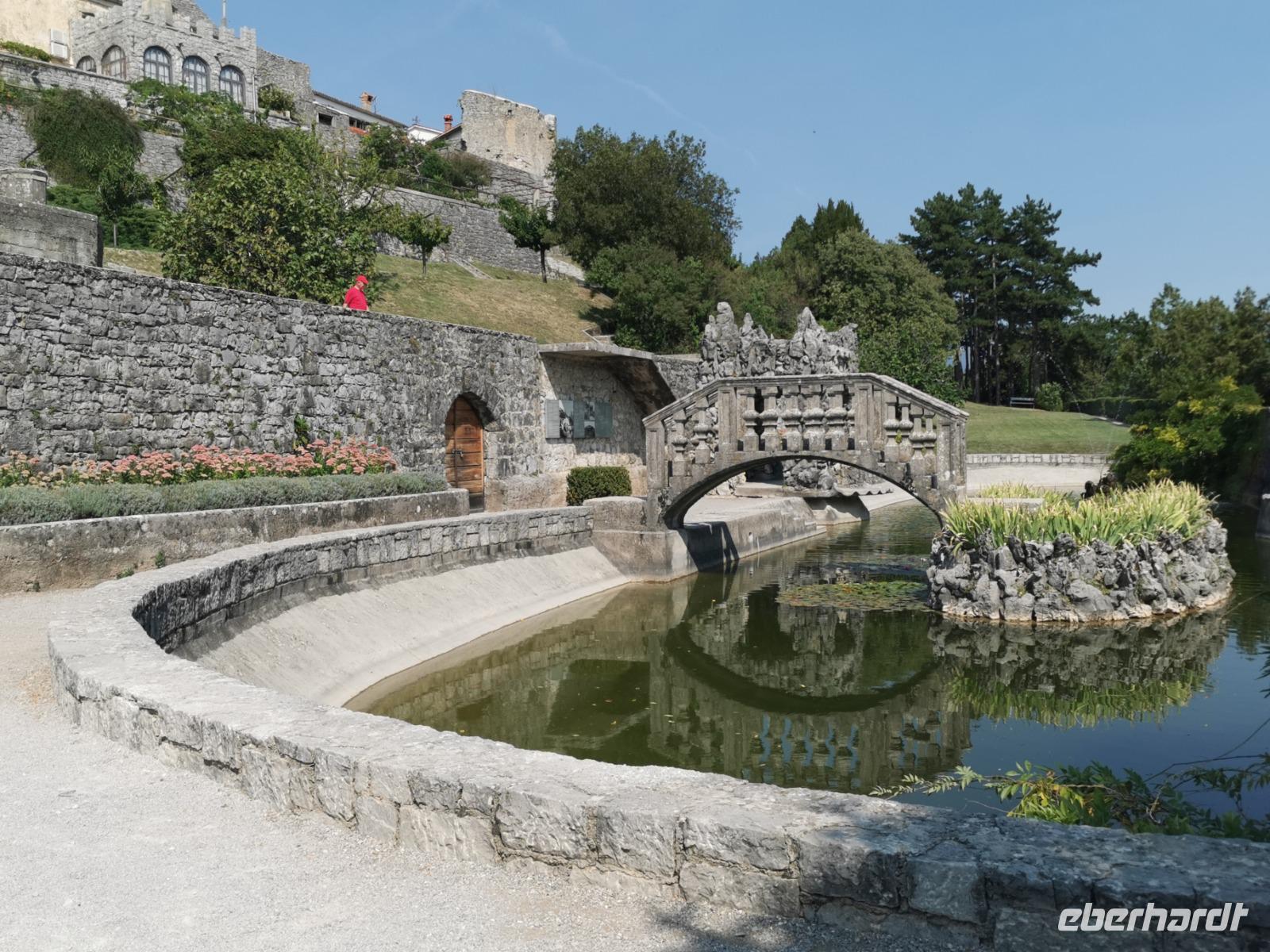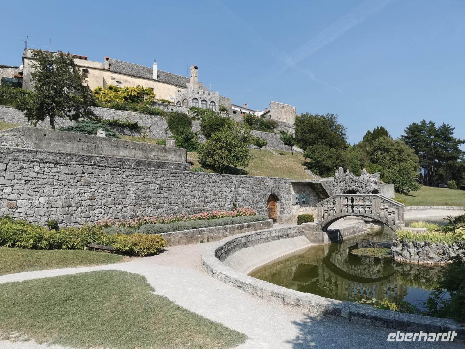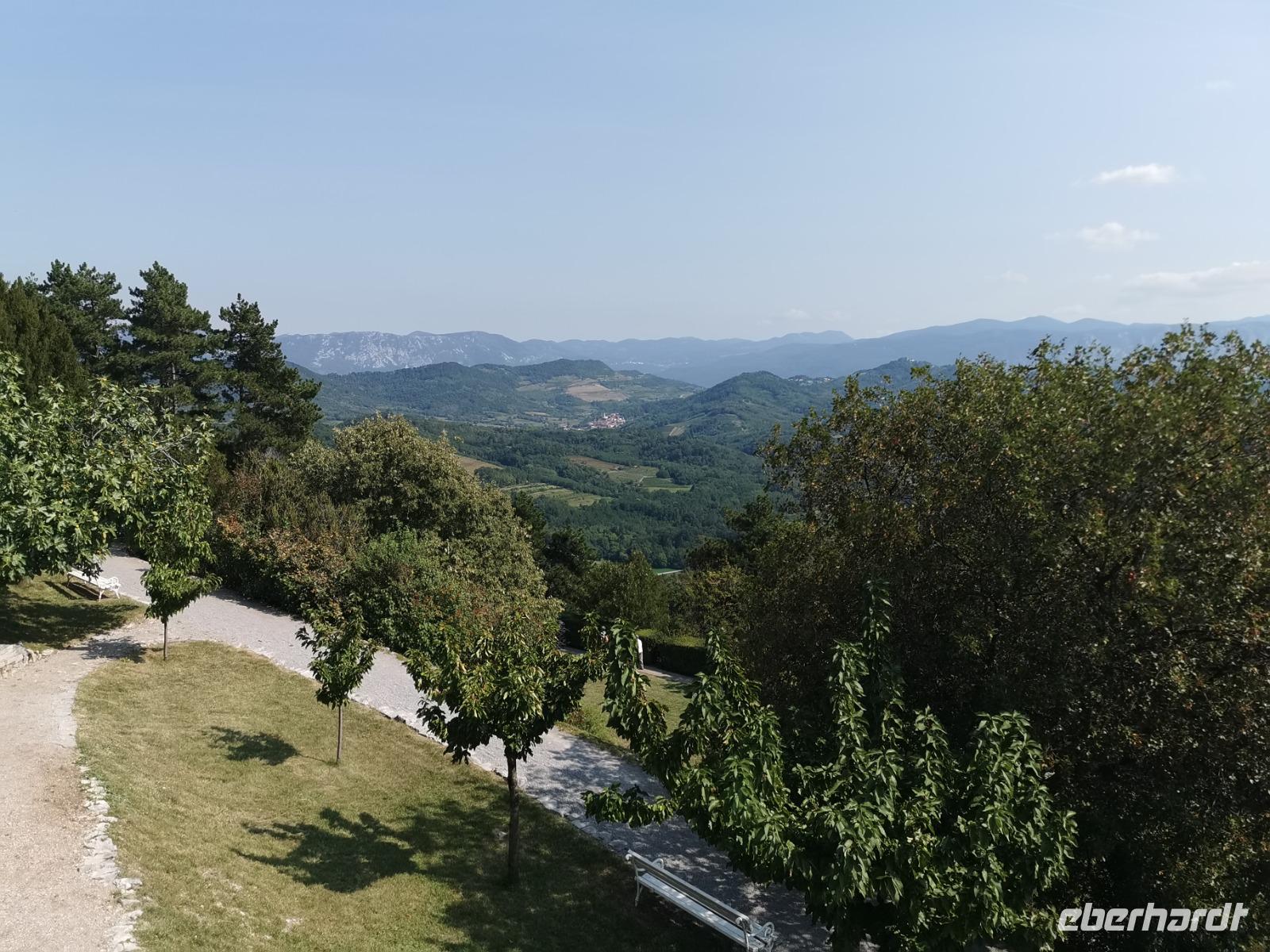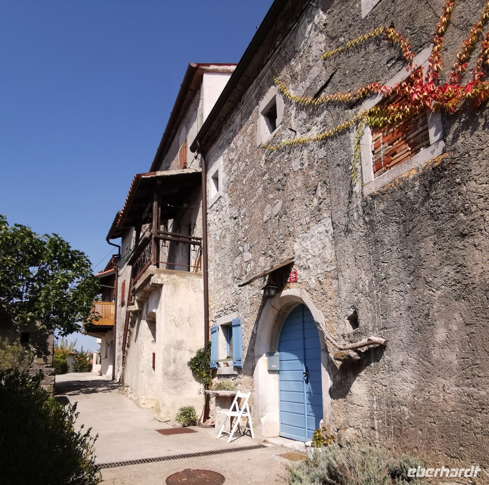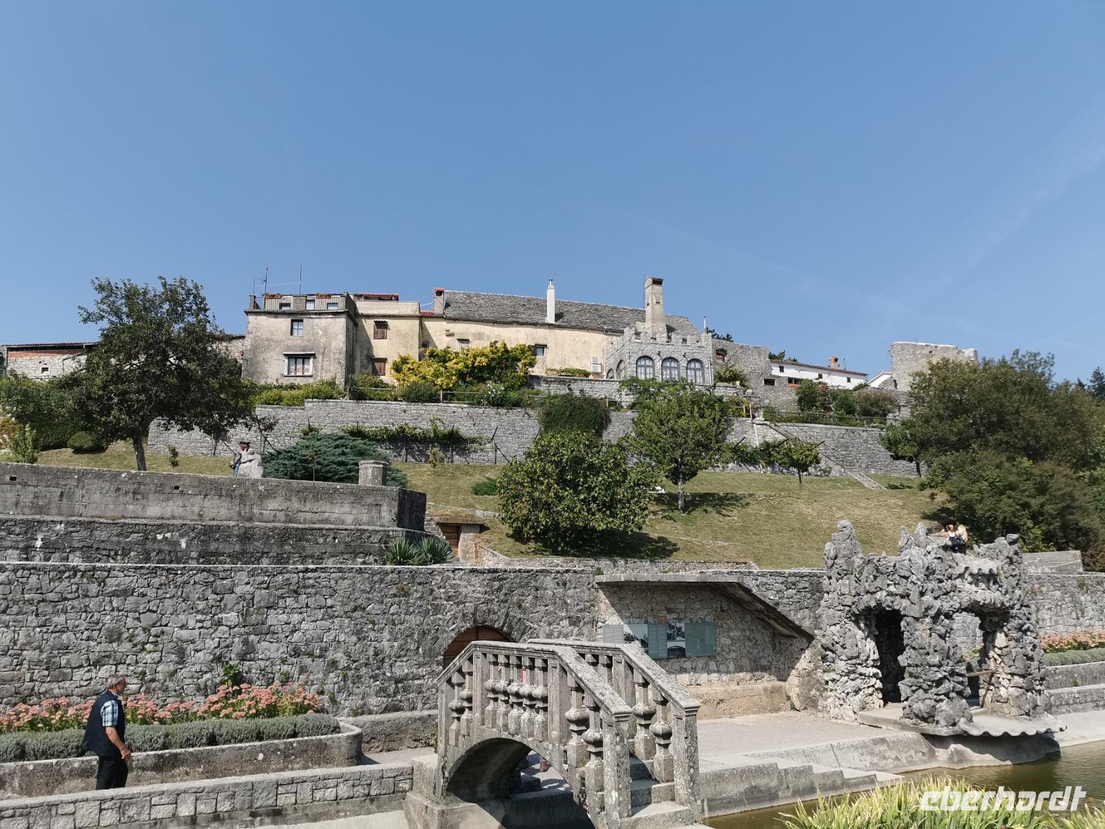 Da wir die Führung im Lipizzanergestüt erst am Nachmittag hatten, entschlossen wir uns kurzerhand zu einer Pause in einer der ältesten Siedlungen im Karst überhaupt - dem kleinen Ort Stanjel. Dieser Name leitet sich vom Schutzheiligen der Stadt, dem heiligen Daniel ab. Aufgrund der hervorragenden Lage auf einem Hügel, war Stanjel schon in prähistorischen Zeiten besiedelt und während der Antike entstanden hier die ersten Befestigungen. Die Festungsmauer, die heute wieder teilweise restauriert wurde, stammt aus dem 15. Jahrhundert und sollte vor den Angriffen der Osmanen schützen. Die kulturelle Blüte erlebte der kleine Ort im 16. und 17. Jahrhundert.