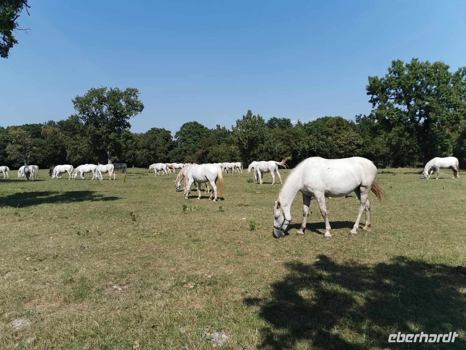 Am frühen Nachmittag erreichen wir das von Stanjel nur 34 km entfernt liegende Gestüt der Lippizzaner und schon bei der Anfahrt sehen wir diese wundervollen Tiere auf den Weiden grasen. Die jungen Pferde sind noch braun und werden erst im Alter von 6 Jahren weiß. Nach einer interessanten Führung durch das Gestüt gelüstet es uns nach Me(h)er.