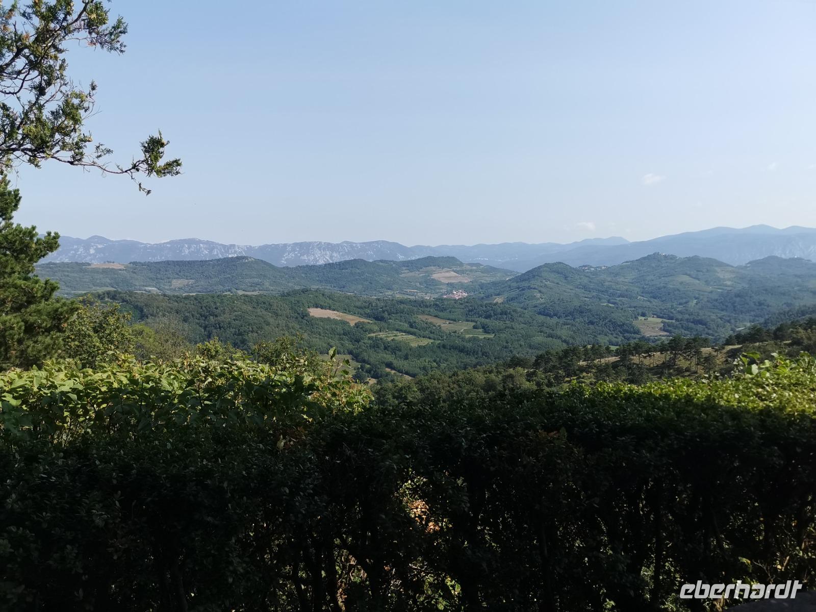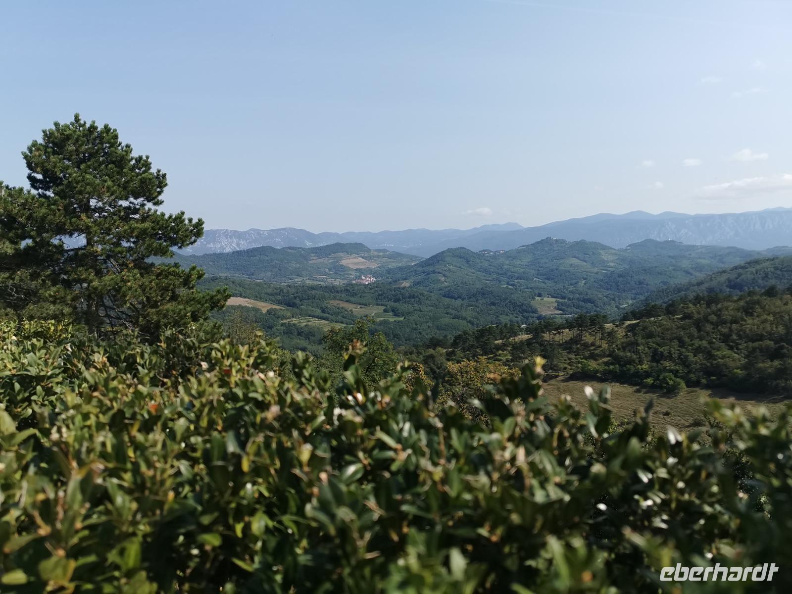 Charakteristisch für diese Landschaft sind die periodischen Seen, unterirdischen Flüsse, Karsttrichter und Gruben. Wir können uns recht bald davon überzeugen, daß im Karst auch Wein sehr gut gedeiht, die Weinstraße vor Stanjel wartet mit über 100 Weinkellern auf Besucher und vom Bus aus konnten wir die üppig behangenen Rebstöcke rechts und links der Straße sehen und uns lief das Wasser im Mund zusammen.