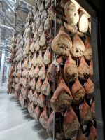 Uns erwarten jedoch zwei herausragende Spezialitäten der Region in Lokev, der luftgetrocknete Schinken (Prsut) und der auf der roten Erde von Istrien hervorragend gedeihende Karstwein Teran. Beides probieren wir andächtig und kein einziges Scheibchen der Leckerei bleibt übrig. Um diesen Schinken zu kaufen, kommen sogar die italienischen Nachbarn von weit her angefahren. Im Anschluß an die Verkostung werden uns die riesigen Keulen gezeigt, die bis unter die Decke in einer Halle aufgehängt wurden und dort mindestens 12 Monate reifen müssen. Die Lufttrocknung wird stark vom Borawind beeinflußt, der dem Schinken seinen speziellen Geschmack verleiht. Der kleine Laden auf dem Hof wird danach regelrecht erstürmt von den Gästen.