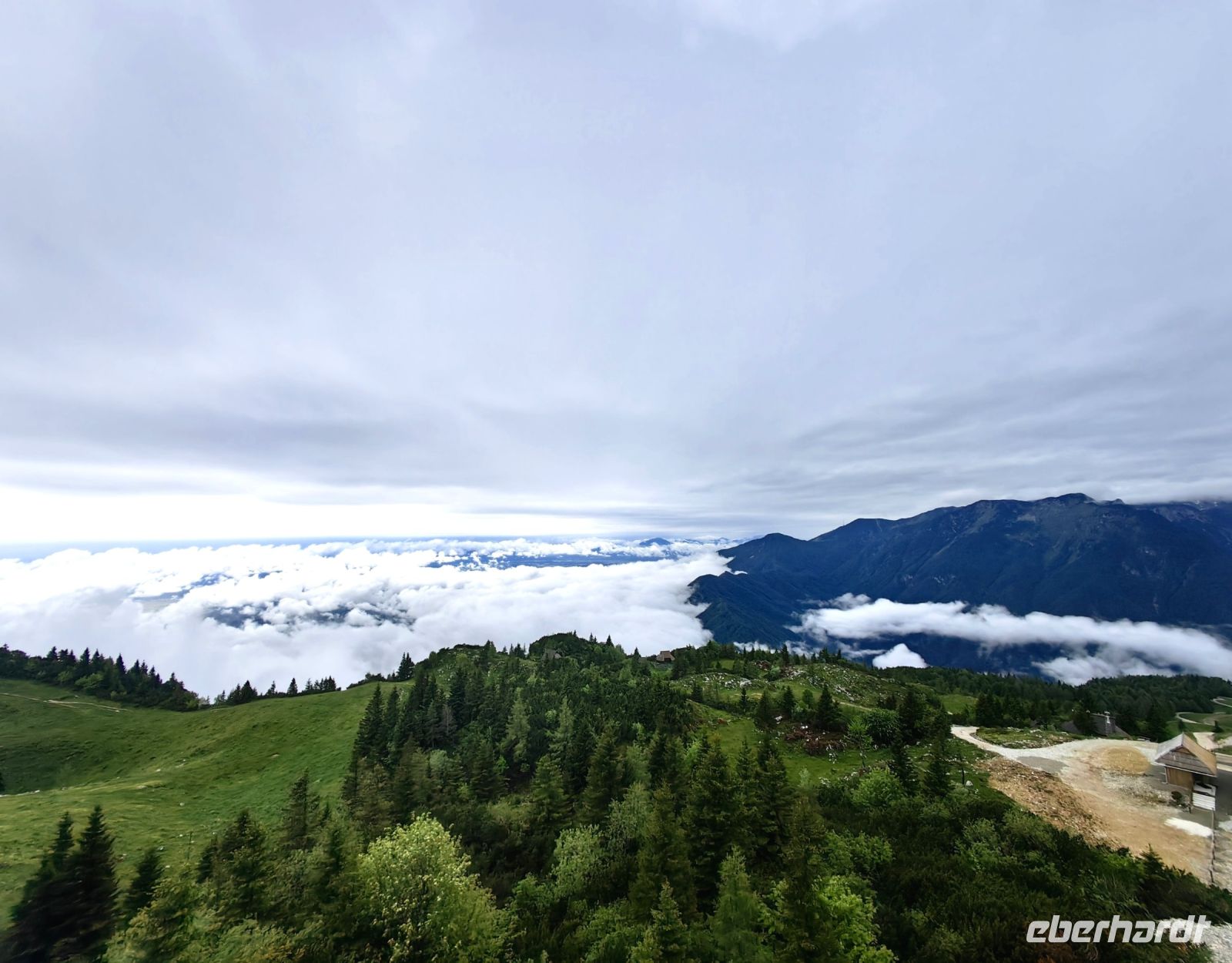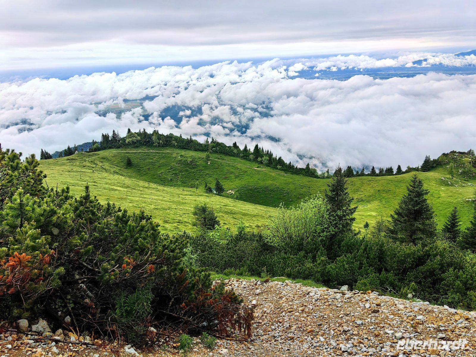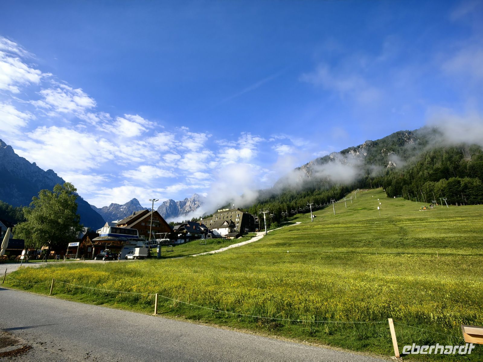 In diesem Jahr spielt das Wetter verrückt in Slowenien, in der letzten Nacht hat es duchgeregnet und am Morgen sind die Berge komplett in den Wolken verschwunden.