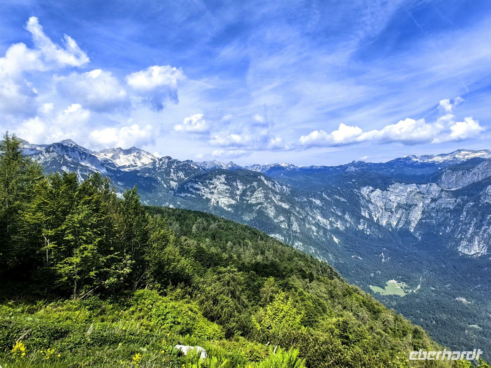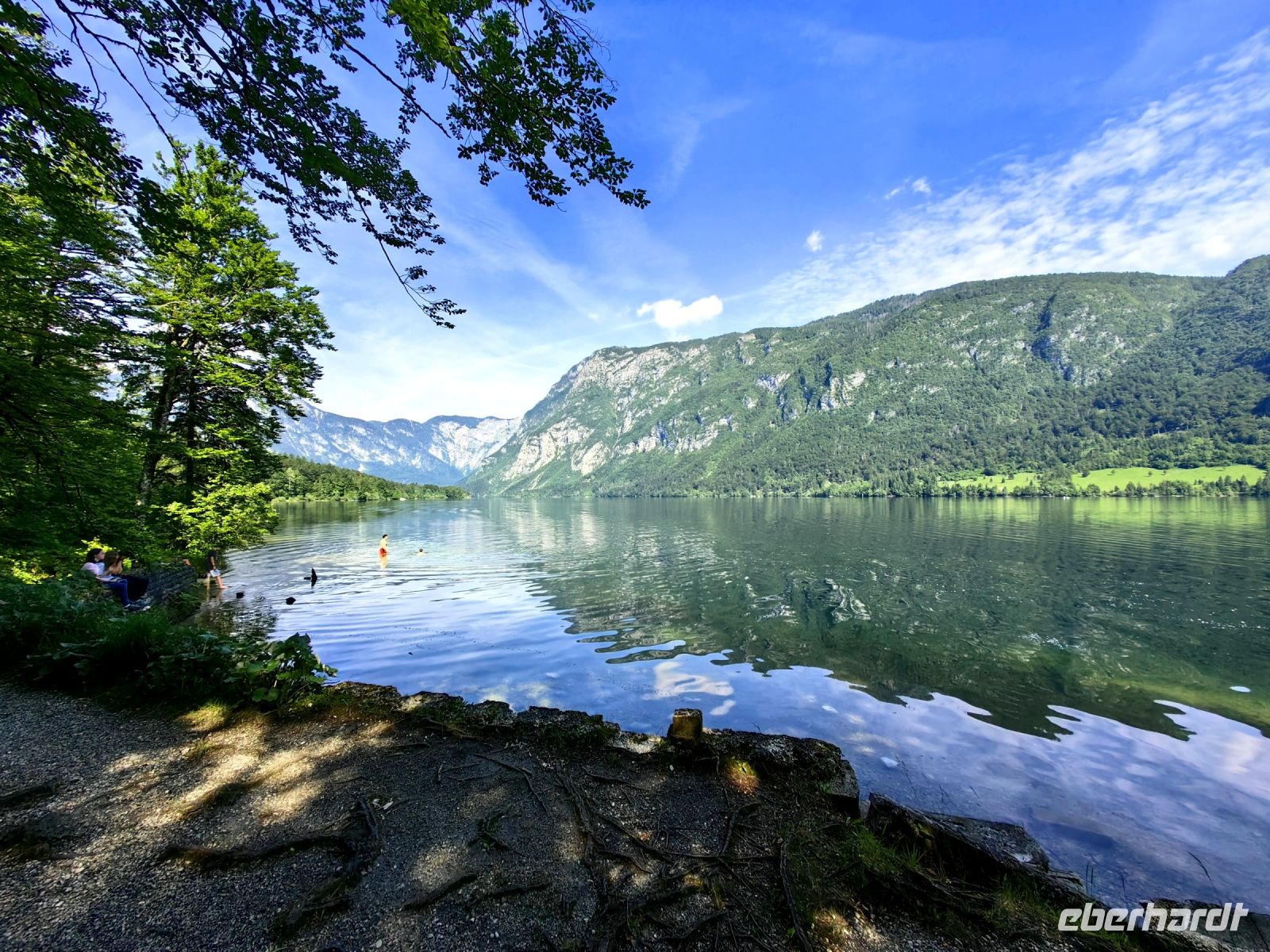 Am Morgen starten wir in Richtung des Bohijntales, welches mitten in den Julischen Alpen liegt. Das Wetter ist vieeeeeeel besser als der Wetterbericht es angekündigt hatte und wir genießen die Fahrt durch die Bergwelt, die üppig grünen Täler mit ihren blühenden Wiesen und die tiefen Schluchten der Save. Nach einer reichlichen Stunde erreichen wir den glasklaren See von Bohijn. Mitten im Tal liegt er vor uns mit seinem azurblauen Wasser. Er ist der größte natürliche See des Landes und um ihn herum gibt es viele unberührte Almen und mächtige Gipfel.