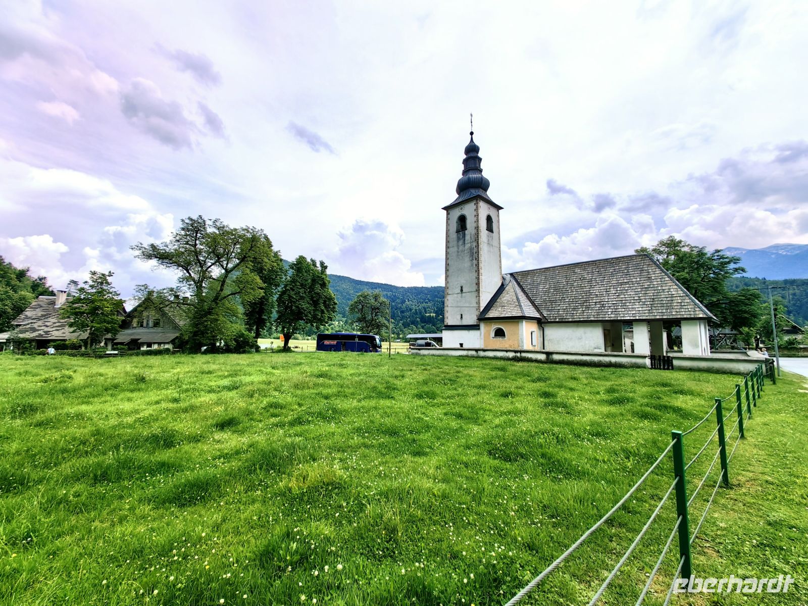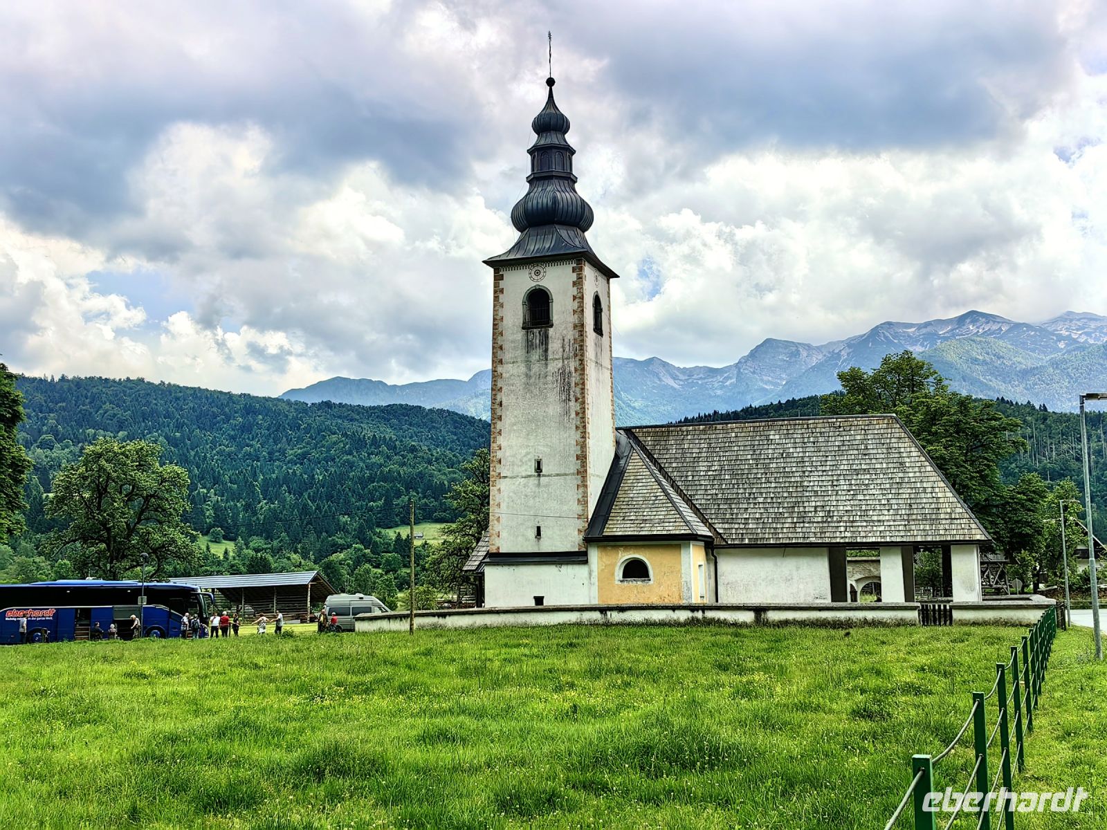 Jan hat noch eine Überraschung für uns am Nachmittag. Er hält in der Nähe der berühmten Kirche St. Johannes des Täufers. Wir laufen am Bohijnsee entlang zu diesem über 700 Jahre alten Bauwerk, welches mit seiner mittelalterlichen Baukunst und den Wandmalereien zu den schönsten Beispielen in ganz Slowenien gehört. Wir kommen sogar in den Genuß wundervollen Gesangs im Kircheninneren und sind ganz bezaubert von der Atmosphäre. Auf dem Rückweg trinken wir noch ein kühles Bier, manche probieren slowenischen Wein und danach machen wir uns auf den Rückweg nach Kranjska Gora.