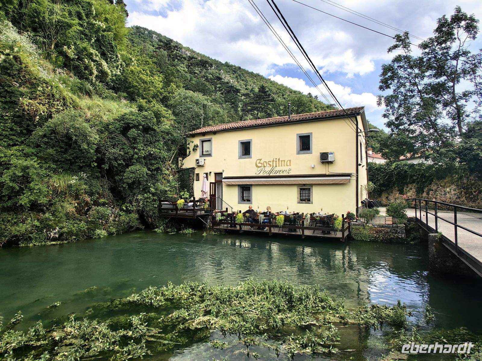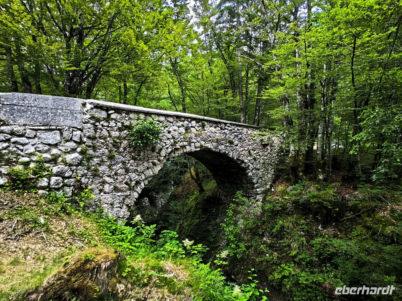 Am frühen Nachmittag halten wir unweit des Käsehofes an der Sankt Pauls Kirche und durchqueren das Dorf Stara Fuzina. Nach einem Kilometer erreichen wir die sogenannte Teufelsbrücke, eine alte Steinbrücke, um deren Entstehung sich eine Legende rankt. Der Teufel soll sie erbaut haben und der Preis dafür soll eine Seele eines Lebewesens gewesen sein, in diesem Falle, so sagt man, hat es einen Hund das Leben gekostet.