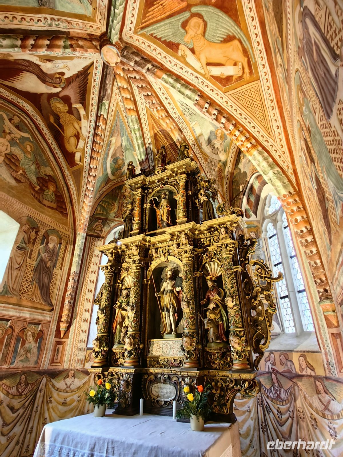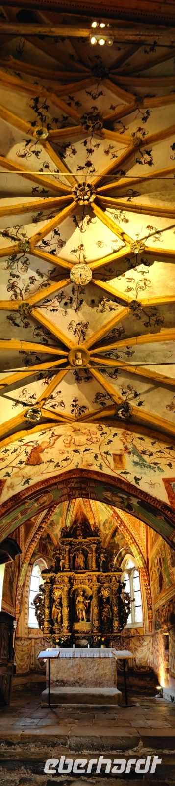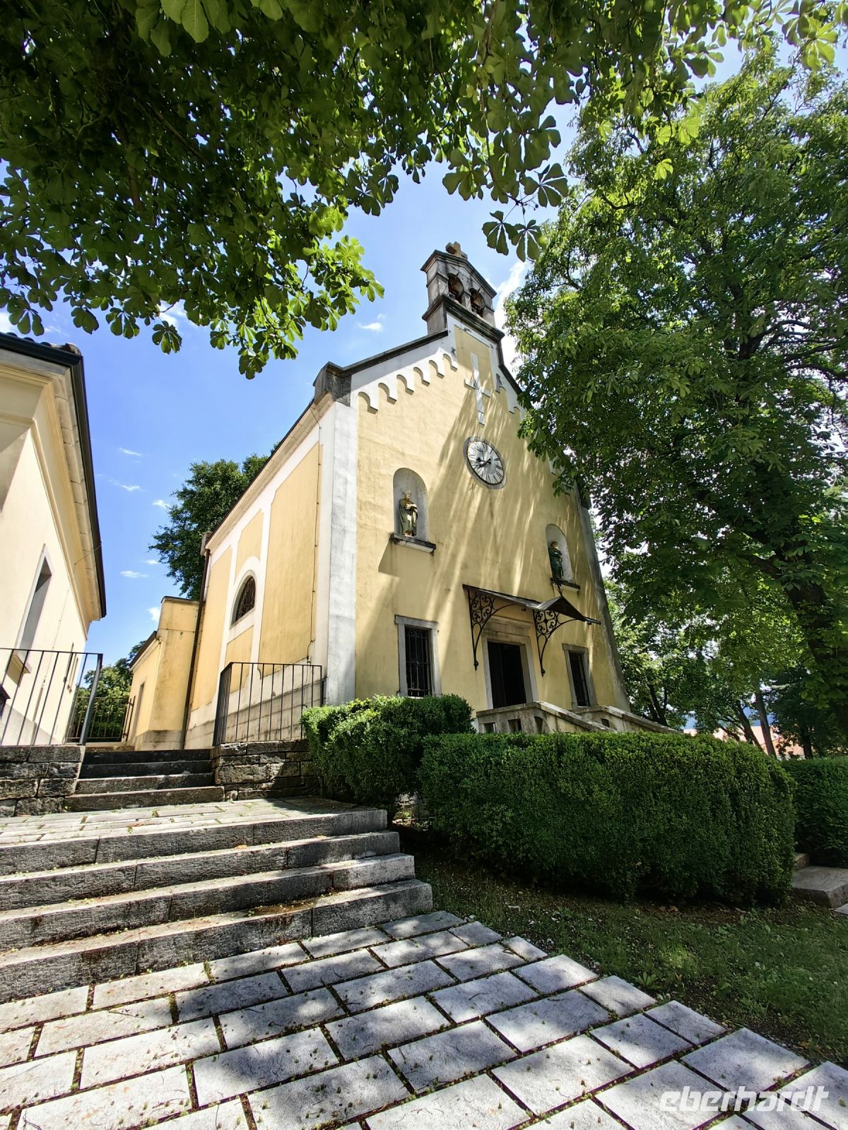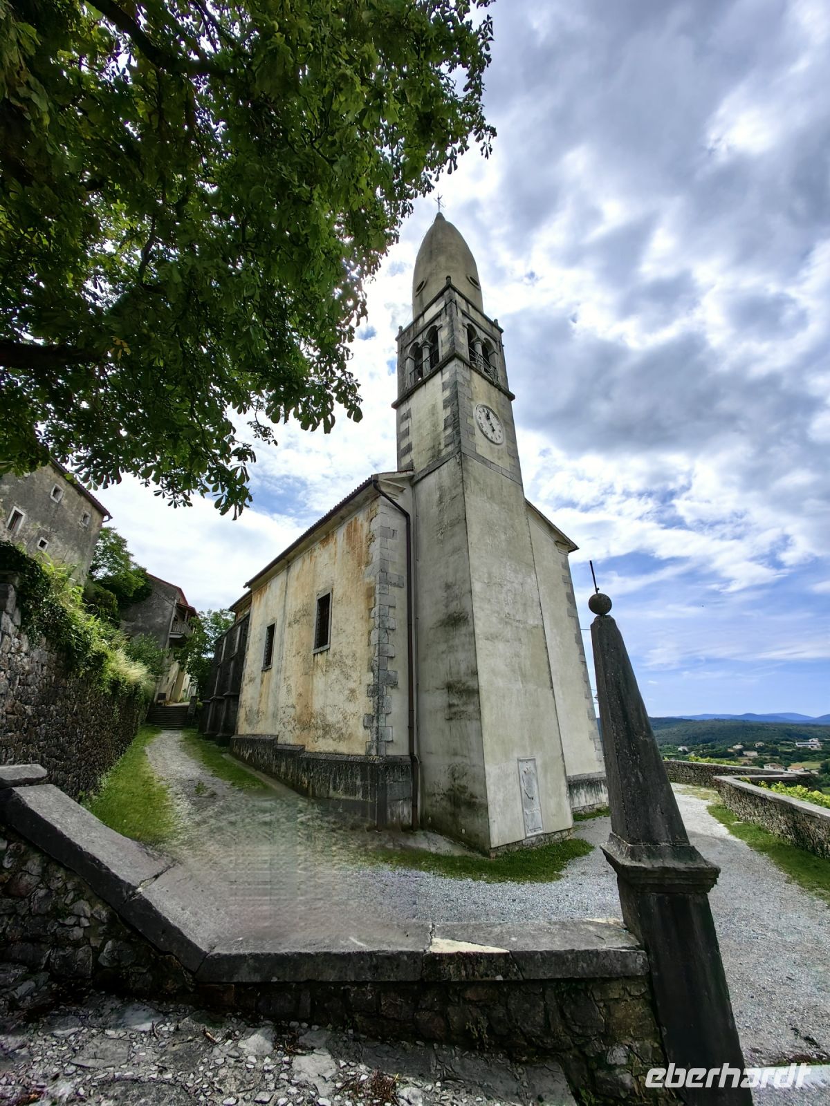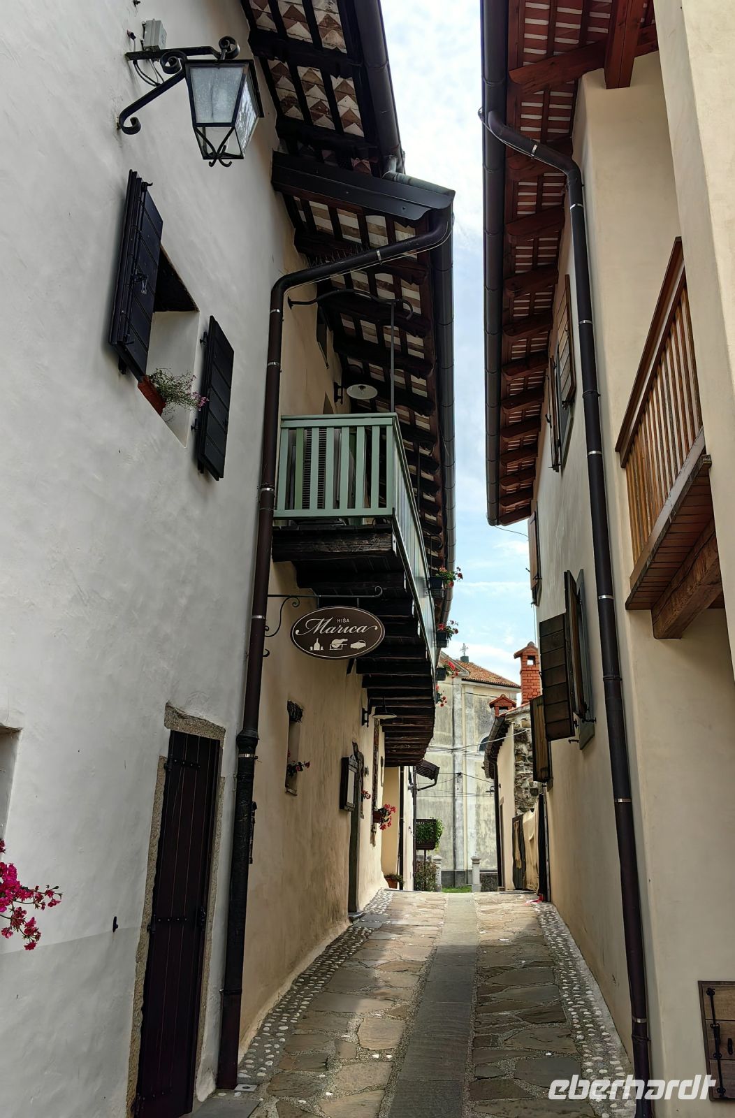 Das mittelalterliche Dorf Smartno mit seinen fünf erhaltenen Türmen, ist in der Region von überall aus zu sehen. Wie ein Adlernest hockt es hoch oben auf dem Hügel. Auf römischen Fundamenten gebaut, entstand dieses Dörfchen als Festung mit strategisch günstiger Lage an der venezianischen Grenze. Vom 16. bis zur zweiten Hälfte des 18. Jahrhunderts war Smartno ein wichtiger Verteidigungspunkt als Teil eines Festungssystems, das durch Söldner verteidigt wurde, die vorrangig uskokischer Abstammung waren. Heutzutage ist alles im Ort liebevoll saniert, keine Spuren von Verteidungen und Kämpfen sind mehr zu sehen und um den Martinstag herum finden hier etliche Weinfeste und Veranstaltungen statt. In den engen Gassen herrscht dann reges Treiben. Der Name des Dorfes leitet sich von der Kirche des heiligen Martin ab, deren Glockenturm einst ein Festungsturm war. Die barocke Kirche besitzt drei prächtige Marmoraltäre. Auch hier drinnen wurden das Presbyterium und der Kreuzweg von dem berühmten slowenischen Maler Tone Kralj gemalt, dessen Fresken wir schon im Triglav Nationalpark in einer kleinen Dorfkirche bewundern durften.