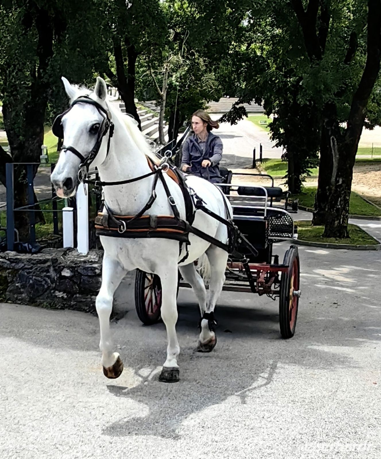 Zur Mittagszeit erreichen wir das Gestüt der Lippizaner und schon bei der Anfahrt sehen wir diese wundervollen Tiere auf den Weiden grasen. Die jungen Pferde sind noch braun und werden erst im Alter von 6 Jahren weiß. Zuerst unternehmen wir eine Kutschfahrt über das Gestüt und danach erklärt uns eine Pferdespezialistin die Zuchtlinien und die Geschichte des Gestüts. Früher nannte man die Pferde die Karster, da sie aus dieser Region stammten. Unter der Herrschaft der Habsburger über das heute zu Slowenien gehörende Gebiet um Lipica erlangten diese Pferde Berühmtheit durch ihren Einsatz an der Spanischen Hofreitschule in Wien. Bereits im Jahre 1580 wurde mit Pferden der iberischen Halbinsel das Gestüt Lipica gegründet. Diese wunderschönen Tiere enthalten Anteile von spanischen, neapolitanischen-italienischen und arabischen Pferden.