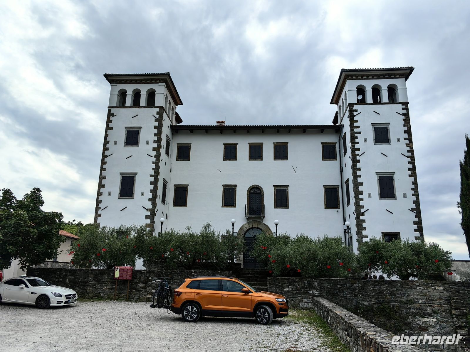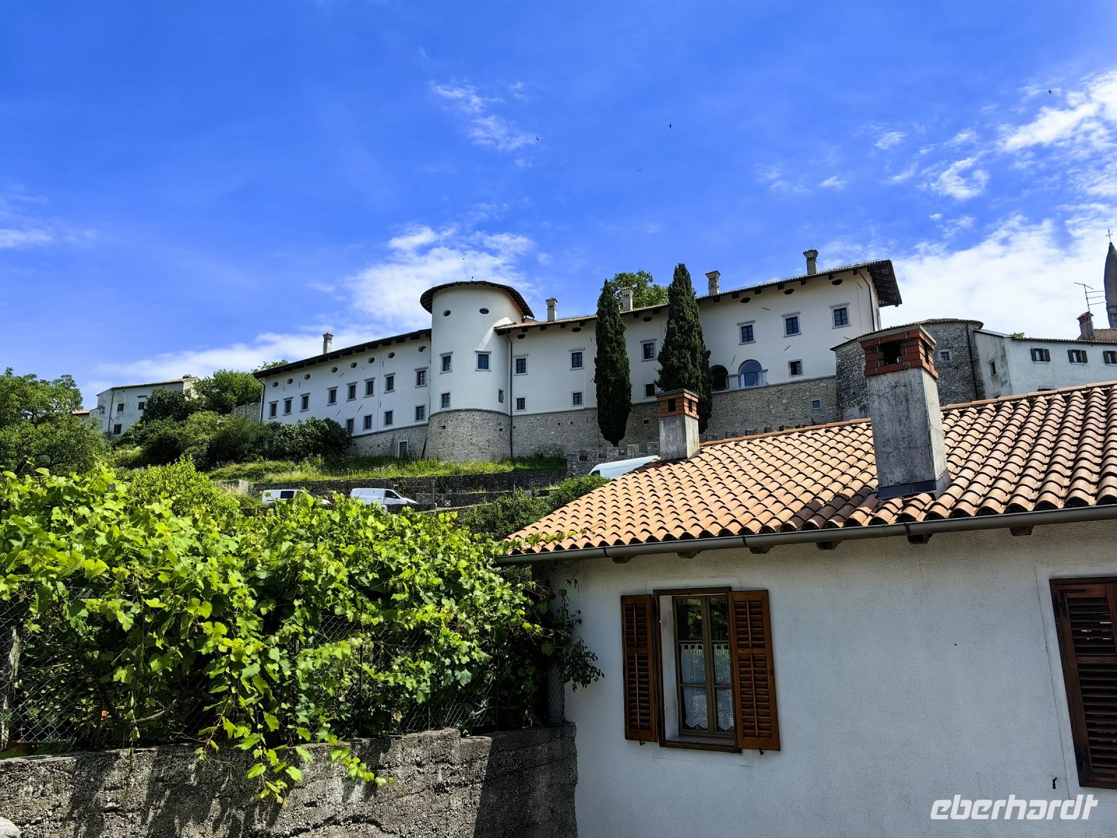 Wir stöbern in den Lädchen nach Seifen, Andenken und Olivenöl und fahren weiter nach Dobrovo. Hier steht das Goriski Muzej, ein Gut aus dem 17. Jahrhundert, welches im Besitz der Staatsgrafen von Colloredo war. Sie erhielten es als Lehen. Das heute darin befindliche Museum zeigt über 600 Exponate. Wir begnügen uns mit der imposanten Außenansicht, da wirklich alle Parkplätze belegt sind, als wir ankommen.