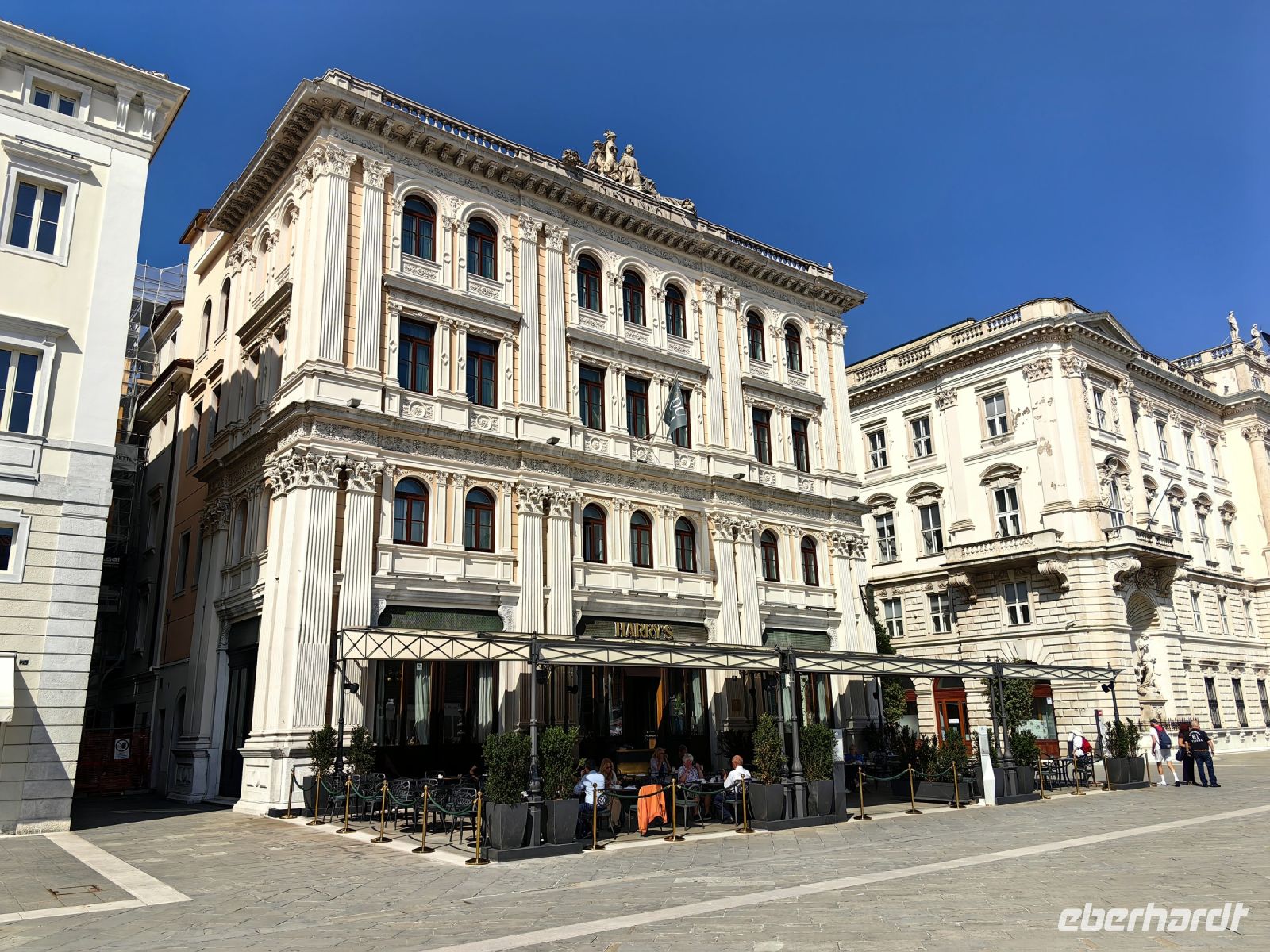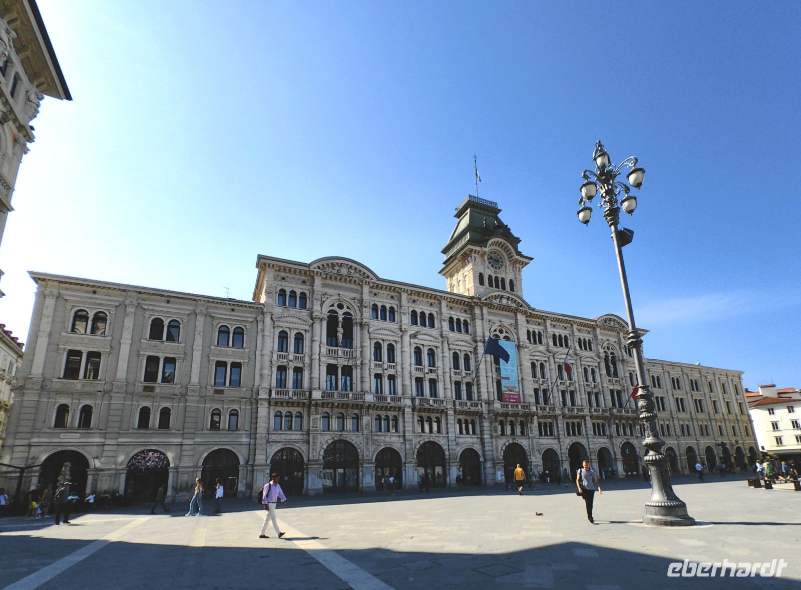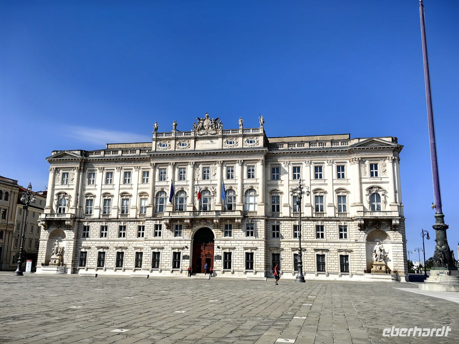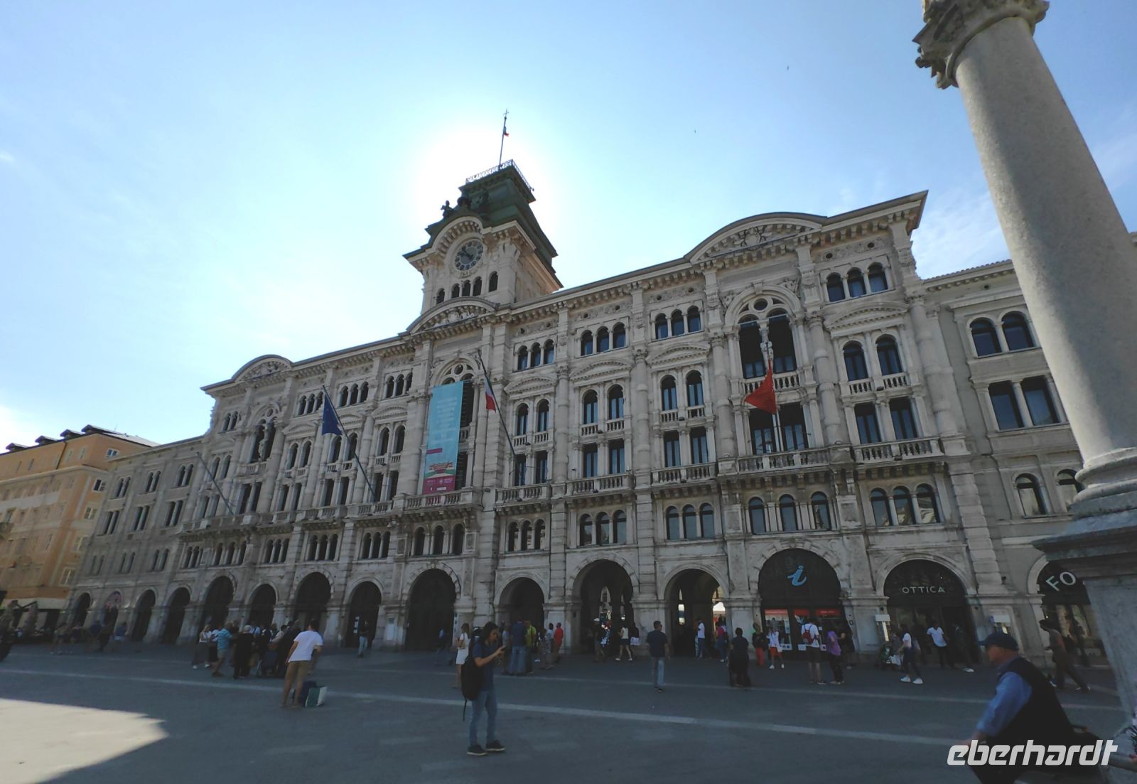 Zu unserem heutigen fakultativen Ausflug in die westlichste Weinregion Sloweniens begleitet uns Stane erneut, wir nehmen die Küstenstraße und fahren in Richtung Triest. Am Piazza dell´ Unità d´ Italia machen wir eine Pause, schauen uns die imposanten Bauten aus der Habsburger Zeit an und genießen den Blick aufs Meer. Das Rathaus im eklektizistischen Stil stammt vom Architekten Giuseppe Bruni, der es an den Baustil des Louvre anlehnte. Auch der nicht weit entfernte Palazzo Modello stammt vom gleichen Architekten und sollte eigentlich ein Gasthaus werden.