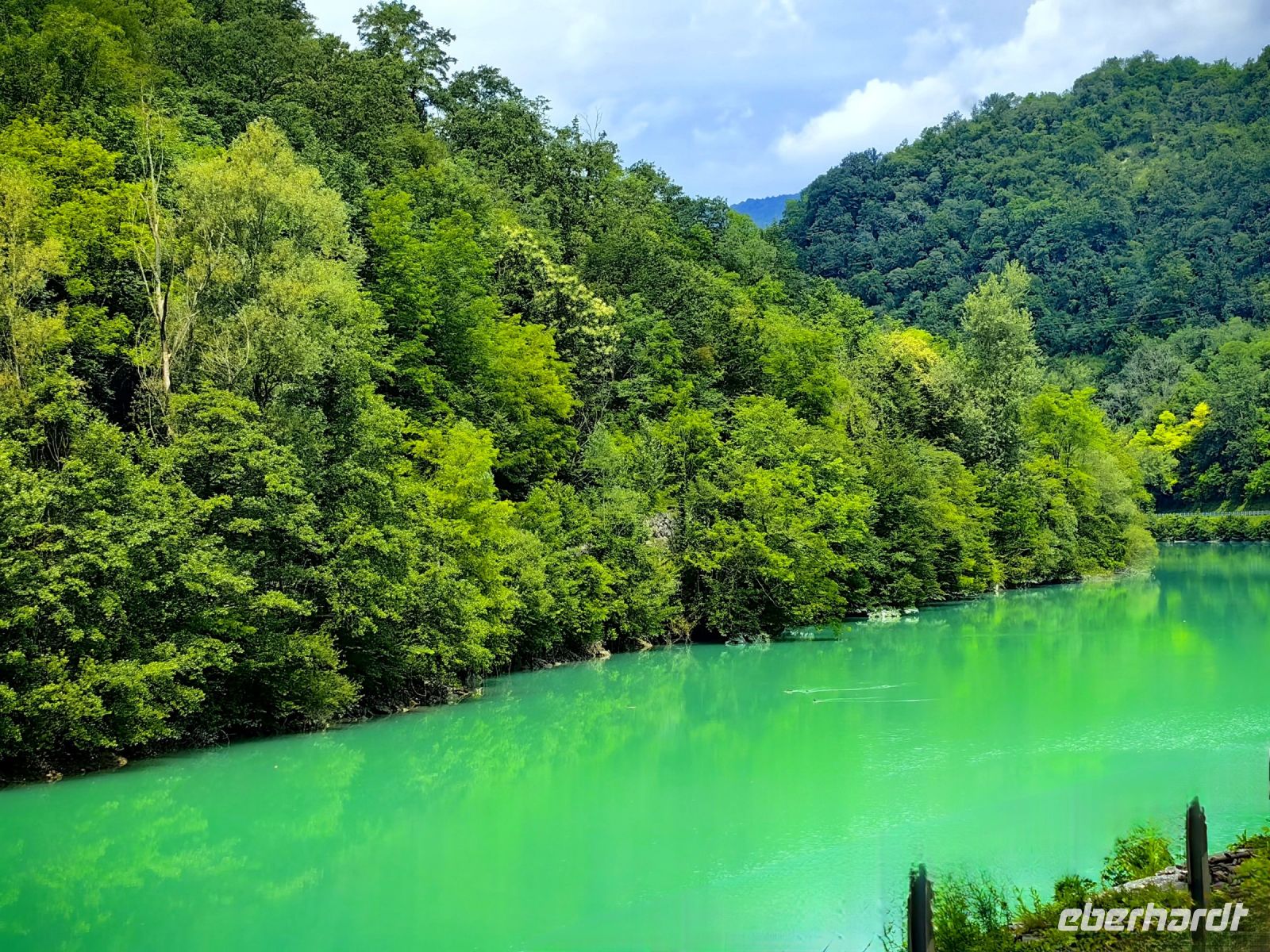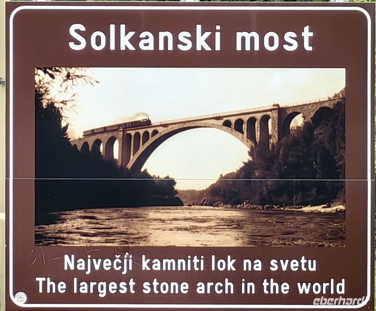 Nun begeben wir uns wieder nach Slowenien und möchten die kleinste slowenische Weinregion Brda kennen lernen. Eine reichliche Stunde nördlich von Portoroz entfernt liegt diese von der Sonne verwöhnte hügelige Gegend und unter der Solkanbrücke begegnet uns die smaragdgrüne Soca wieder. Diese Steinbrücke mit einer Spannweite von 85 Metern ist die größte Eisenbahnsteinbrücke der Welt. Dieses technische Meisterwerk wurde 1905 als Teil der Wocheiner Bahn errichtet, sie verbindet Gorica mit Jesenice. Man mußte 4.533 Steinblöcke meißeln, um sie zu errichten. Der Bahnverkehr wurde im Jahr 1906 aufgenommen. Leider wurde die originale Brücke im Ersten Weltkrieg zerstört und erst 1985 nach den alten Plänen wieder aufgebaut. Heutzutage fährt in den Sommermonaten ein Museumszug mit einer Dampflokomotive darüber und es ist jedes Mal ein Spektakel für viele Fotografen und Eisenbahnfans von nah und fern, wenn die Lok dampfend und schnaufend angebraust kommt.