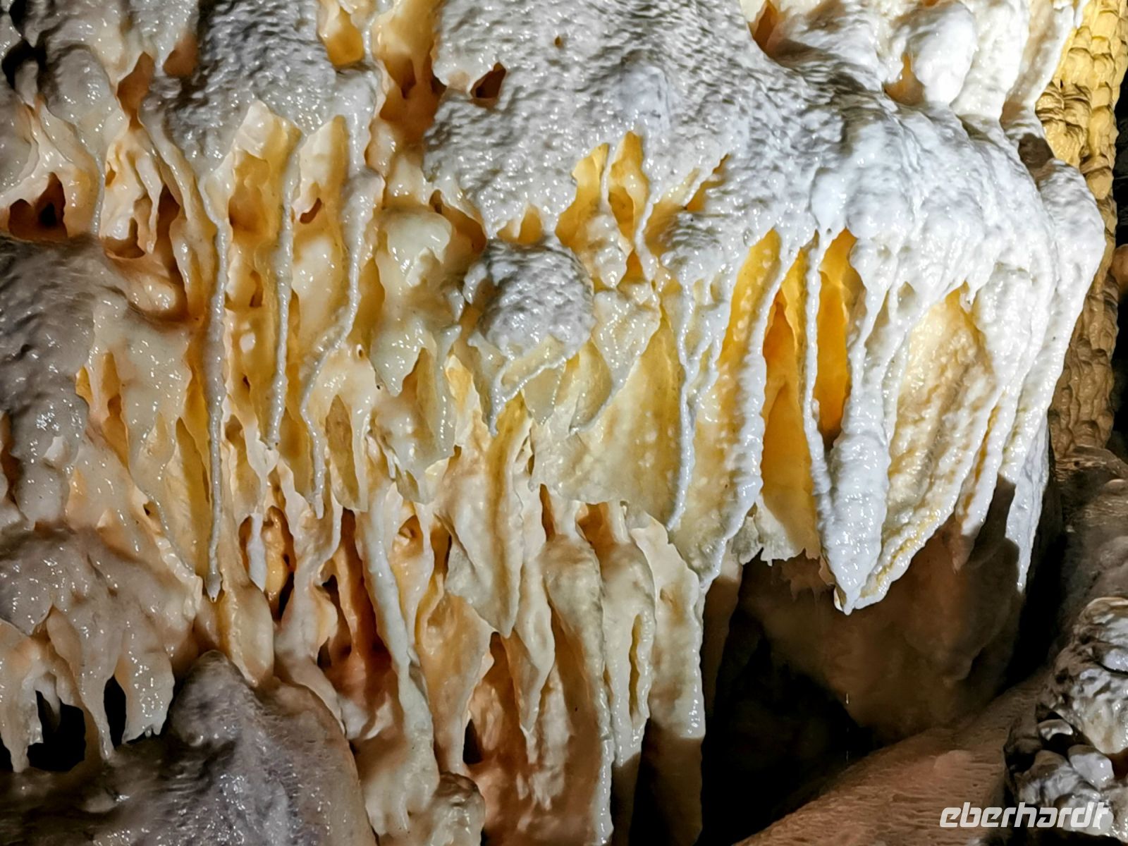 Eine Welt aus Stalaktiten und Stalakmiten erscheint, durch die untere Höhlenebene fließt noch immer der Fluß Pivka und man kommt aus dem Staunen, was die Natur so zustande bringen kann, gar nicht mehr raus. Kurz vor dem Ausgang dieser faszinierenden Welt gibt es ein Aquarium, in dem man einige Exemplare des seltenen Grottenolms beobachten kann. Dieses Tier zählt zu den Schwanzlurchen, sieht aber aus wie ein Fabelwesen, es hat keine Augen, eine völlig weiße durchscheinende Haut, Kiemen und die Gliedmaßen eines Salamanders. Diese Wesen, die wie aus einer anderen Welt zu kommen scheinen, können bis zu 70 Jahre alt werden und in Postojna ist es erstmals gelungen, die Tiere bei der Eiablage und sogar die Geburt der Jungen zu beobachten.