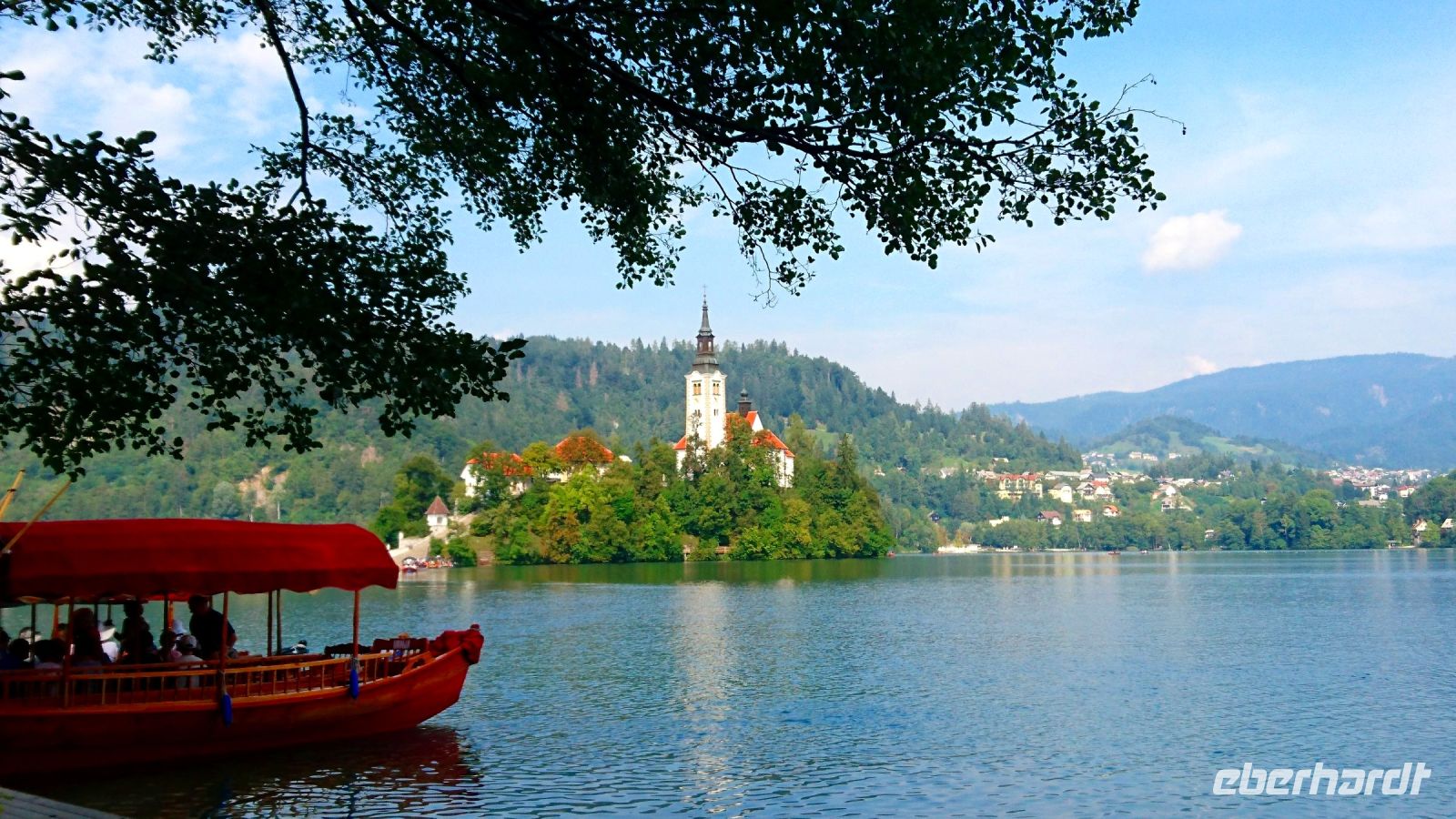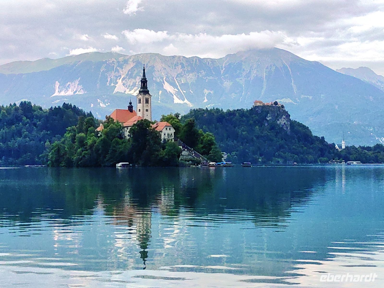 Am frühen Nachmittag erreichen wir den Luftkurort Bled. Wir spazieren entlang des Sees mit dem glasklaren Wasser und sehen die traditionellen hölzernen Pletna-Boote. Mit diesen, allein mit Armkraft betriebenen Ruderbooten, kann man sich bis zur mitten im See gelegenen Insel und der darauf befindlichen Marienkirche übersetzen lassen. Rund um den See erheben sich die Gipfel der Julischen Alpen. Ursprünglich befand sich an der Stelle, an der heute die Marienkirche auf der Insel im See steht, ein heidnischer Tempel der slawischen Göttin Ziva, der allerdings bei Auseinandersetzungen zwischen Anhängern der christlichen Religion und Heiden zerstört wurde. An derselben Stelle wurde im 8. Jahrhundert eine Kirche errichtet. Zwei Erdbeben zerstörten große Teile des damaligen Kirchenbaus und das heutige Kirchengebäude stammt aus dem 17. Jahrhundert. Am Altar kann man prunkvoll vergoldete Holzschnitzerein von 1747 bewundern und auch die Stifterfiguren von Heinrich II. und seiner Gemahlin Kunigunde sind im Inneren zu sehen. Auffällig bei der Inselbegehung ist, daß man ständig eine Glocke hören kann und wir wären nicht in Slowenien, wenn es nicht wieder eine Legende dazu geben würde: Einst soll auf der Burg Bled die schöne Polixena gelebt haben, die sehr um ihren verstorbenen Ehemann trauerte. Aus dieser Trauer heraus habe sie entschieden, so die Legende weiter, der Kirche auf der Insel eine Glocke zu spenden. Leider sei aber beim Transport der Glocke über das Wasser während eines Sturmes die Glocke mitsamt der Besatzung auf den Grund gesunken. Und, so erzählen es die Bleder Einwohner, von dort aus den Tiefen soll man bis heute ihr Läuten ab und an hören können.