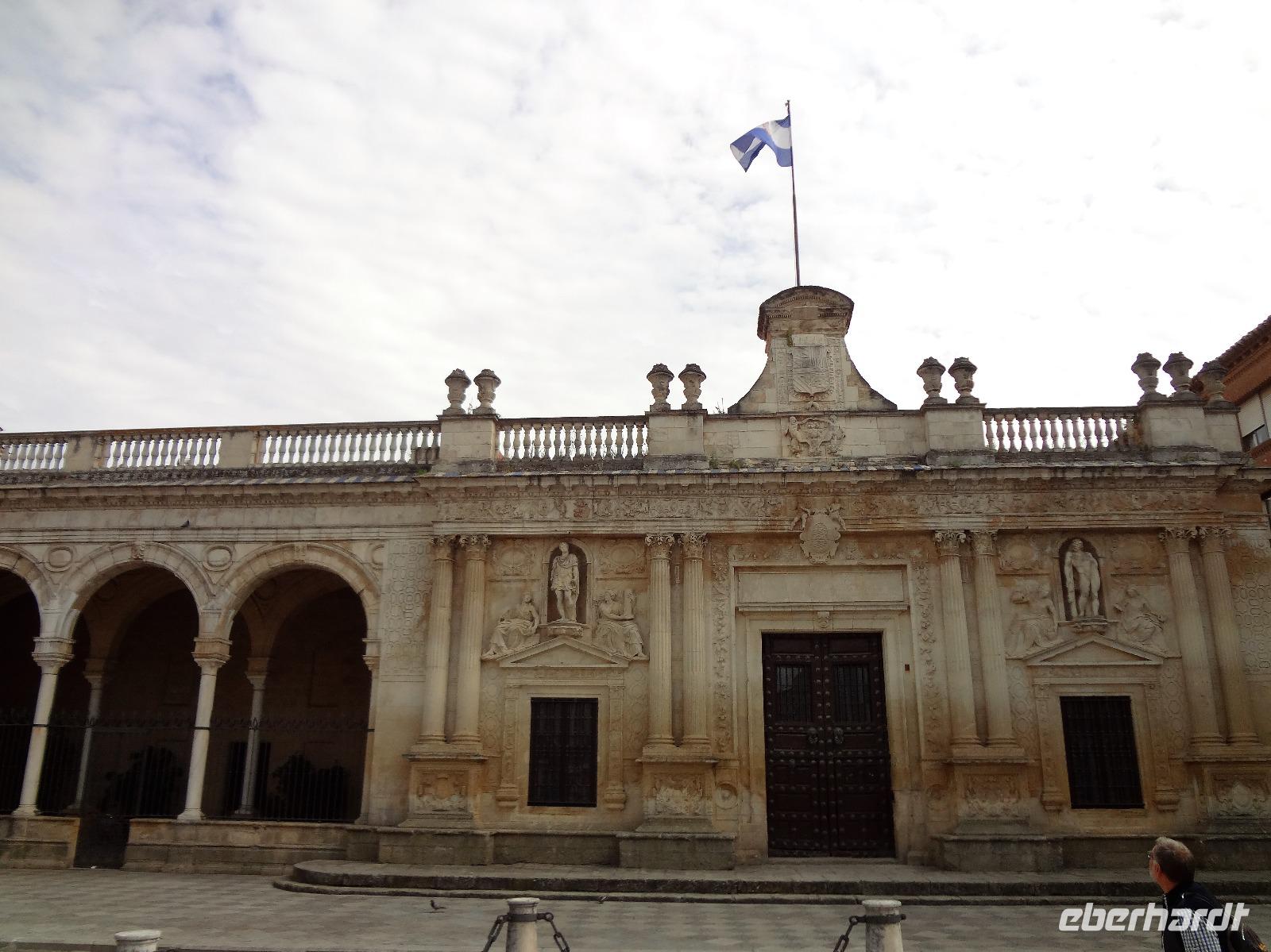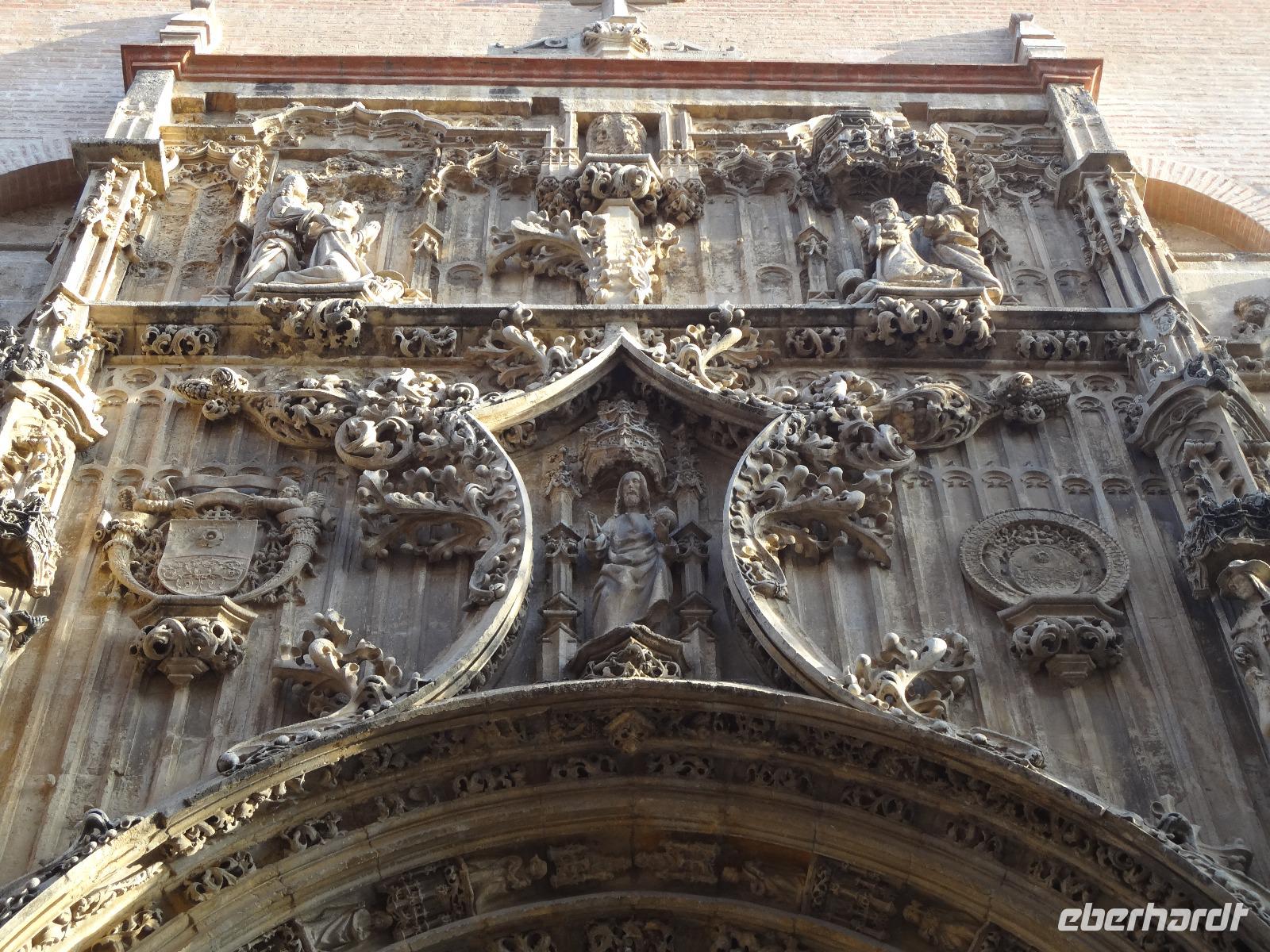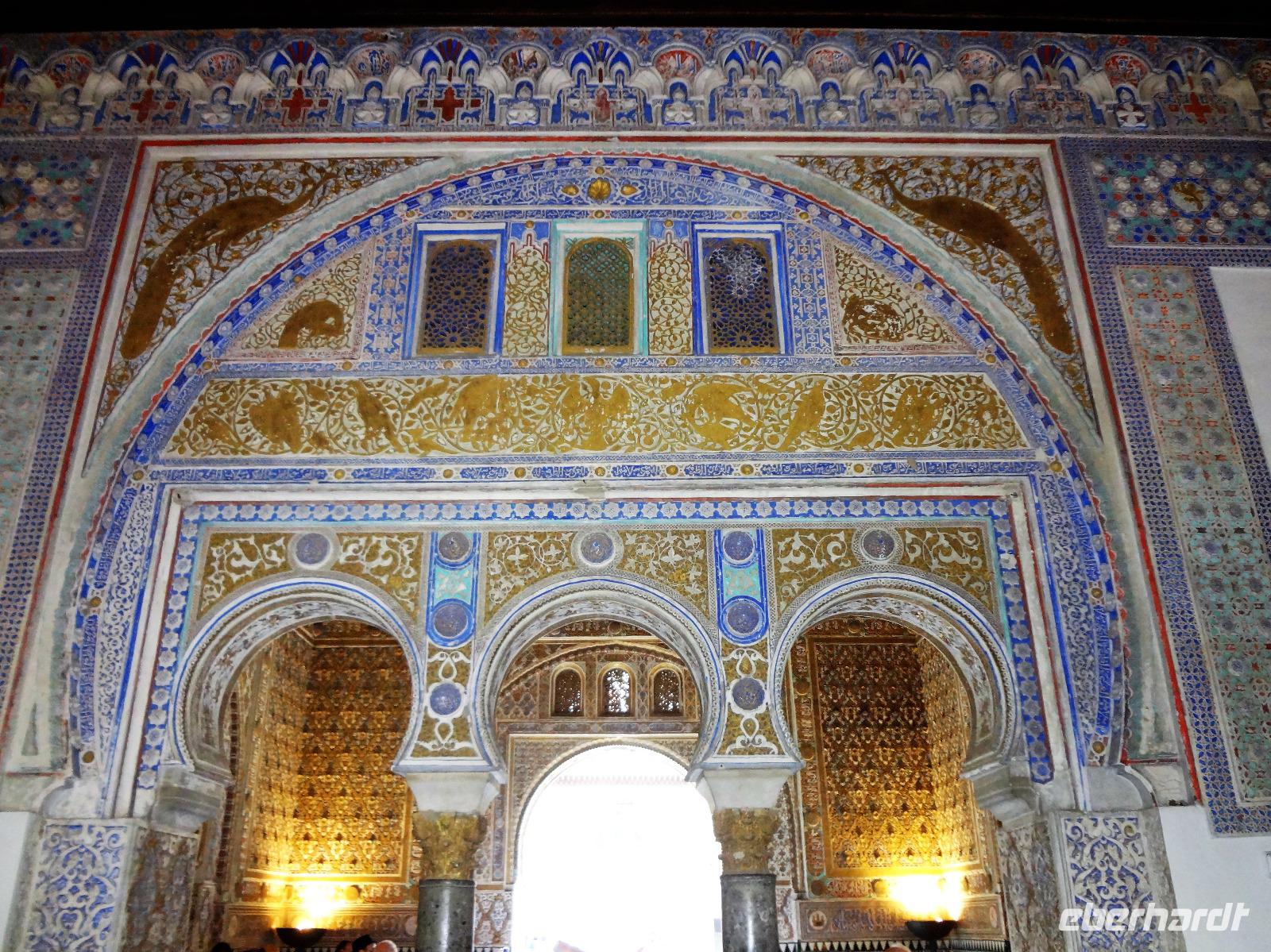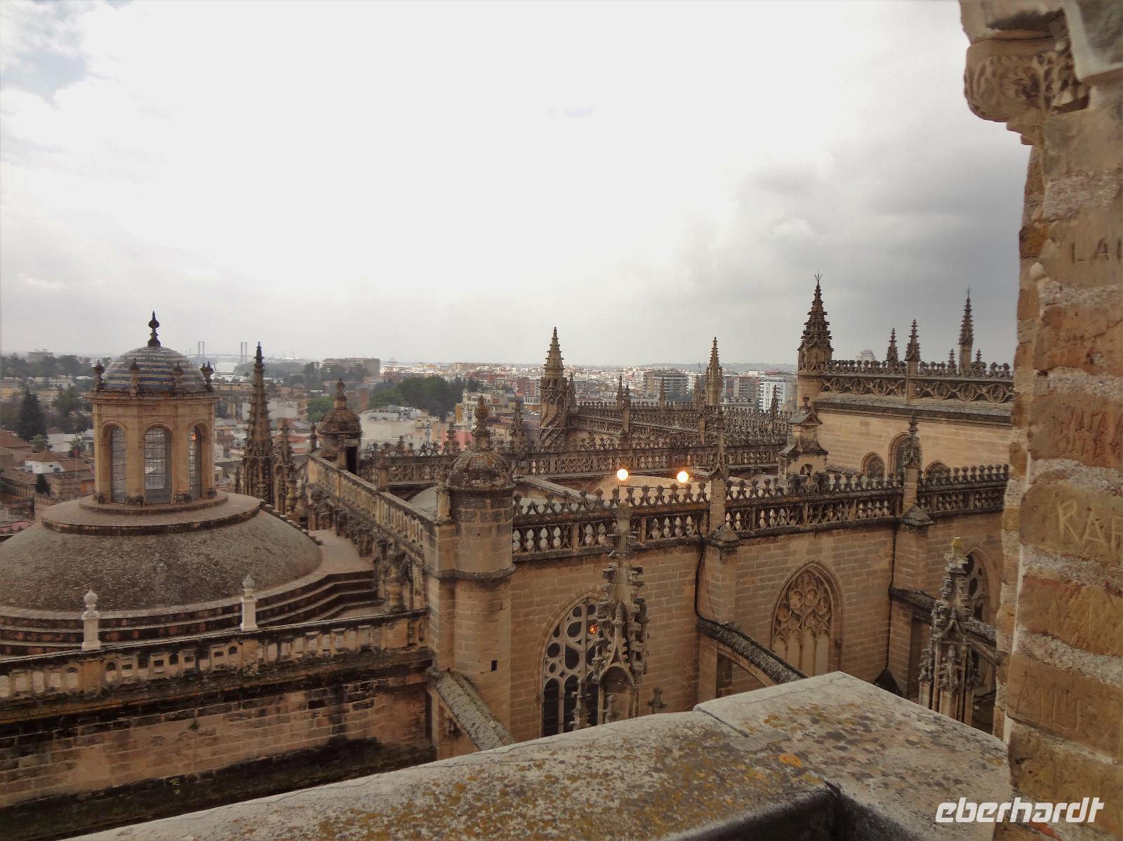 Sevilla is feurig, diese Stadt ist sehr lebhaft und nicht nur Touristen fuellen die Strassen sondern auch viele Einheimische und Spanier aus anderen Provinzen beleben die Gassen, Alleen und Cafes. Wir sind im Stadtzentrum, im Judenviertel, untergebracht und der oertliche Reiseleiter, Fran spaziert mit uns vorerst mal durch dieses Viertel mit ihren engen Gaesschen aehnlich wie in Cordoba. Aber auf einmal stehen wir vor der grossen Kathedrale und dem maechtigen Alcazar Palast. Viele Besucher stehen schon in der Schlange um in den Alcazar zu gelangen. Wir haben jedoch bereits eine Reservierung und es dauert keine 5 Minuten da stehen wir auch schon mit staunenden Augen in dem Vorgarten dieses Palastes der aus drei Palaesten besteht. Die ganze Geschichte Sevilla's ist hier zu sehen, zu spueren, anzuschauen und aufzunehmen. Tausendjaehrig ist diese komplexe, labyrinthhafte Festung und wir hoeren beim Durchgehen mit etwas Fantasie die Schritte der Koenige und Kalifen die hier wohnten. Die Seelen von Ferdinand dem Dritten, Peter dem Gerechten (oder Grausamen, wie er auch genannt wird!), der schoenen Isabella von Kastilien und von Kaiser Karl des Ersten bewohnen noch immer die reich verzierten Raeume. Nur gut, dass wir bloss unter Tags hier sind ! Der Palast von Koenig Don Pedro wird auch heute noch vom spanischen Koenigshaus als Residenz bei Besuch bewohnt. Eine gloriose Kapelle fehlt natuerlich auch nicht in diesem Komplex und im gotischen Palast sind wir weggeblasen von den herrlichen Tapisserien und der Gemaeldegallerie. Nun gehts aber weiter zum naechsten Programmpunkt. Die Kathedrale. Auch hier kommen wir vorerst in den Orangenhof da es sich auch hier um eine Moschee-Kathedrale handelt. Ausgerichtet ist auch sie nicht gen Mekka sondern zum Sueden hin ! Ferdinand der Dritte ist der Madonna de Antigua vor den Toren dieser Stadt begegnet, was ihn dazu veranlasste diese Stadt zu erobern. Die Statue dieser Madonna ist in der Kathedrale zu sehen. Auch Christophorus Columbus war in Sevilla und sein Sohn und Bruder sind hier begraben. Die Schoenheit dieses Gotteshauses ist unbeschreiblich, die Fotos sprechen Baende. Die Giralda ist Teil der Kathedrale und wir lassen uns Zeit auch auf diesen Turm zu steigen. 24 Riesen-Glocken haengen oben und die Aussicht auf die Stadt und die Kathedrale mit ihren tausend Tuermen und Tuermchen ist atemberaubend. Nun kennen wir uns aus und wandern mit Fran an vielen Kirchen. Plazas und Restaurants vorbei bis zum Parasol. Eine pilzaehnliche, schwebende Konstruktion aus feinstem, hellen finnischem Holz vom stuttgarter Architekten in Berlin wohnhaften Juergen Meier. Der Parasol wurde auf roemische Ausgrabungen welches heute das Archeologisches Museum Sevillas ist, gebaut. So eine moderne Konstruktion ist gewagt in dieser Stadt der grossen spanischen Traditionen, wird jetzt aber nicht nur akzeptiert sondern auch bewundert. In dieser Gegend sind auch alle einheimischen Tapas Bars und danach ruft nun unser Magen. Freizeit danach ist angesagt und jeder erlebt sein eigenes Sevilla. Am Abend haben wir noch ein grosses Highlight ein andalusisches Abendessen mit einer feurigen Flamenco Show. Ole. Was fuer ein Tag !