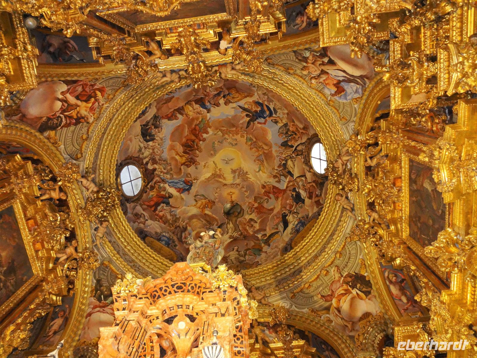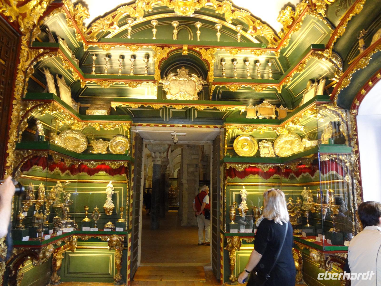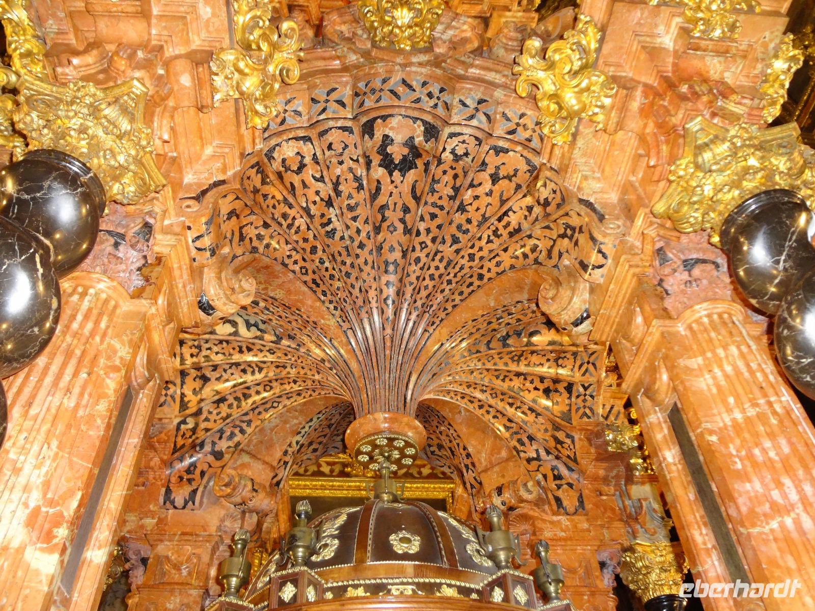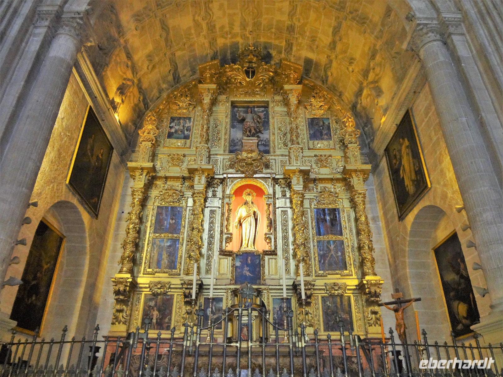 Sevilla is feurig, diese Stadt ist sehr lebhaft und nicht nur Touristen fuellen die Strassen sondern auch viele Einheimische und Spanier aus anderen Provinzen beleben die Gassen, Alleen und Cafes. Wir sind im Stadtzentrum, im Judenviertel, untergebracht und der oertliche Reiseleiter, Fran spaziert mit uns vorerst mal durch dieses Viertel mit ihren engen Gaesschen aehnlich wie in Cordoba. Aber auf einmal stehen wir vor der grossen Kathedrale und dem maechtigen Alcazar Palast. Viele Besucher stehen schon in der Schlange um in den Alcazar zu gelangen. Wir haben jedoch bereits eine Reservierung und es dauert keine 5 Minuten da stehen wir auch schon mit staunenden Augen in dem Vorgarten dieses Palastes der aus drei Palaesten besteht. Die ganze Geschichte Sevilla's ist hier zu sehen, zu spueren, anzuschauen und aufzunehmen. Tausendjaehrig ist diese komplexe, labyrinthhafte Festung und wir hoeren beim Durchgehen mit etwas Fantasie die Schritte der Koenige und Kalifen die hier wohnten. Die Seelen von Ferdinand dem Dritten, Peter dem Gerechten (oder Grausamen, wie er auch genannt wird!), der schoenen Isabella von Kastilien und von Kaiser Karl des Ersten bewohnen noch immer die reich verzierten Raeume. Nur gut, dass wir bloss unter Tags hier sind ! Der Palast von Koenig Don Pedro wird auch heute noch vom spanischen Koenigshaus als Residenz bei Besuch bewohnt. Eine gloriose Kapelle fehlt natuerlich auch nicht in diesem Komplex und im gotischen Palast sind wir weggeblasen von den herrlichen Tapisserien und der Gemaeldegallerie. Nun gehts aber weiter zum naechsten Programmpunkt. Die Kathedrale. Auch hier kommen wir vorerst in den Orangenhof da es sich auch hier um eine Moschee-Kathedrale handelt. Ausgerichtet ist auch sie nicht gen Mekka sondern zum Sueden hin ! Ferdinand der Dritte ist der Madonna de Antigua vor den Toren dieser Stadt begegnet, was ihn dazu veranlasste diese Stadt zu erobern. Die Statue dieser Madonna ist in der Kathedrale zu sehen. Auch Christophorus Columbus war in Sevilla und sein Sohn und Bruder sind hier begraben. Die Schoenheit dieses Gotteshauses ist unbeschreiblich, die Fotos sprechen Baende. Die Giralda ist Teil der Kathedrale und wir lassen uns Zeit auch auf diesen Turm zu steigen. 24 Riesen-Glocken haengen oben und die Aussicht auf die Stadt und die Kathedrale mit ihren tausend Tuermen und Tuermchen ist atemberaubend. Nun kennen wir uns aus und wandern mit Fran an vielen Kirchen. Plazas und Restaurants vorbei bis zum Parasol. Eine pilzaehnliche, schwebende Konstruktion aus feinstem, hellen finnischem Holz vom stuttgarter Architekten in Berlin wohnhaften Juergen Meier. Der Parasol wurde auf roemische Ausgrabungen welches heute das Archeologisches Museum Sevillas ist, gebaut. So eine moderne Konstruktion ist gewagt in dieser Stadt der grossen spanischen Traditionen, wird jetzt aber nicht nur akzeptiert sondern auch bewundert. In dieser Gegend sind auch alle einheimischen Tapas Bars und danach ruft nun unser Magen. Freizeit danach ist angesagt und jeder erlebt sein eigenes Sevilla. Am Abend haben wir noch ein grosses Highlight ein andalusisches Abendessen mit einer feurigen Flamenco Show. Ole. Was fuer ein Tag !