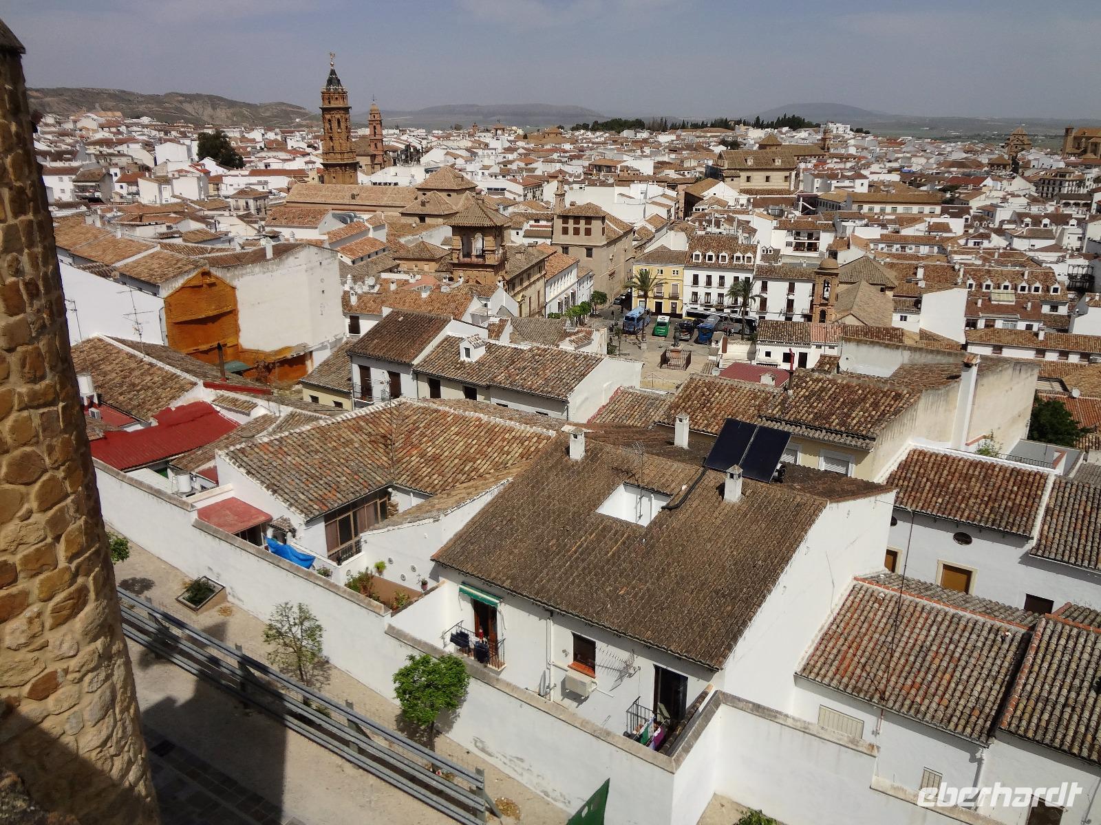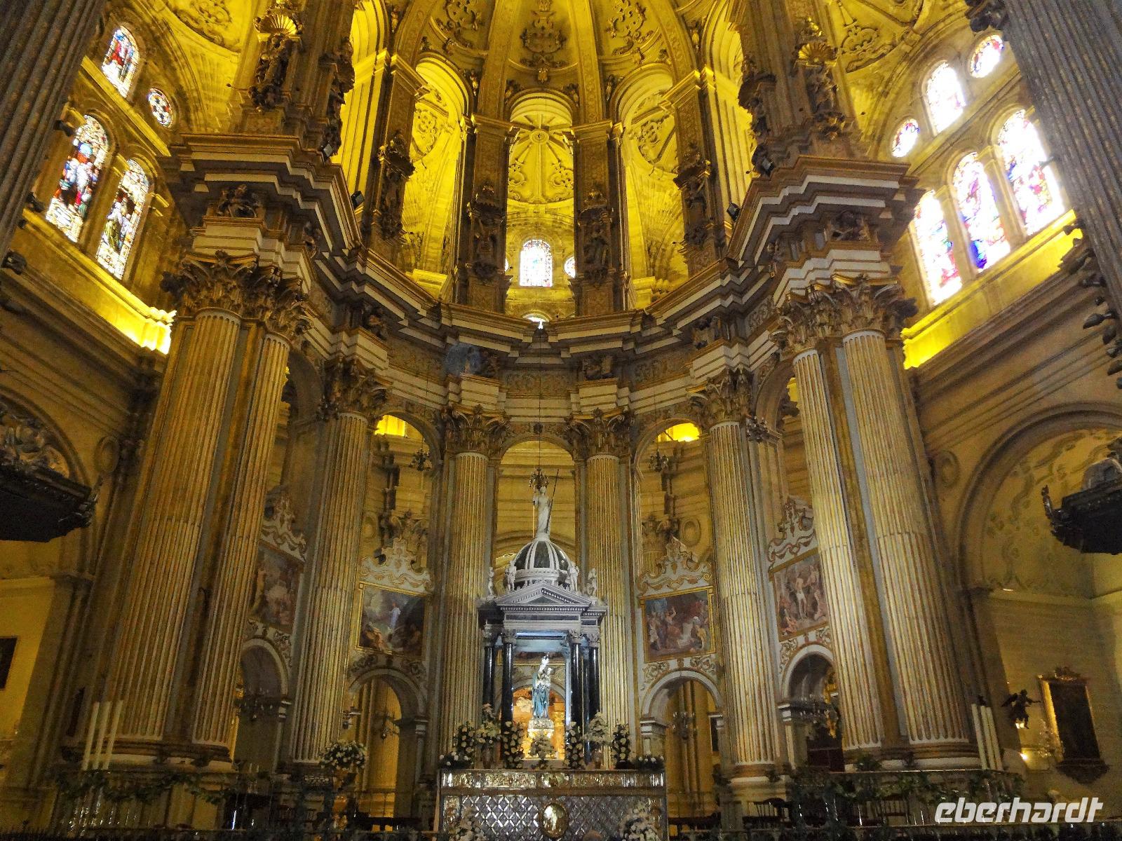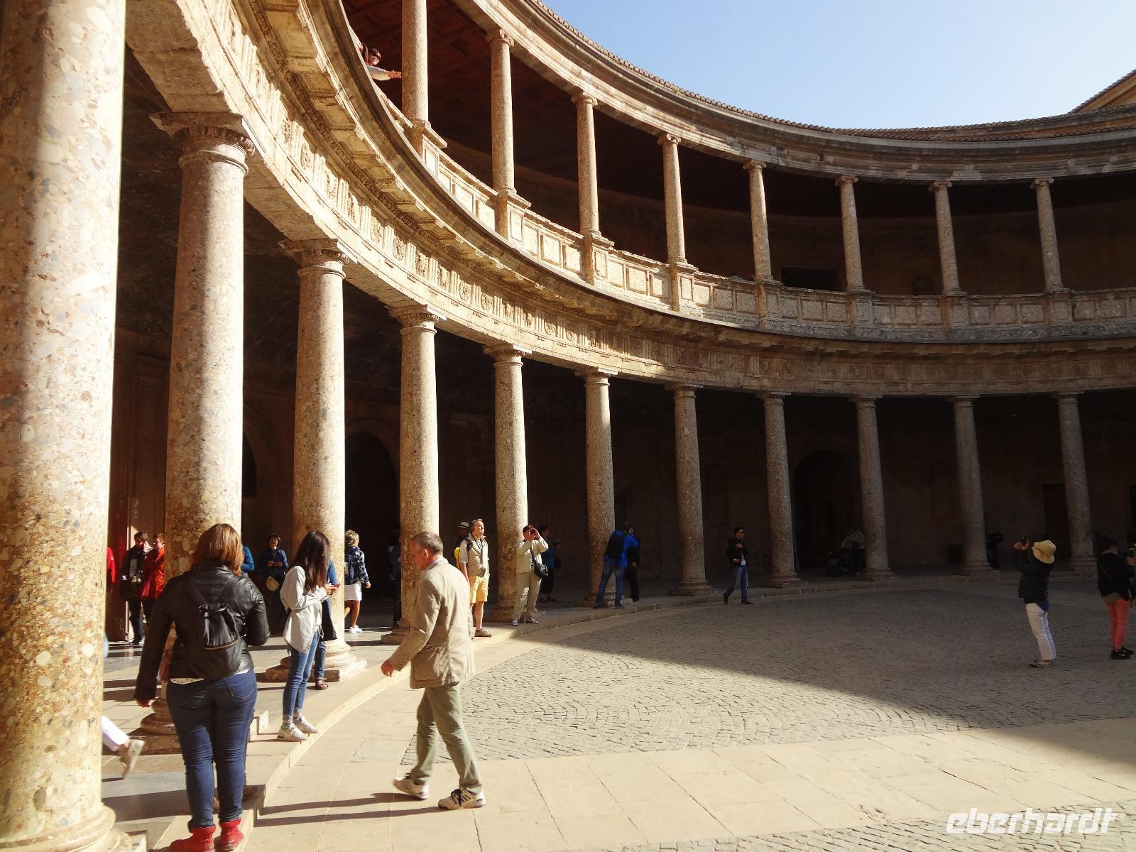 Es windet noch immer stark und die Temperaturen sind auf der kuehlen Seite. Nicht so kalt wie daheim wo es naemlich geschneit hat, anscheinend, aber der Pulli und die Jacke werden heute ausgefuehrt. Vorerst fahren wir 2 Stunden durch wunderschoene Gegend. Eine Huegellandschaft mit vielen Olivenhainen bepflanzt und Orangenplantagen in den Taeler. Danach wird es flacher und Weizen uebernimmt vorranglich das Landschaftsbild bis es nicht von Gemuese Anbauten abgeloest wird. In Antequera angekommen fahren wir vorerst zu einem neuen UNESCO Weltkulturerbe. Es ist noch so neu, dass es noch keinen Eintritt gibt und die Leute auch einfach herumkraxeln koennen wie sie wollen. Es wurden hier huehnische Graeber entdeckt und freigelegt. 2 Graeber schauen wir uns an und sind ganz verbluefft ueber die maechtigen Felsbloecke die vor rund 2 tausend Jahren hier aufgestellt wurden um diese Graeber zu erbauen. Erst im Film, der im Infocenter gespielt wird, lernen wir, wie diese Graeber gebaut wurden. Ueber viele Jahrhunderte dienten diese Graeber als Wohnhaueser und oder Lagerraeume. Nun gehts aber weiter nach Antequera wo wir als erstes das Kloster Santa Maria la Mayor besuchen. Ein herrlicher Aussichtspunkt und interessante Nussbaum getaefelte Decke sowie Ionische Saeulen und eine Prozessions-Maria erwarten uns hier. Der Weg durch das Staedtchen bis zum Bus ist recht steil aber wunderschoen. Heute gibts keine Elektrizitaet in Antequera, deshalb gibt es ein kaltes Mittagessen ehe wir auf den Berg fahren. Der Naturpark El Torcal ist majestaetisch. Die Karstlandschaft mit ihren Tuermen und Pfannkuchen-foermigen Felsformationen laden auf eine Wanderung ein. Ueber Stock und Stein kraxeln wir 1 Stunde im Gebirge und ruhen uns danach im Bus wieder aus. Die Weiterreise heute bringt uns nach Granada wo wir als erstes die barocke Kartaeuse La Cartuja mit Pablo, dem lokalen Reiseleiter, besichtigen. Diese Cartuja laesst uns nur staunen ueber soviel Gold, Glanz und Ueppigkeit ganz im Gegenteil zu dem Credo des Kartaeuser Ordens, welches Schlicht- und Bescheidenheit als oberstes Gebot zitieren. Die Kartaeuse ist praechtig. Jetzt geht es weiter durch das muslemische Viertel von Albacin bis zum Aussichtspunkt San Nicolas. Die perfekte Aussicht auf die Alhambra zeigt sich hier. Junge Leute sitzen, reden, schmusen. Musikanten unterhalten die vielen staunenden Leute. Die Alhambra ist eine riesen-Burg mit eigenem Dorf und vielen Gaerten auf einem Huegel mit Sicht auf Granada. Es ist eines der erstaunlichsten Bauwerke der Erde und wir besuchen es Morgen in aller Ruhe. Heute fahren wir nur noch zum Hotel ins Zentrum Granadas, essen von dem guten Buffet im Hotel und fallen muede ins Bett.