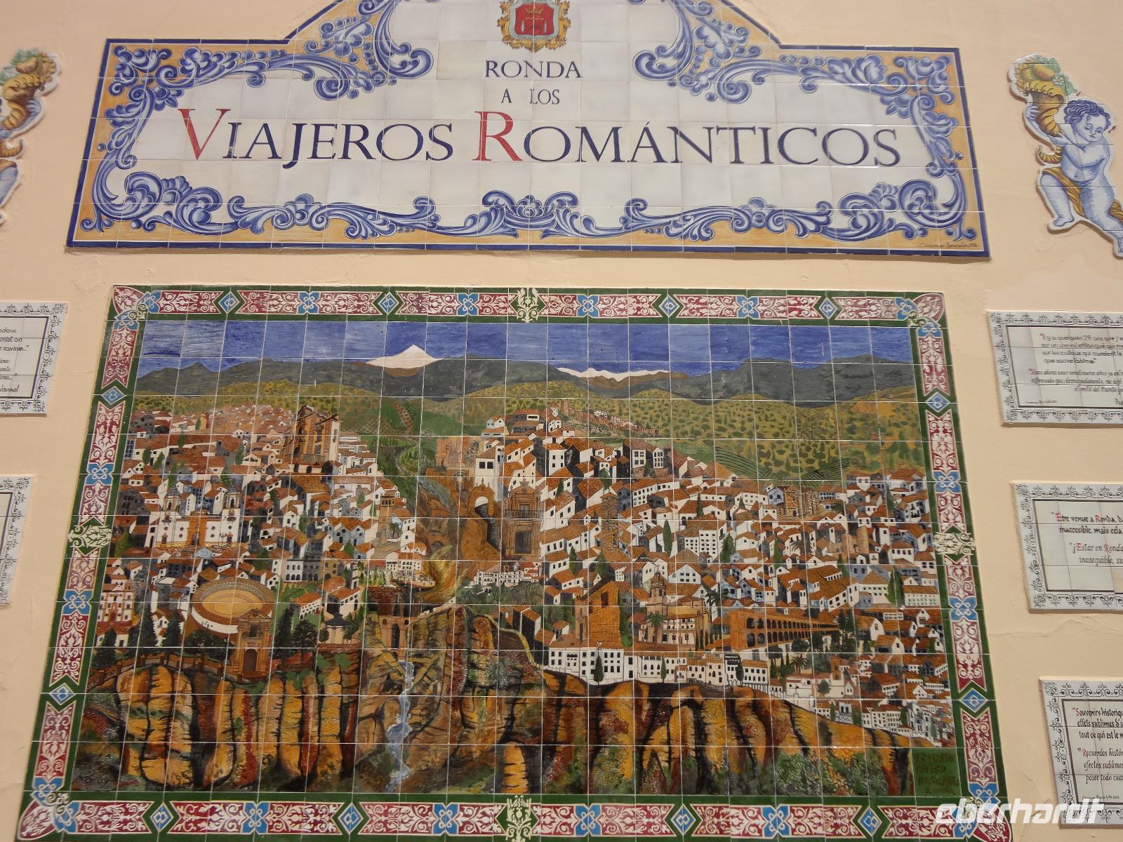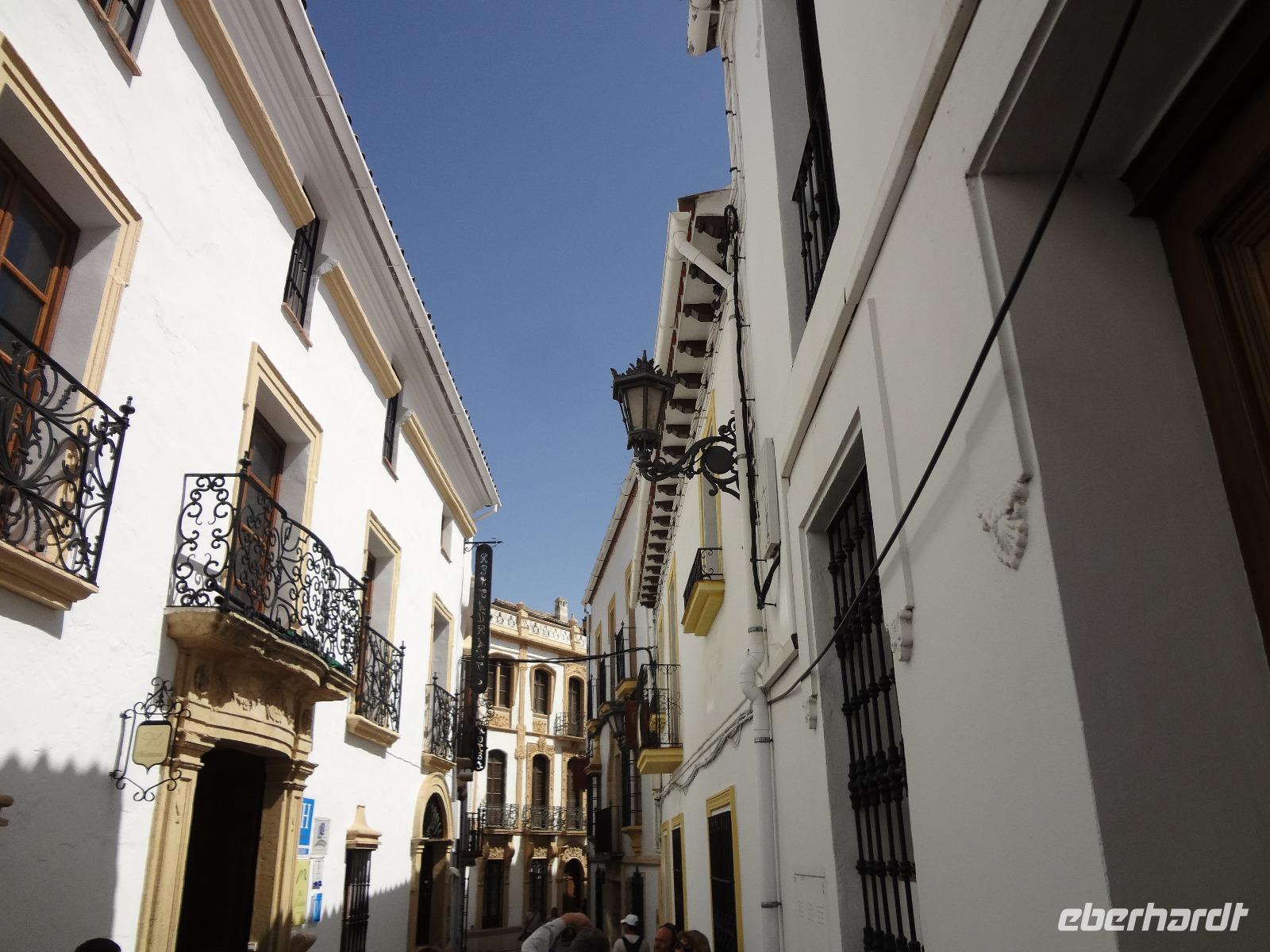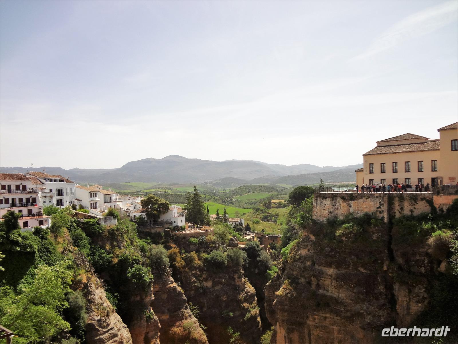 Ein strahlender Tag erwartet uns heute. Das Fruehstueck hat von Lachs ueber Cerrano und Iberico Schinken bis zum Muesli, frischen Fruechten und wohltuendem Kaffee alles, was das Herz begehren koennte. Wir lassen es uns wirklich gut gehen. Der oertliche Reiseleiter heisst Daniel, er spricht Deutsch wie ein unsriger hat jedoch noch nie in Deutschland gelebt und ist hier in Malaga aufgewachsen. Daniel schlendert mit uns durch die Stadt und zeigt uns vorerst die schoene Markthalle mit ihren Fisch- Fleisch- Obst und Gemuesehaendler. Alles schaut prachtvoll aus und wird teilweise so kuenstlerisch feilgeboten, man koennte meinen, in jedem Haendler steckt ein Stueckchen Picasso. Letzte Woche war Semana Santa, da wurden die Heiligen in Prozessionen durch die Stadt getragen, uebrig geblieben sind die mit Tuch verzierten Balkone der Haeuser und die Wachstropfen auf dem marmornen Fussboden. Ja, die Innenstadt hat eine Fussgaengerzone aus Marmor, es regnet hier fast gar nie, sonst waere das ein gefaehrliches Shopping. Diese Wachstropfen werden heute muehsam wieder entfernt. Die Iglesia Santo Cristo wird gerade restauriert dafuer schauen wir uns die riesen, eintuermige, gothische Kathedrale genauer an. Natuerlich klettern wir auch in den Ruinen der Alcazaba herum und erfahren von Daniel, weshalb die Mauren/Araber/Mohamedaner diese grosszuegigen, bestens gesicherten Festungen an so vielen Orten Andalusiens gebaut haben. Wir lernen ueber ihr Leben, Ihre Traditionen und Ihre Religion. 700 Jahre spaeter, wurde Andalusien an die Christen abgetreten und aus vielen Moscheen wurden Kirchen. Genauso, diese Kathedrale. Die Moschee die hier stand, soll 800 Saeulen gehabt haben. So, nun machen wir aber mal Pause, Mittagessen, auf eigene Faust durch die Gaesschen gehen, sich das Picasso Museum anschauen, sodass wir muede genug werden fuer die Siesta im Bus nach Ronda. Bloss 1 ½ Stunden dauert die Busfahrt. Unsere Hotel liegt wunderschoen ausserhalb der Stadt Ronda, umgeben von herrlichen Bergen und Sicht auf einen See. Eberhardt laedt uns heute vor dem Abendessen auf einen Apero auf der Terrasse ein. Wir trinken feinen Rioja, lachen viel und lernen uns besser kennen. Die Paella heute Abend ist besser als gestern und die Tomatensuppe schmeckt auch koestlich. Lange bleiben wir noch sitzen denn es ist hier so gemuetlich. Niemand springt jauchzend auf, als eine Yogastunde morgen frueh angeboten wird. Mal schauen, wer Morgen frueh schon wieder fit ist.