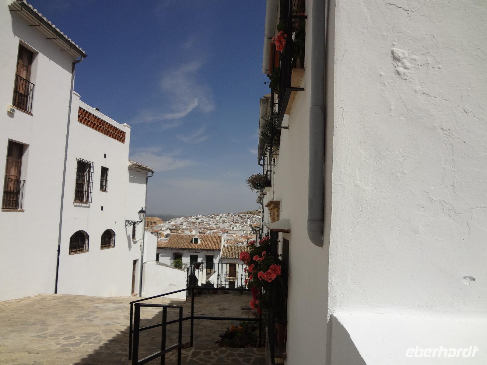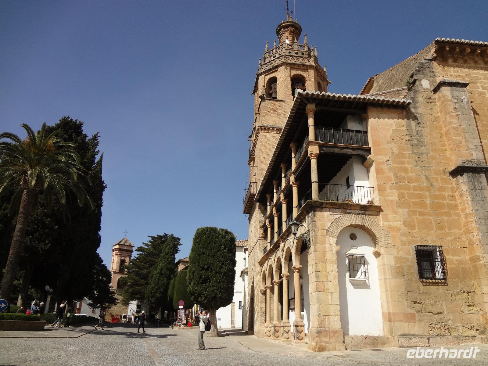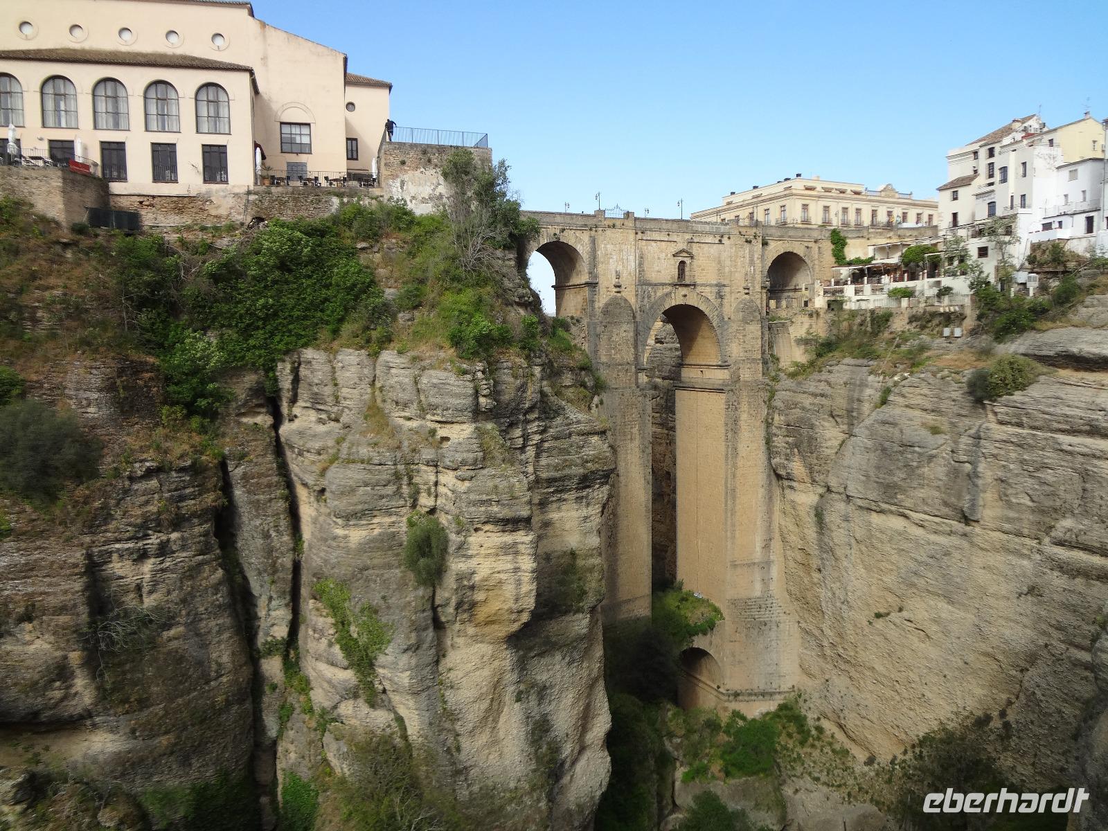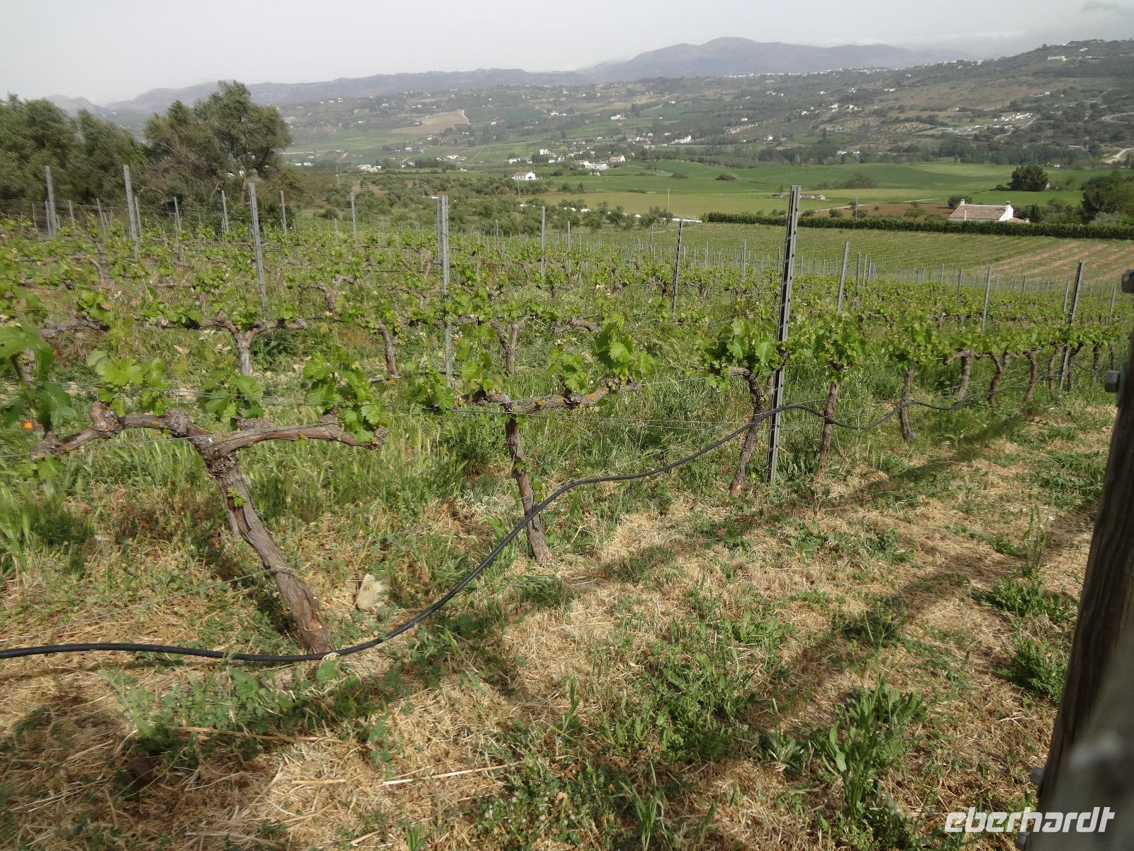Ein strahlender Tag erwartet uns heute. Das Fruehstueck hat von Lachs ueber Cerrano und Iberico Schinken bis zum Muesli, frischen Fruechten und wohltuendem Kaffee alles, was das Herz begehren koennte. Wir lassen es uns wirklich gut gehen. Der oertliche Reiseleiter heisst Daniel, er spricht Deutsch wie ein unsriger hat jedoch noch nie in Deutschland gelebt und ist hier in Malaga aufgewachsen. Daniel schlendert mit uns durch die Stadt und zeigt uns vorerst die schoene Markthalle mit ihren Fisch- Fleisch- Obst und Gemuesehaendler. Alles schaut prachtvoll aus und wird teilweise so kuenstlerisch feilgeboten, man koennte meinen, in jedem Haendler steckt ein Stueckchen Picasso. Letzte Woche war Semana Santa, da wurden die Heiligen in Prozessionen durch die Stadt getragen, uebrig geblieben sind die mit Tuch verzierten Balkone der Haeuser und die Wachstropfen auf dem marmornen Fussboden. Ja, die Innenstadt hat eine Fussgaengerzone aus Marmor, es regnet hier fast gar nie, sonst waere das ein gefaehrliches Shopping. Diese Wachstropfen werden heute muehsam wieder entfernt. Die Iglesia Santo Cristo wird gerade restauriert dafuer schauen wir uns die riesen, eintuermige, gothische Kathedrale genauer an. Natuerlich klettern wir auch in den Ruinen der Alcazaba herum und erfahren von Daniel, weshalb die Mauren/Araber/Mohamedaner diese grosszuegigen, bestens gesicherten Festungen an so vielen Orten Andalusiens gebaut haben. Wir lernen ueber ihr Leben, Ihre Traditionen und Ihre Religion. 700 Jahre spaeter, wurde Andalusien an die Christen abgetreten und aus vielen Moscheen wurden Kirchen. Genauso, diese Kathedrale. Die Moschee die hier stand, soll 800 Saeulen gehabt haben. So, nun machen wir aber mal Pause, Mittagessen, auf eigene Faust durch die Gaesschen gehen, sich das Picasso Museum anschauen, sodass wir muede genug werden fuer die Siesta im Bus nach Ronda. Bloss 1 ½ Stunden dauert die Busfahrt. Unsere Hotel liegt wunderschoen ausserhalb der Stadt Ronda, umgeben von herrlichen Bergen und Sicht auf einen See. Eberhardt laedt uns heute vor dem Abendessen auf einen Apero auf der Terrasse ein. Wir trinken feinen Rioja, lachen viel und lernen uns besser kennen. Die Paella heute Abend ist besser als gestern und die Tomatensuppe schmeckt auch koestlich. Lange bleiben wir noch sitzen denn es ist hier so gemuetlich. Niemand springt jauchzend auf, als eine Yogastunde morgen frueh angeboten wird. Mal schauen, wer Morgen frueh schon wieder fit ist.