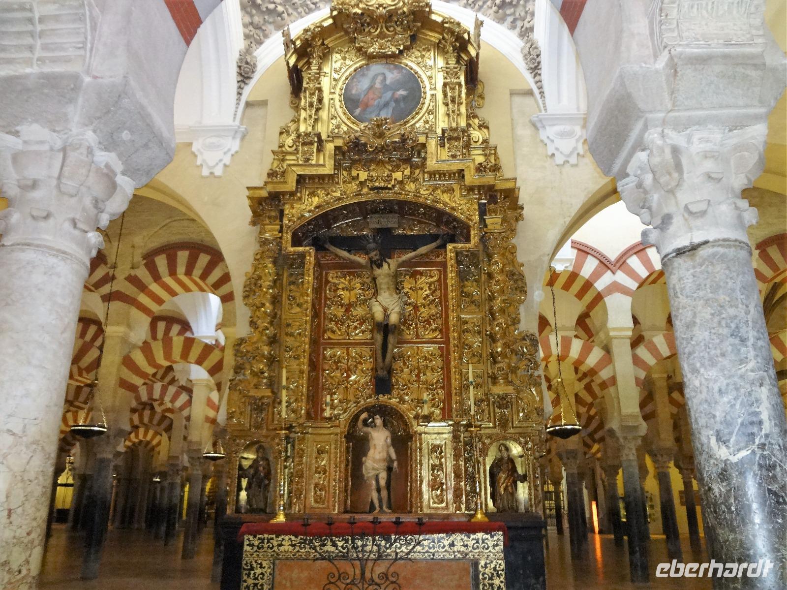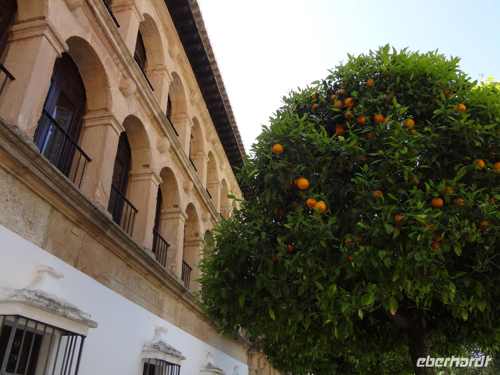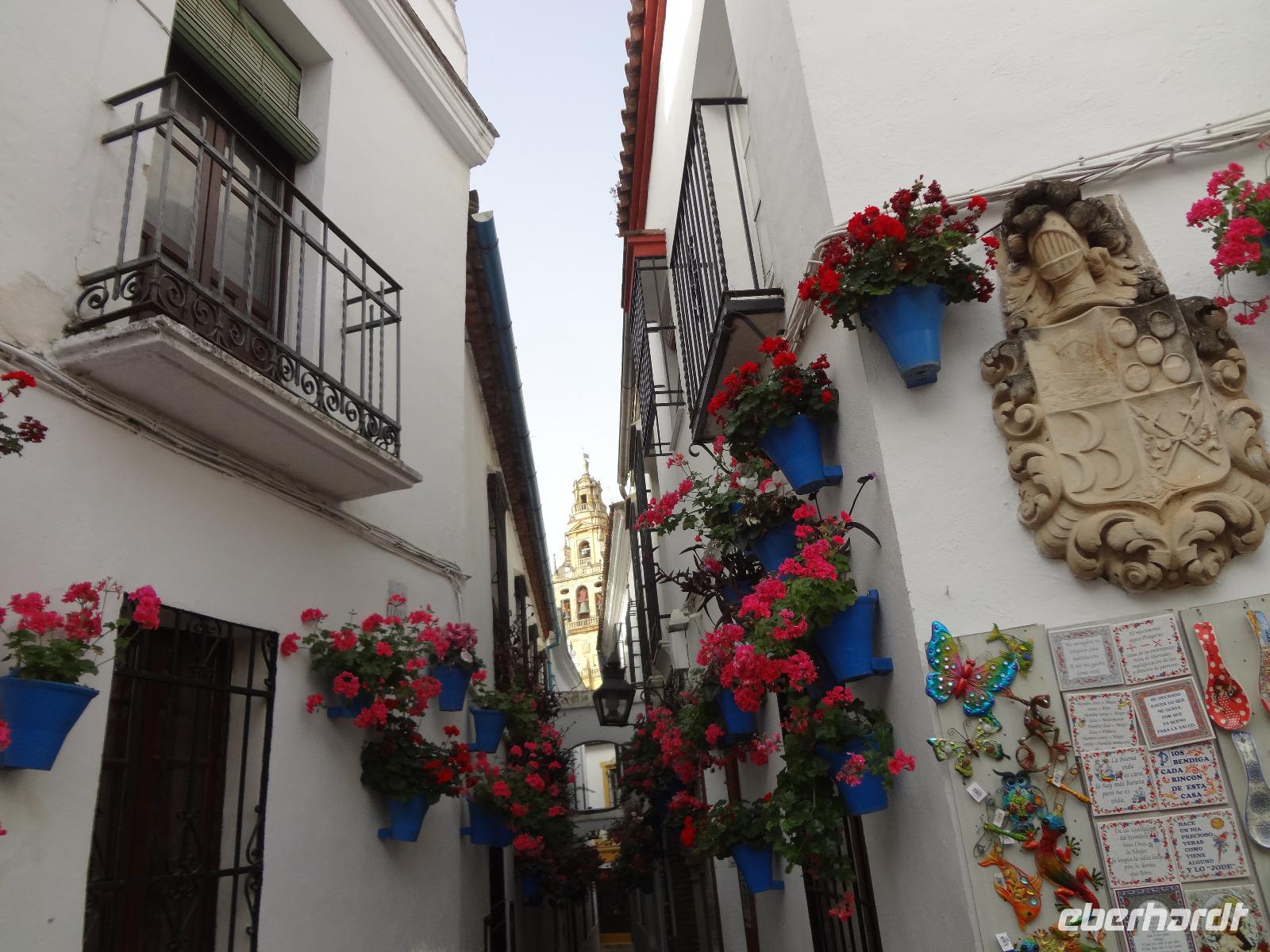 Der Reiseleiter Miguel, der einen Olivenhain mit ueber 100 Olivenbeaumen besitzt, erwartet uns an diesem Sonntag bereits um 8:30 Uhr. Wir moechten gerne die erste Gruppe in der weltberuehmten Moschee-Kathedrale, La Meztiqua sein. Diesen eindruecklichen Ort ganz fuer sich zu erleben ist etwas ganz besonderes. Die 856 Saeulen mit ihren Doppelboegen lassen uns dastehen wie Beduinen die das erste mal eine Oase sehen. Unfassbar, diese Stille, diese Weite, diese schlichte Pracht. Die Moschee wurde bereits im 8. Jh gebaut und im 10. fertiggestellt. Sie wurde bald zu klein und die Kalifen zu maechtig. Mit ihnen wuchs auch die Moschee ueber die Jahrhunderte. Der Stil hatte sich jedoch nie veraendert, deshalb diese Ausgewogenheit. Im 1236 fing die christliche Periode in Cordoba an und eine stattliche Kathedrale musste her. Wohin ? Gleich in die Mitte der Moschee ! Dies bewirkte grosse Aufstaende aber die Kirche siegte und heute sehen wir eine gloriose Kathedrale inmitten einer Moschee. Ueber 200 Saeulen mussten weichen, die Decke wurde aufgerissen und das Gotteshaus wurde eingebaut. Wunderschoen und doch eigenartig thront sie im Glanz des Katholizismus inmitten der schmucklosen aber eindruecklichen Moschee. Miguel zeigt uns die besten Plaetzchen um die besten Fotos zu knipsen, viele sind nun in der Bildergalerie von Eberhardt ? Wir verlassen diese wundersame Pracht, denn viele andere Besucher stuermen nun hinein und jagen mit ihren Kameras durch den Saeulenwald. Wir wollen noch die schmalen schoen verzierten Gassen des Judaria Viertels von Cordoba besichtigen. Die schoenste Fassade und der schoenste Patio werden von der Stadt praemiert, das reizt natuerlich die Einheimischen und wir profitieren in vollen Zuegen davon. Die Blumengasse, die Skulpturen, die kleinen Plaetze und die vielen Restaurants und Tapas Bars lassen uns kaum mehr zurueck ins Hotel gehen. Wir besichtigen auch noch eine kleine Synagoge ehe wir uns von Miguel verabschieden. Um 12 Uhr gibt es eine Messe in der Kathedrale, da wollen die meisten hin, auch um die Orgel zu hoeren. Anstatt Orgelmusik ertoent Musik einer Ziguenergruppe die zu Ehren der erst gerade heilig gesprochenen Emilia aufspielen. Emilia war eine Ziguenerin und eine Martyrin. Die Messe war dadurch sehr spanisch was uns sehr gefallen hat. Ja, nun ist Freizeit oder Stadtbummel mit Mitagessen angesagt. Alle haben einen Stadtplan und wollen so schnell wie moeglich eines der leckeren Tapas Bars aufsuchen und in den Souvenier Laeden noch nach was passendes fuer die Nachbarin einkaufen. Ach... die Katze, der Hund, die Blumen, die Post.... ohne Hilfe ginge es doch nicht. Danke, danke. Spaeter treffen wir uns wieder im Hotel, sodass wir gemeinsam zum Abendessen gehen koennen. Mhhh, wir sind wieder in einem tollen Lokal, gar nicht weit von unserem Hotel entfernt. Der Ochsenschwanz ist wirklich koestlich. Noch einen Absacker, noch einen Nachtspaziergang durch diese geschicht-geladene Stadt. Noch ein paar Bilder, noch mehr bleibende Eindruecke. Cordoba, wir werden dich nie mehr vergessen.