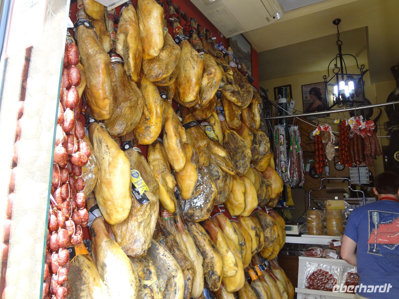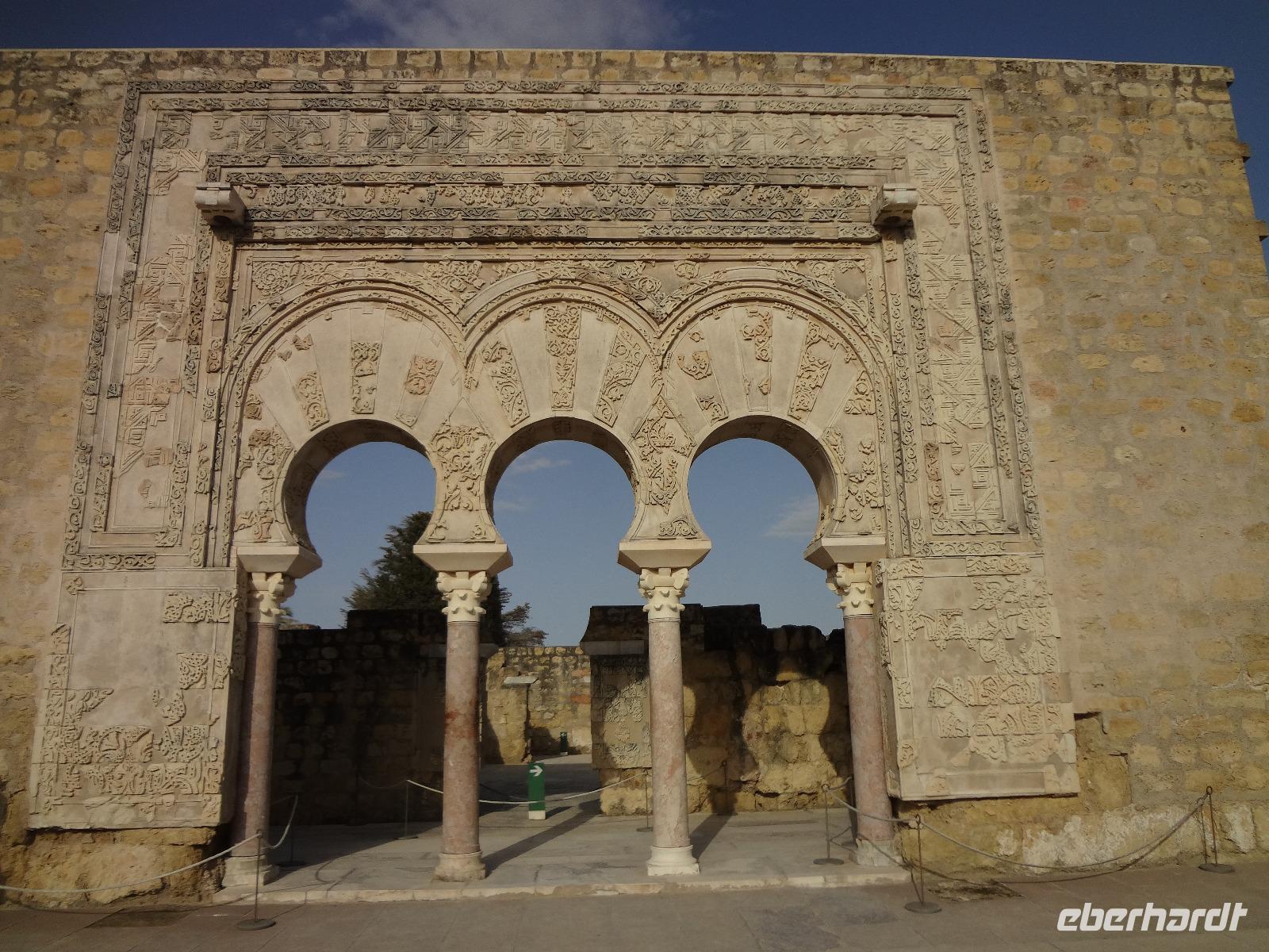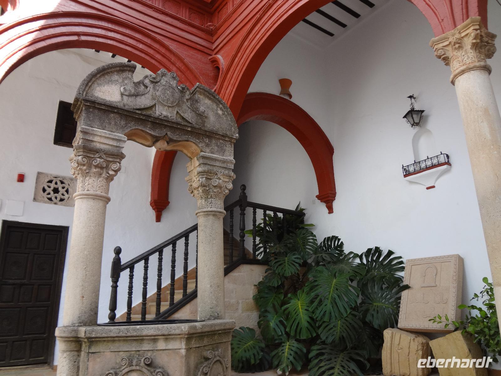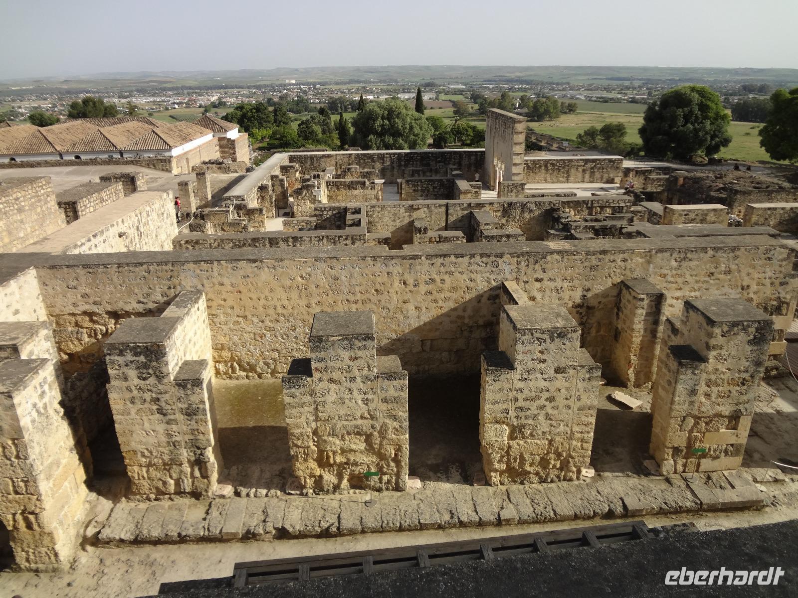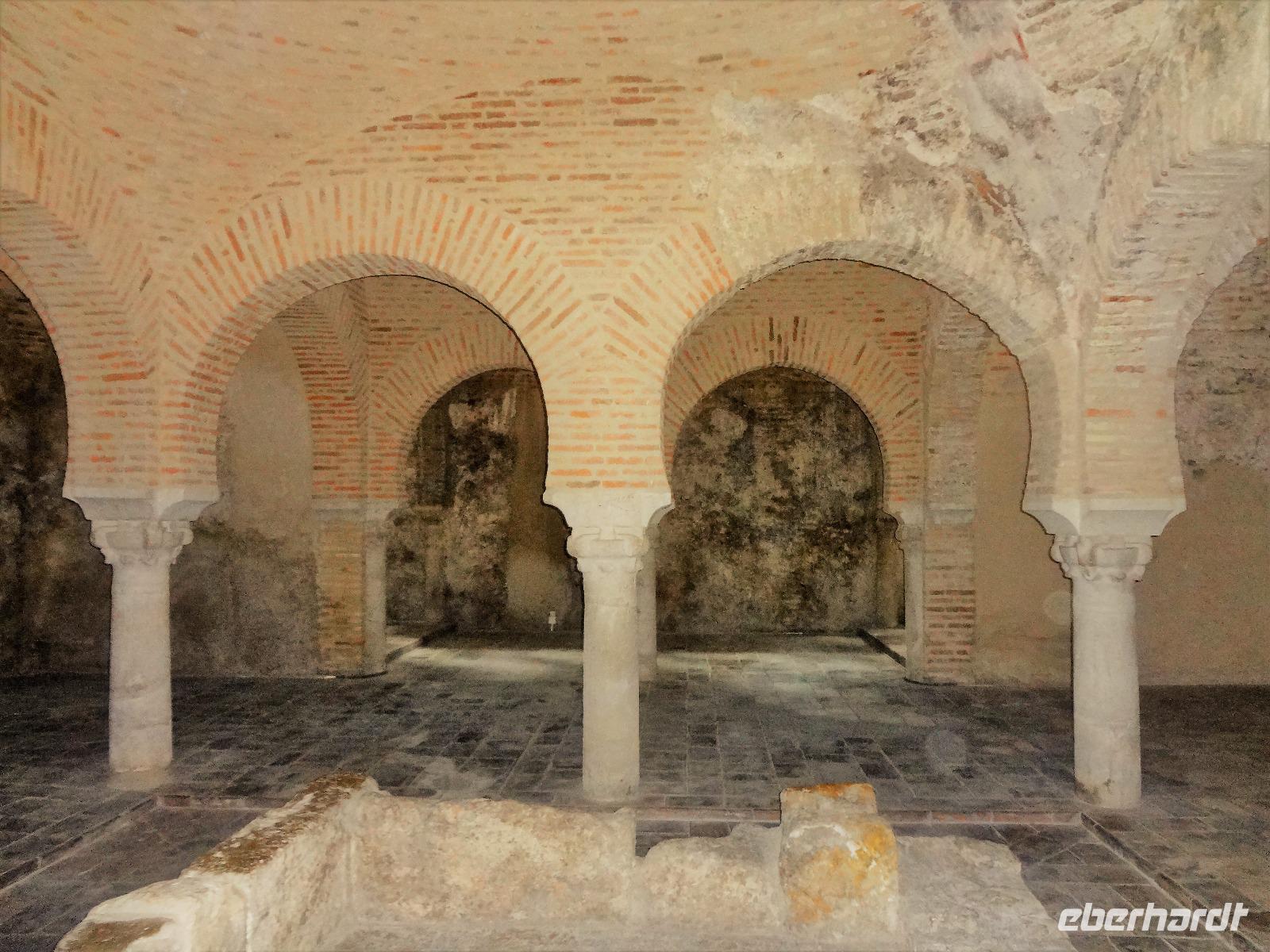 Ein frischer schoener Tag begruesst uns heute und Juan steht mit seiner Julia (Busname) schon vor dem Hoteleingang. Es wird 1 ½ Stunden dauern, bis wir nach Jaen gelangen. Ueber eine wunderschoene Huegellandschaft die sich auf 1000 Meter ueber Meer befindet und mit Olivenhainen bepflanzt ist erreichen wir das Staedtchen Jaen. Wir fahren einemal um das Staedtchen herum bis wir den richtigen Parkplatz erblicken. Wir sehen auf dieser Panoramafahrt schon die Festung Santa Catalina welche auf einem der Huegel der diese Stadt umgibt, thront. Bloss 2 von den 4 maechtigen Palaesten, welche Santa Catalina ausmachen, sind aus arabischer Zeit die anderen 2 wurden im spaeteren Christentum dazugebaut. Eines der beiden arabischen Palaeste, wurde in den 60er Jahren aus den Ruinen in ein Parador verwandelt. Auch die Kathedrale und die Kirche San Idelfonso winken uns schon hinter den weiss getuenchten Haeuser zu. Da ist auch schon Carmen, unsere Reiseleitung vor Ort. Im flotten Tempo spazieren wir nun durch die Stadt zu unserem ersten Stopp. Die arabischen Baeder. Ein schoenes Pratizierhaus wurde im 16 Jhd auf die arabischen Baeder die nun Ruinen waren, gebaut. Dieses Haus steht auch noch und ist heute ein Museum. Der Architekt der mit der Instandhaltung des Hauses beauftragt wurde, hat alle Raeumlichkeiten des Hamams renoviert sowie das ganze Haus auf Stelzen gesetzt. Sehr imposant. Nun gehts weiter durch die Stadt in Richtung San Idelfonso. Wir machen in einem Kaffeehaus noch kurz Pause, da der Kaffee nun wirklich sein muss. In der Kirche wird gerade die Erste Kommunion vieler Kinder gefeiert und wir schauen uns deshalb eher das Aeussere der interessanten Kirche an. Verschieden Epochen fuer die verschiedenen Seiten sind zeugen der architektonischen Geschichte Jaens. Nun wollen wir uns auch noch die Kathedrale anschauen. Gute 500 Jahre hat der Bau dieser Kathedrale gedauert und auch hier wurden die architektonischen Elemente des ersten Architekten immer wieder uebernommen, sodass wir heute eine herrlich schlichte, mit Balkone versehene Kathedrale erleben koennen. Viele Geschichten erzaehlt uns die fesche junge Carmen doch unser Magen knurrt schon und das kleine Gasthaus nimmt uns gerne auf. Tapas, Bier, Wein und feine Speisen goennen wir unserem Gaumen. Ahhhh, wir kommen in spanischen Zeitdruck, nichts wie zahlen und ab nach Cordoba wo wir eine Stunde spaeter in unser, im Zentrum gelegenen, Hotel einchecken. Von Koffern erloest, gehts auch gleich weiter nach Medinat Alzahara. Diese Ausgrabungsstaette einer roemischen Regierungsstadt ist etwa 20 Km ausserhalb Cordobas und ist Zeuge grossartiger Baukunst eines riesen Areales mit Koenigspalast und mehreren anderen Palaeste und Behausungen fuer hohe Funktionaere sowie fuer Soldaten und Personal. Nur ein kleiner Prozentsatz dieser Stadt ist ausgegraben und deshalb ersichtlich. Wir sehen die original Umrisse der Bauten und Kanaele und horchen der Geschichte dieser Kultur zu. In einem Film lernen wir auch, wie sich das Leben im 11 Jhd hier abspielte und wie ein Botschafter eines weit weg gelegenen Territoriums hierher kam um mit dem Herrscher eine Audienz zu halten. Durch wieviele Saeaele er gehen musste, wie er von dem Reichtum und dem Glanz betoert wurde und was ihn erwartete als er endlich in den Empfangssaal schreitete. Prunk und Pracht wie nie zuvor gesehen.....und ja, er hat es ueberlebt. Nach diesem eindruecklichen Besuch fahren wir wieder in die Stadt wo uns ein wunderbares Abendessen mit lauter kleinen Speisen zum teilen erwartet. Serviert wird es heute in einer Taverne, die oben ganz schmucke Privatsaeaele hat. Die Weine sind auch koestlich und so lassen wir diesen vollen, schoenen Tag frisch froehlich ausklingen.