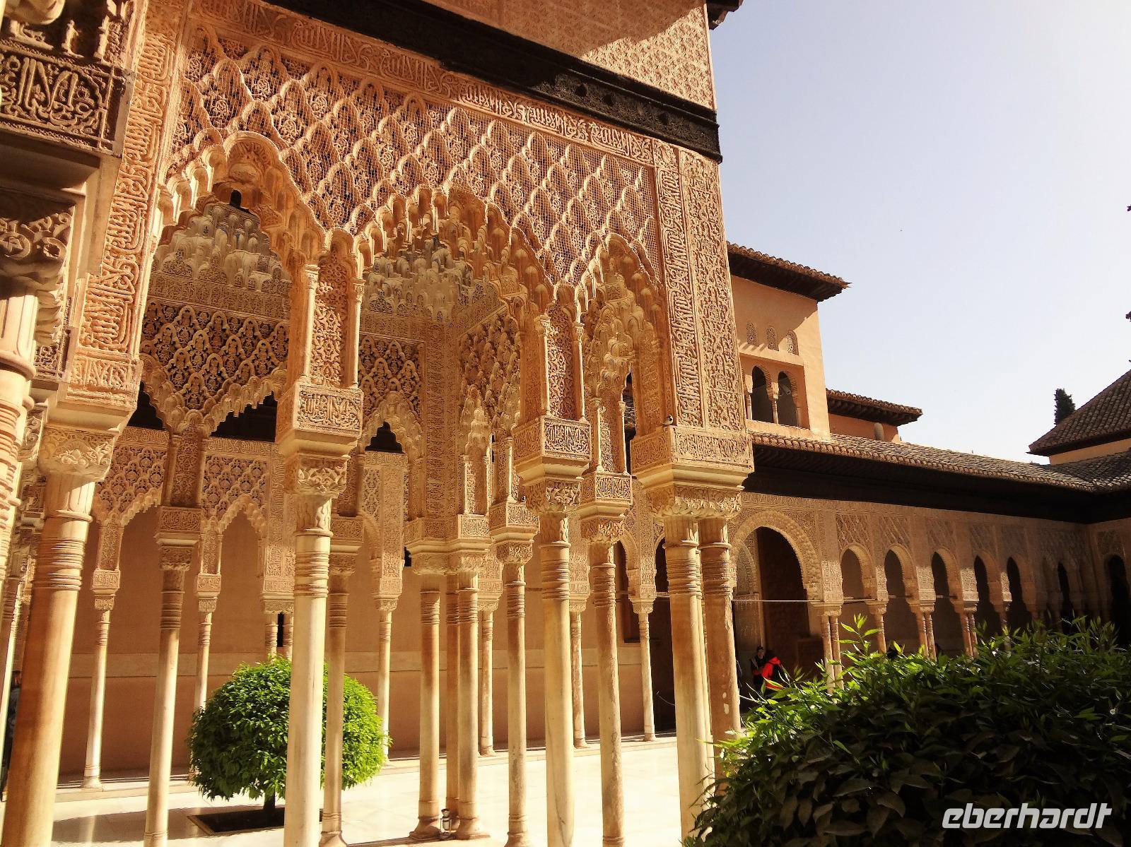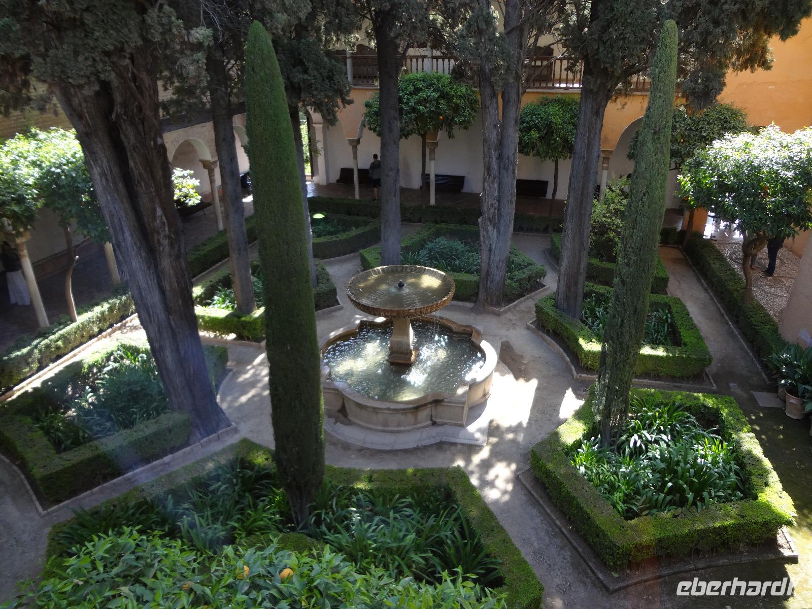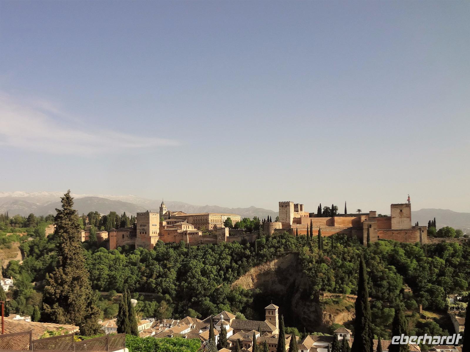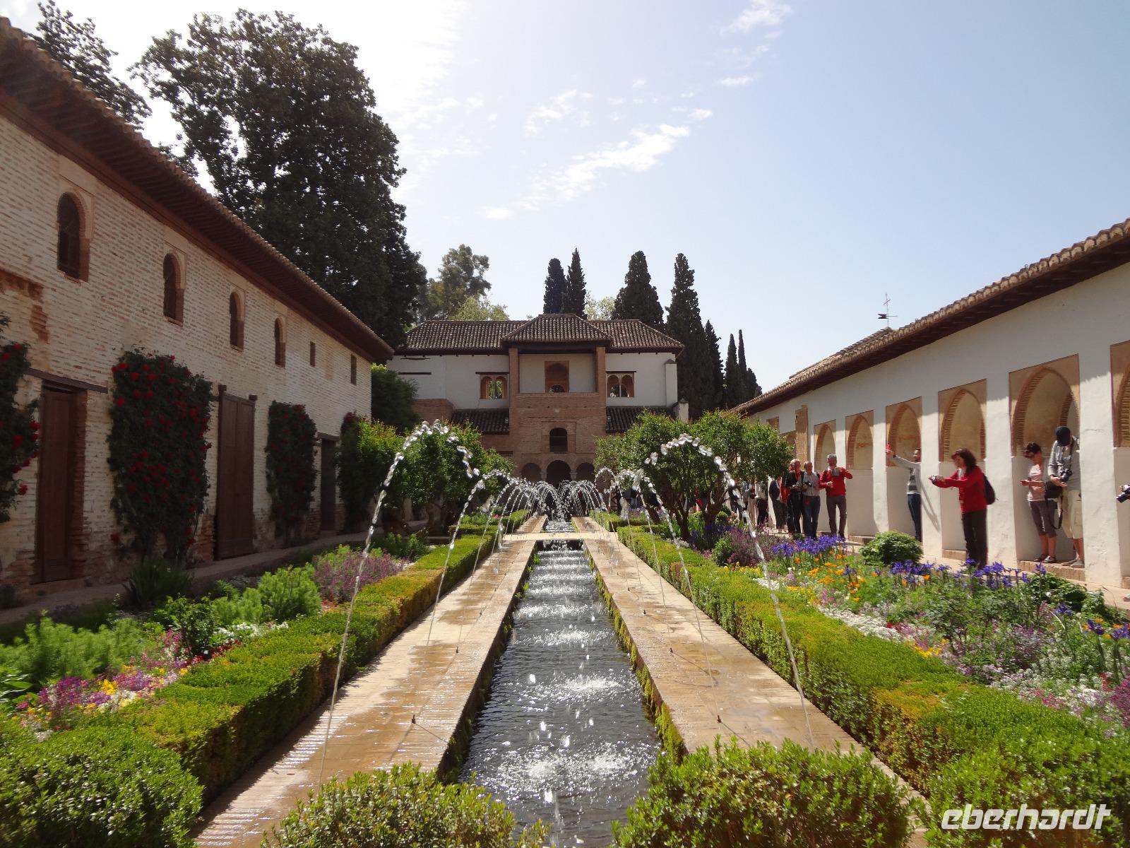 Der Erlebnis-Tag bricht an. Alle freuen wir uns schon auf das, was da heute Vormittag kommen sollte. Voller Erwartung und Neugierig steigen wir nach dem Fruehstueck in den Bus. Unser Juan wird uns zur weltbekannten Al Hambra fahren. Sie ist nicht weit weg, 5 Minuten mit dem Bus, 30 Minuten waeren es zu Fuss. Die Burg thront ueber der Stadt Granada auf einem hohen Huegel. Da ist auch schon Pedro. Al Hambra, Die Rote, ein Meisterwerk der Baukunst, ueber die Jahrhunderte gebaut und wiederhergestellt, renoviert und angebaut. Da, wo Koenige und Adlige im Garten lebten indem ein Schloss stand. Hier sind die Gaerten sowie die Palaeste ausgewogen und atemberaubend. Hier, wo die Fliessen und Stuckarbeiten aufregend und die Pflanzenwelt so beruhigend wirken. Al Hambra, die perfekte Ausgewogenheit und Schoenheit, deshalb ist es auch im UNESCO Weltkulturerbe. Wir werden sie besuchen und gleich 3 ½ Stunden damit verbringen alle Details bewundern zu koennen. Einer Zypressen-Allee entlang schlendernd, sehen wir kleine Baechlein mit fliessendem Wasser ! und ueber die Ziehbruecke gehend bewundern wir schon mal die Palaeste von weitem, das Emblem der arabischen Kultur offenbart sich hier. An Mirthenhecken und Rosengaerten vorbei, besuchen wir vorerst den noch unfertigen Palast von Karl dem Fuenften, aus dem Hause Habsburg. Der riesengrosse runde Patio in der Mitte ist zum Himmel offen geblieben da das Baugeld eher fuer Kriege ausgegeben wurde. Gleich gehts weiter in die Nasriedenpalaeste. Schauen Sie sich die Bilder an, denn das, was wir gesehen haben ist unbeschreiblich schoen und selbst die Bilder ersetzen keinen Besuch der Al Hambra. Immer wieder stossen wir ineinander und oftmals stolpert der eine oder jene ueber irgend etwas, da alle unsere Sinne auf einer anderen Ebene schweben und das menschliche einfach nicht auch noch Platz im Gedankengut hat. Durch die Palaeste gehend und unserem Reiseleiter Pedro zuhoerend, versezten wir uns ins Leben des Mittelalters mit all seinen Hoehen und Tiefen, dass hier auch noch tausend moderne Menschen um uns herumstehen und mit ihren Kameras wild drauflos knipsen ist aehnlich dem Geraeuschpegel in einer Stadt, stoert erstaunlicherweise nicht. Durch den Architekten-Garten, an Wasserspielen, Statuen und herrlichen Aussichtsterrassen vorbei, gelangen wir in den wohl allerschoensten Garten. Der weisse Palast welcher zu diesem Garten gehoert, ist der Generalife Palast und wurde von einer bekannten italienischer Familie vor dem totalen Verfall gerettet. Heute ist es der Ort der alle unsere Gefuehle wieder ordnet, Besinnlichkeit, Glueck, Dankbarkeit und Liebe sind einige Worte die in diesem Garten beheimatet sind. Die 3 ½ Stunden vergehen flugs, wir sind beeindruckt und so setzen wir uns wieder zu Juan in den Bus der uns .... bis irgendwohin bringt. Wir sind gut ausgeruestet mit Stadtplan und finden nach einigen Richtungsaenderungen wieder unser Hotel welches sich in der Altstadt befindet wo Busse bloss mit Sondergenehmigung zum ein-und auschecken hinfahren duerfen. Den Nachmittag gestaltet sich nun jeder selbst. Einige besuchen die Kathedrale, andere die engen Gaesschen der Altstadt oder spazieren nochmals in das Viertel des Albaicin welches auf dem gegenueberliegenden Huegel der Al Hambra liegt und somit immer wieder wundersame Blicke auf das Meisterwerk schenkt. Einen wunderbarer Tag haben wir erlebt und wir sind dabei reicher geworden.