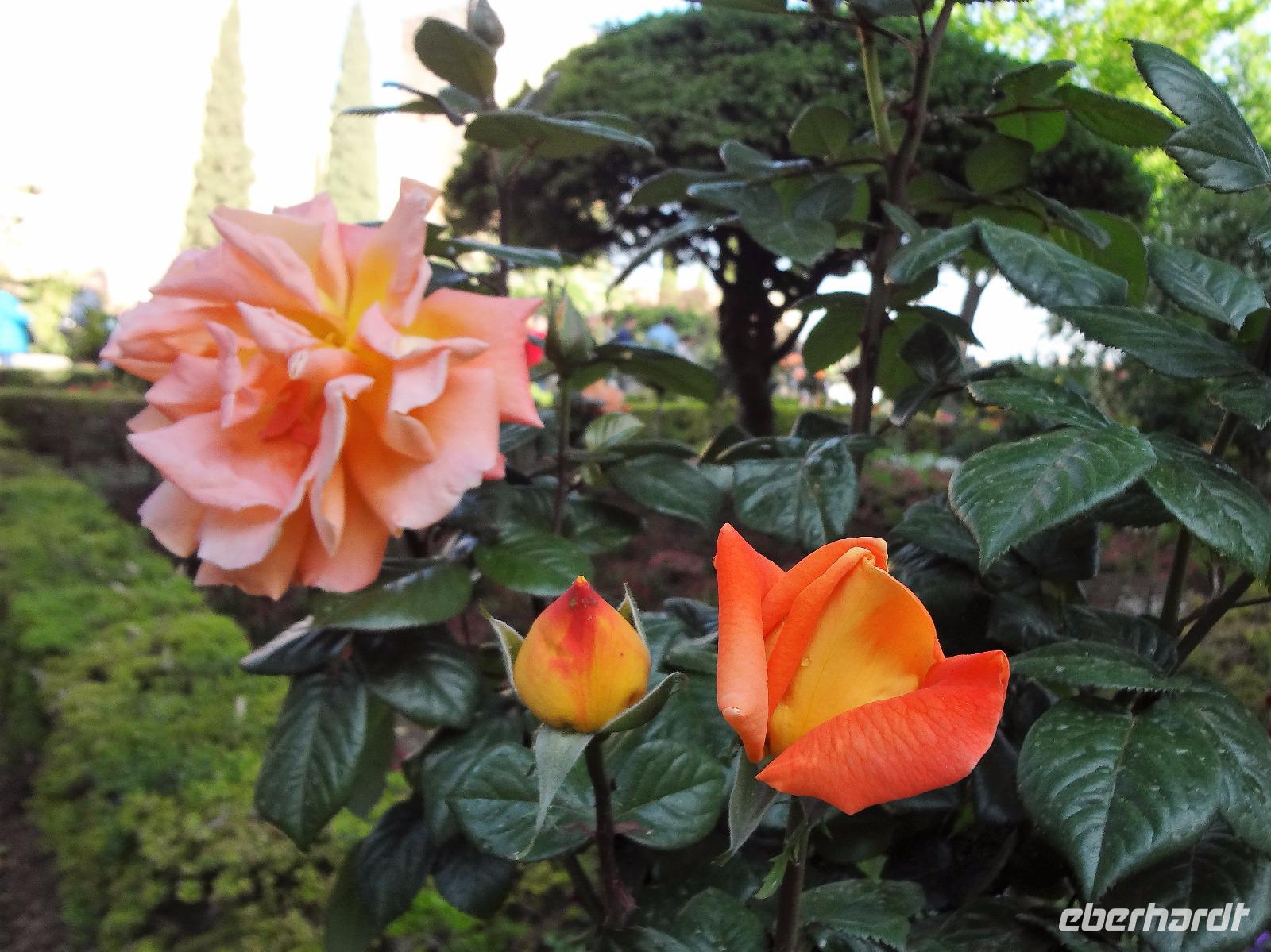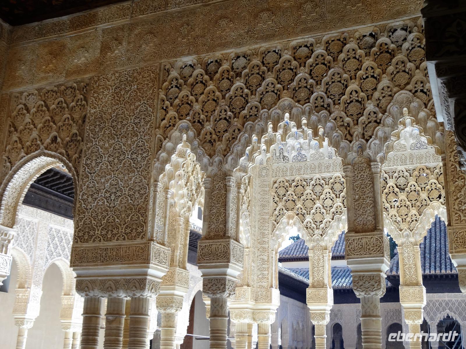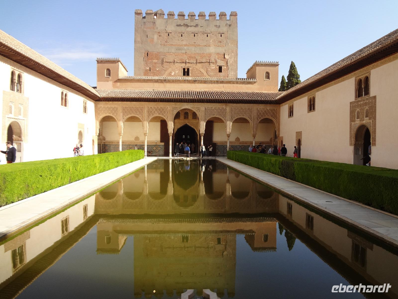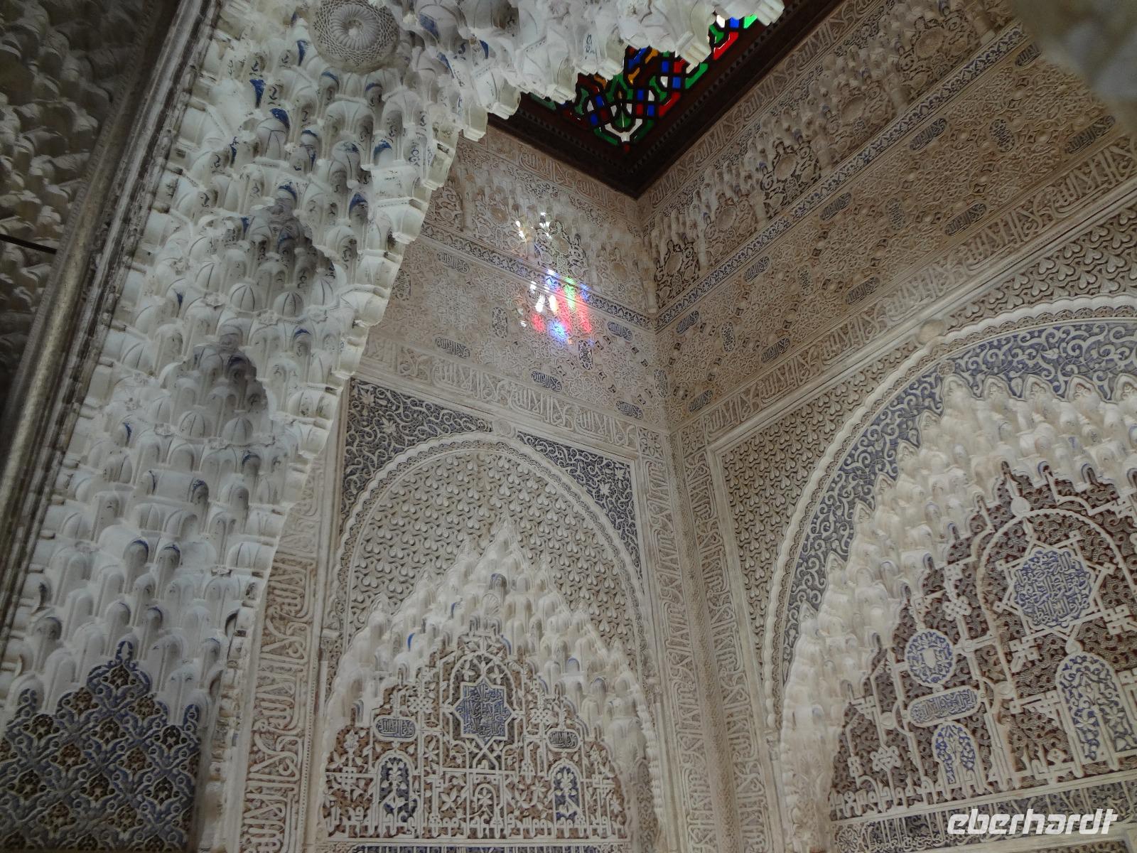 Der Erlebnis-Tag bricht an. Alle freuen wir uns schon auf das, was da heute Vormittag kommen sollte. Voller Erwartung und Neugierig steigen wir nach dem Fruehstueck in den Bus. Unser Juan wird uns zur weltbekannten Al Hambra fahren. Sie ist nicht weit weg, 5 Minuten mit dem Bus, 30 Minuten waeren es zu Fuss. Die Burg thront ueber der Stadt Granada auf einem hohen Huegel. Da ist auch schon Pedro. Al Hambra, Die Rote, ein Meisterwerk der Baukunst, ueber die Jahrhunderte gebaut und wiederhergestellt, renoviert und angebaut. Da, wo Koenige und Adlige im Garten lebten indem ein Schloss stand. Hier sind die Gaerten sowie die Palaeste ausgewogen und atemberaubend. Hier, wo die Fliessen und Stuckarbeiten aufregend und die Pflanzenwelt so beruhigend wirken. Al Hambra, die perfekte Ausgewogenheit und Schoenheit, deshalb ist es auch im UNESCO Weltkulturerbe. Wir werden sie besuchen und gleich 3 ½ Stunden damit verbringen alle Details bewundern zu koennen. Einer Zypressen-Allee entlang schlendernd, sehen wir kleine Baechlein mit fliessendem Wasser ! und ueber die Ziehbruecke gehend bewundern wir schon mal die Palaeste von weitem, das Emblem der arabischen Kultur offenbart sich hier. An Mirthenhecken und Rosengaerten vorbei, besuchen wir vorerst den noch unfertigen Palast von Karl dem Fuenften, aus dem Hause Habsburg. Der riesengrosse runde Patio in der Mitte ist zum Himmel offen geblieben da das Baugeld eher fuer Kriege ausgegeben wurde. Gleich gehts weiter in die Nasriedenpalaeste. Schauen Sie sich die Bilder an, denn das, was wir gesehen haben ist unbeschreiblich schoen und selbst die Bilder ersetzen keinen Besuch der Al Hambra. Immer wieder stossen wir ineinander und oftmals stolpert der eine oder jene ueber irgend etwas, da alle unsere Sinne auf einer anderen Ebene schweben und das menschliche einfach nicht auch noch Platz im Gedankengut hat. Durch die Palaeste gehend und unserem Reiseleiter Pedro zuhoerend, versezten wir uns ins Leben des Mittelalters mit all seinen Hoehen und Tiefen, dass hier auch noch tausend moderne Menschen um uns herumstehen und mit ihren Kameras wild drauflos knipsen ist aehnlich dem Geraeuschpegel in einer Stadt, stoert erstaunlicherweise nicht. Durch den Architekten-Garten, an Wasserspielen, Statuen und herrlichen Aussichtsterrassen vorbei, gelangen wir in den wohl allerschoensten Garten. Der weisse Palast welcher zu diesem Garten gehoert, ist der Generalife Palast und wurde von einer bekannten italienischer Familie vor dem totalen Verfall gerettet. Heute ist es der Ort der alle unsere Gefuehle wieder ordnet, Besinnlichkeit, Glueck, Dankbarkeit und Liebe sind einige Worte die in diesem Garten beheimatet sind. Die 3 ½ Stunden vergehen flugs, wir sind beeindruckt und so setzen wir uns wieder zu Juan in den Bus der uns .... bis irgendwohin bringt. Wir sind gut ausgeruestet mit Stadtplan und finden nach einigen Richtungsaenderungen wieder unser Hotel welches sich in der Altstadt befindet wo Busse bloss mit Sondergenehmigung zum ein-und auschecken hinfahren duerfen. Den Nachmittag gestaltet sich nun jeder selbst. Einige besuchen die Kathedrale, andere die engen Gaesschen der Altstadt oder spazieren nochmals in das Viertel des Albaicin welches auf dem gegenueberliegenden Huegel der Al Hambra liegt und somit immer wieder wundersame Blicke auf das Meisterwerk schenkt. Einen wunderbarer Tag haben wir erlebt und wir sind dabei reicher geworden.