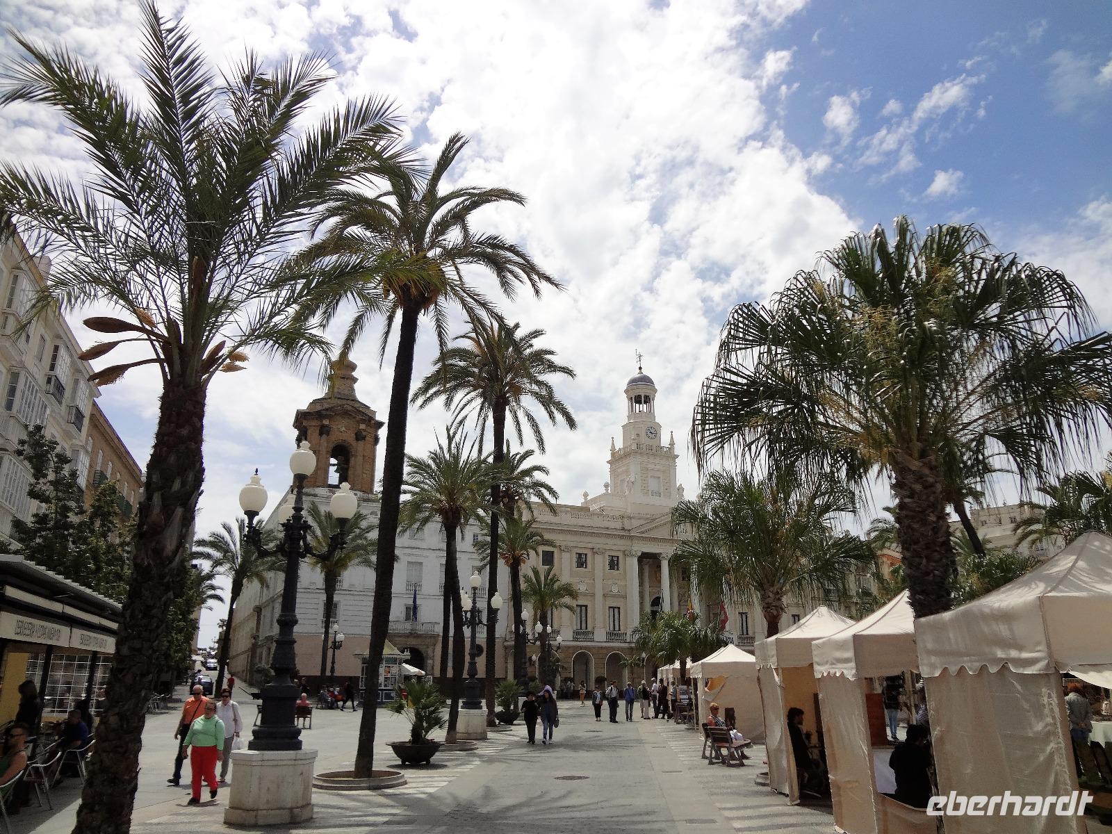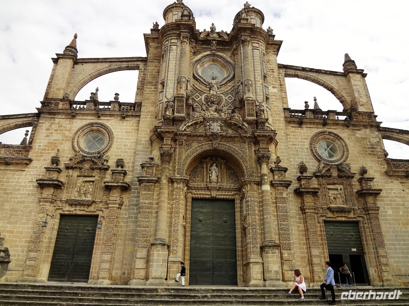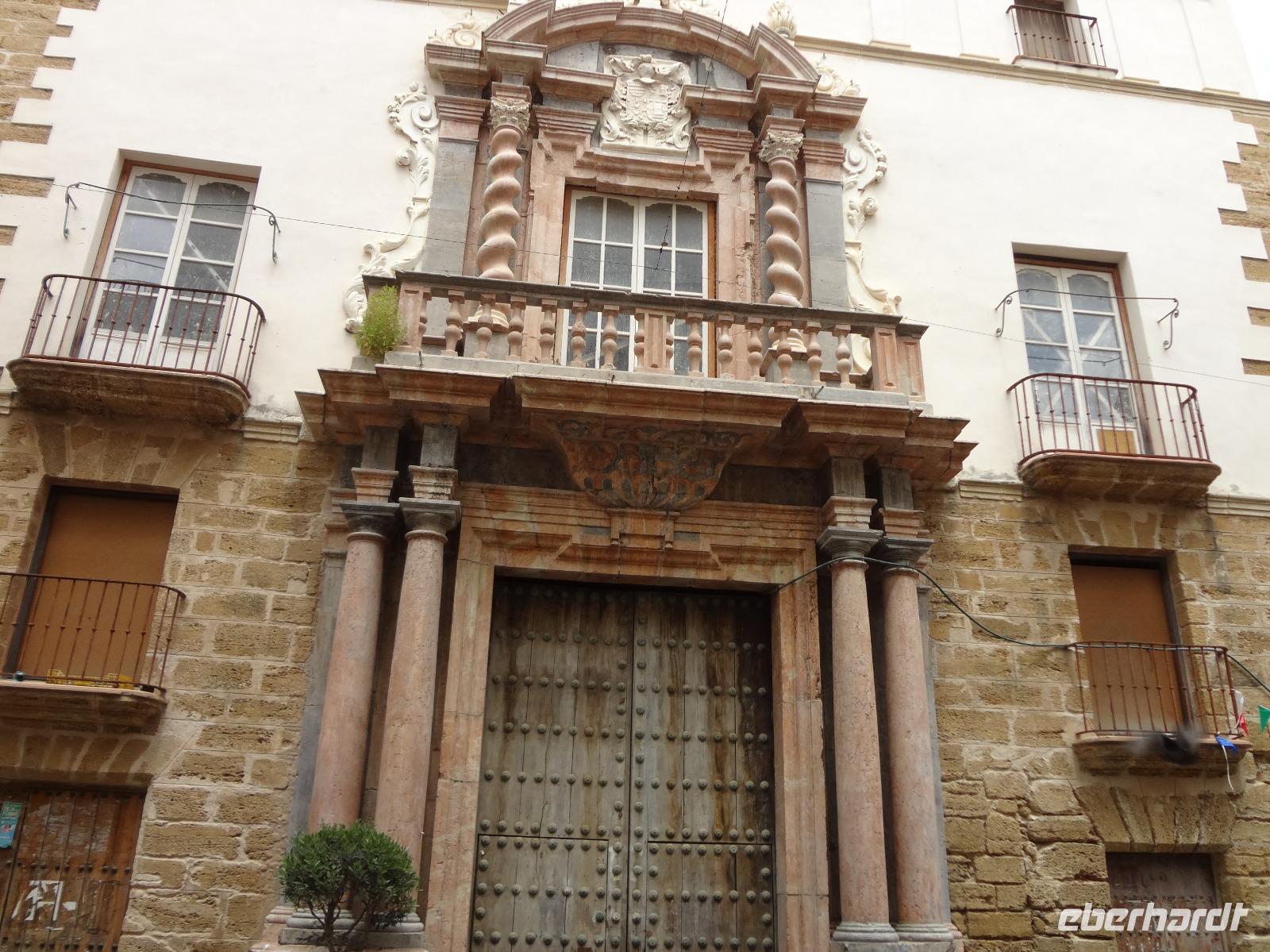 Heute verlassen wir dieses aeusserst interessante Hotel mit seinen vielen Innenhoefen, Treppen, romantischen Dachterrassen und eigenartigen Zimmer und fahren mit unser „neuen" Fahrerin Esther gleich nach Cadiz. Vorbei an vielen Weizenfelder die sich lieblich der huegeligen Landschaft anpassen und die schoenen weissen Fincas und Bodegas umarmen. Es ist eine fruchtbare Gegend mit nur noch wenigen Olivenhainen. Anfangs fahren wir durch das neue Cadiz und denken uns, unseren Teil. Aber gleich erblicken wir schon die roemische Stadtmauer mit ihrem Stadttor „puerta de tierra". Durch dieses Tor fahren wir bis zum Faehrehafen. Da steht sie auch schon, unsere heutige Reiseleiterin, Maria. Sie winkt und wirkt sofort sympatisch wie uebrigends alle Reiseleiter die wir bisher schon kennengelernt haben. Sie steigt in unseren Bus ein und es geht auch gleich auf die Orientierungsfahrt von Cadiz. Die Strasse fuehrt uns entlang des Meeres rund um die Halbinsel. Vorbei an einer Zigarren Fabrik inder gewisse Arbeiter, wie Rosa, Zigarren drehend und rauchend ueber 100 Jahre alt wurden!, dem Zollamt, einem riesen Bahnhof der aus zwei Bahnhoefen besteht !, einem Gefaengnis welches als Standesamt umgetauft wurde !, der maechtigen Kathedrale die so nahe dem Meer gebaut wurde, dass sie fast hineinfaellt und des Bischof's Haus. Wir sehen auch die 2 Gummibaeume die vor 100 Jahren als Zweig gepflanzt wurden und nun Riesen geworden sind, das Franziskaner Kloster auf seiner eigenen Halbinsel, die Burg Santa Catalina, 2 Bollwerke und verschiedene Parkanlagen die eher wie Botanische Gaerten ausschauen. So viele interessante und amuesante Geschichten kann uns die gute Maria erzaehlen, dass wir vor lauter rechts und links schauen uns wie in einem aerobic Kurs vorkommen. Das viele Lachen strafft auch unsere Bauchmuskulatur. Das Wetter ist heute heiter mit einigen Wolkenfelder, was sehr angenehm ist, denn wir wollen nun die Stadt zu Fuss erkunden. Auch hier quietschen die Raeder der Autos und Busse wieder und unsere Kameras laufen heiss auf dem Rundgang durch die vielen Gassen vorbei an so vielen schoenen Aussichten und Einblicke. Auch die schoene Markthalle wird besucht, was uns ans Mittagessen erinnert. Das Aussuchen welcher Tapas im Restaurant auf der Plaza des flores inmitten der Blumenpracht wird wieder ein Erlebnis. Eigentlich moechte sich ja jeder durch die ganze Karte essen, es liest sich die Menuekarte so schmackhaft. Eine Stunde spaeter gehts aber wieder weiter mit unserer Besichtigung. Heute ist ein Kathedrale- und Alcazar-freier Tag. Aber die herrlichen Fassaden bestaunen wir alleweil. In der Calle Larga, der Breiten Strasse, sind alle Patrizierhaeuser einfach eine Pracht. Nun muessen wir aber zur Faehre die uns nach Puerto Santa Maria hinuebersetzt. 20 Minuten spaeter legen wir schon wieder an. Hier wartet unsere gute Esther schon auf uns und faehrt uns nach Jerez. Auch hier erwartet uns ein wunderbarer Rundgang durch die Stadt mit vielen interessanten Erlaeuterungen und eine geruhsame Kaffeepause auf einer Plaza. Ein junger Mann, Neffe des Tio Pepe, hat hier in dieser Stadt einen herrlichen Sherry produziert und diesen zu Ehren seines Onkels und Mentors Tio Pepe genannt. Heute ist gerade dieser Sherry weltbekannt. Unser Hotel ruft. In dem modernen, schmucken 4 Sterne Hotel beziehen wir auch gleich die Zimmer damit wir spaeter frisch zum feinen Buffet gehen koennen. Einen wunderbaren Tag haben wir heute erlebt und vieles haben wir wieder dazugelernt, erfahren und erlebt. Lange bleiben wir auch sitzen und reden, schwatzen und lachen bis in die tiefe Nacht hinein.