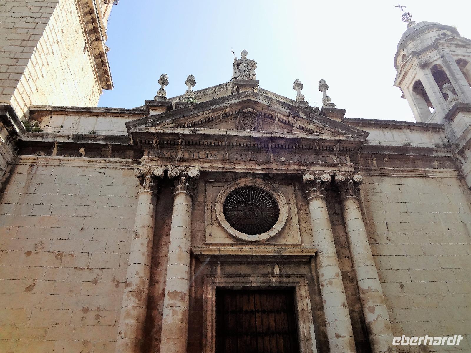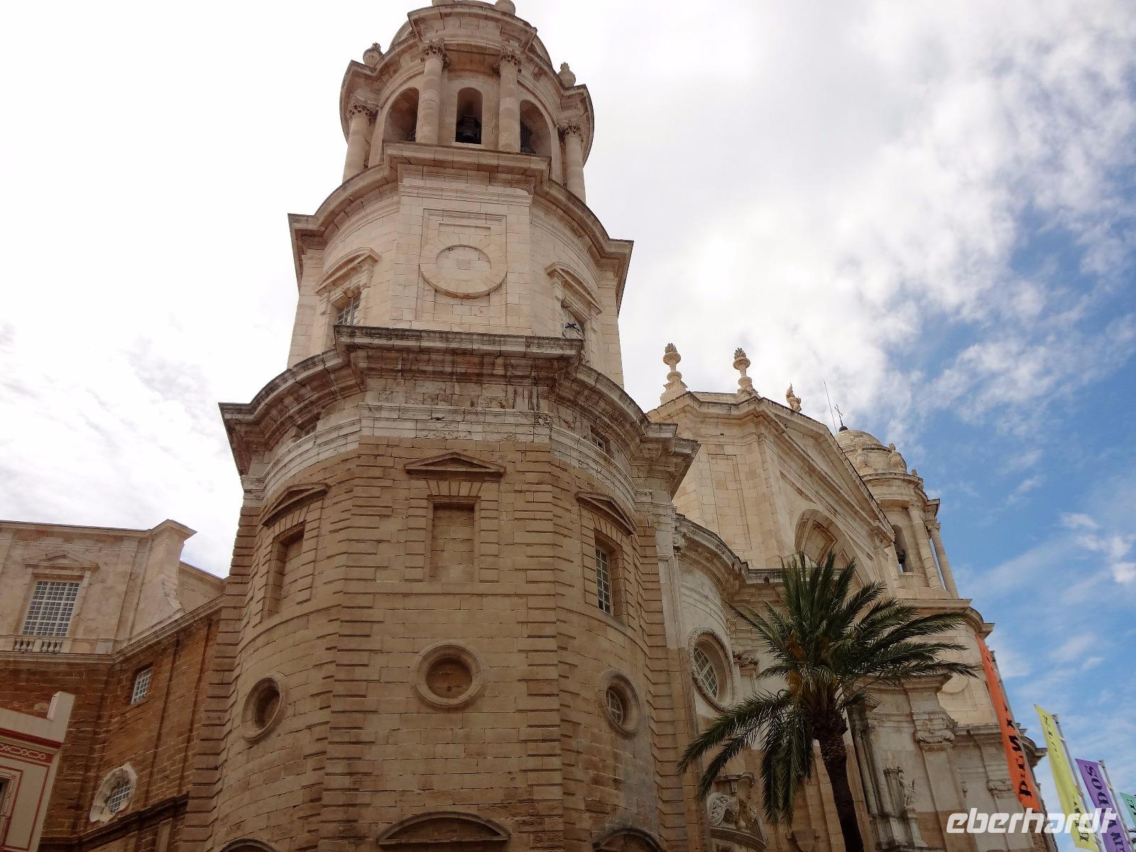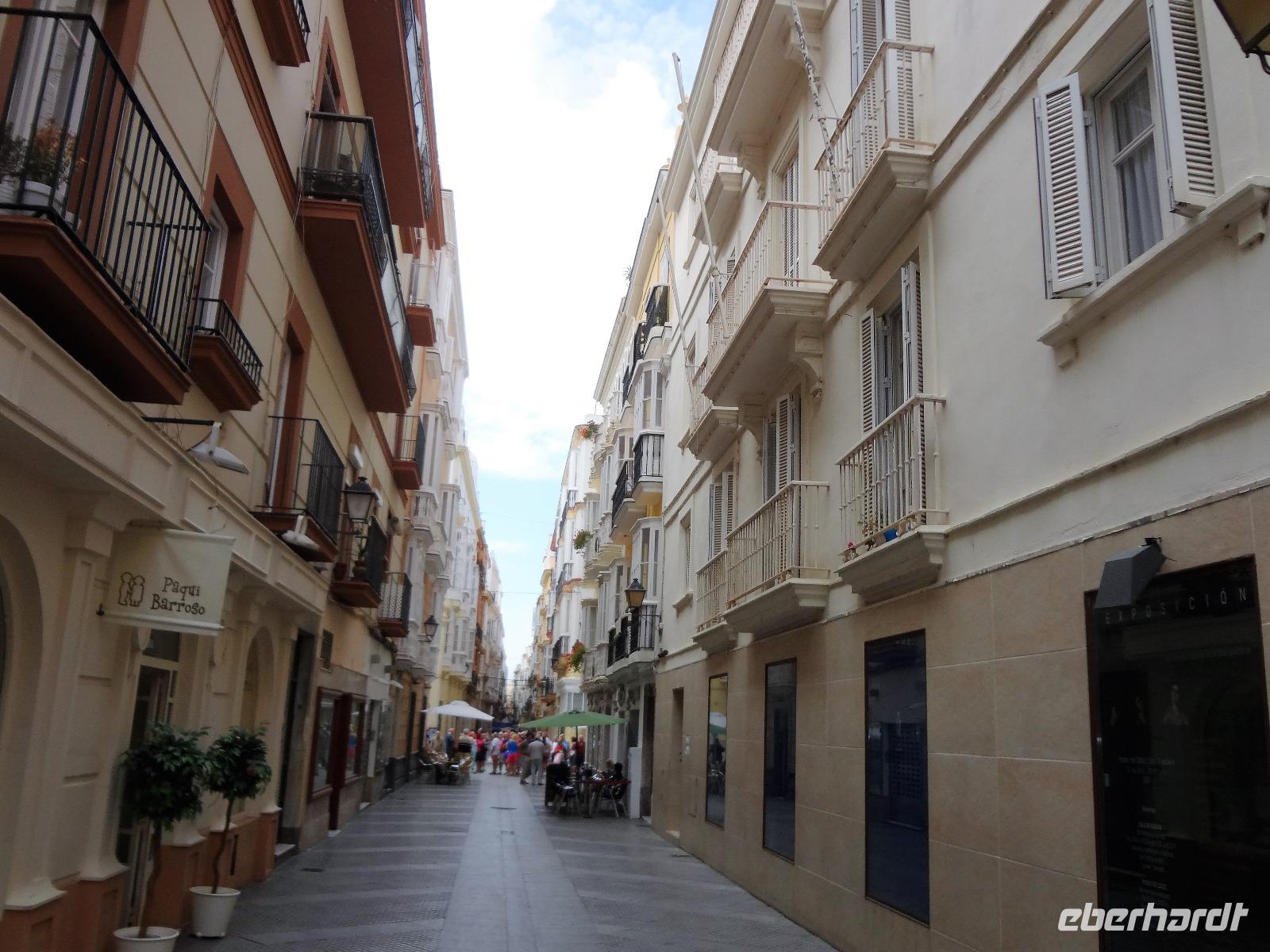 Heute verlassen wir dieses aeusserst interessante Hotel mit seinen vielen Innenhoefen, Treppen, romantischen Dachterrassen und eigenartigen Zimmer und fahren mit unser „neuen" Fahrerin Esther gleich nach Cadiz. Vorbei an vielen Weizenfelder die sich lieblich der huegeligen Landschaft anpassen und die schoenen weissen Fincas und Bodegas umarmen. Es ist eine fruchtbare Gegend mit nur noch wenigen Olivenhainen. Anfangs fahren wir durch das neue Cadiz und denken uns, unseren Teil. Aber gleich erblicken wir schon die roemische Stadtmauer mit ihrem Stadttor „puerta de tierra". Durch dieses Tor fahren wir bis zum Faehrehafen. Da steht sie auch schon, unsere heutige Reiseleiterin, Maria. Sie winkt und wirkt sofort sympatisch wie uebrigends alle Reiseleiter die wir bisher schon kennengelernt haben. Sie steigt in unseren Bus ein und es geht auch gleich auf die Orientierungsfahrt von Cadiz. Die Strasse fuehrt uns entlang des Meeres rund um die Halbinsel. Vorbei an einer Zigarren Fabrik inder gewisse Arbeiter, wie Rosa, Zigarren drehend und rauchend ueber 100 Jahre alt wurden!, dem Zollamt, einem riesen Bahnhof der aus zwei Bahnhoefen besteht !, einem Gefaengnis welches als Standesamt umgetauft wurde !, der maechtigen Kathedrale die so nahe dem Meer gebaut wurde, dass sie fast hineinfaellt und des Bischof's Haus. Wir sehen auch die 2 Gummibaeume die vor 100 Jahren als Zweig gepflanzt wurden und nun Riesen geworden sind, das Franziskaner Kloster auf seiner eigenen Halbinsel, die Burg Santa Catalina, 2 Bollwerke und verschiedene Parkanlagen die eher wie Botanische Gaerten ausschauen. So viele interessante und amuesante Geschichten kann uns die gute Maria erzaehlen, dass wir vor lauter rechts und links schauen uns wie in einem aerobic Kurs vorkommen. Das viele Lachen strafft auch unsere Bauchmuskulatur. Das Wetter ist heute heiter mit einigen Wolkenfelder, was sehr angenehm ist, denn wir wollen nun die Stadt zu Fuss erkunden. Auch hier quietschen die Raeder der Autos und Busse wieder und unsere Kameras laufen heiss auf dem Rundgang durch die vielen Gassen vorbei an so vielen schoenen Aussichten und Einblicke. Auch die schoene Markthalle wird besucht, was uns ans Mittagessen erinnert. Das Aussuchen welcher Tapas im Restaurant auf der Plaza des flores inmitten der Blumenpracht wird wieder ein Erlebnis. Eigentlich moechte sich ja jeder durch die ganze Karte essen, es liest sich die Menuekarte so schmackhaft. Eine Stunde spaeter gehts aber wieder weiter mit unserer Besichtigung. Heute ist ein Kathedrale- und Alcazar-freier Tag. Aber die herrlichen Fassaden bestaunen wir alleweil. In der Calle Larga, der Breiten Strasse, sind alle Patrizierhaeuser einfach eine Pracht. Nun muessen wir aber zur Faehre die uns nach Puerto Santa Maria hinuebersetzt. 20 Minuten spaeter legen wir schon wieder an. Hier wartet unsere gute Esther schon auf uns und faehrt uns nach Jerez. Auch hier erwartet uns ein wunderbarer Rundgang durch die Stadt mit vielen interessanten Erlaeuterungen und eine geruhsame Kaffeepause auf einer Plaza. Ein junger Mann, Neffe des Tio Pepe, hat hier in dieser Stadt einen herrlichen Sherry produziert und diesen zu Ehren seines Onkels und Mentors Tio Pepe genannt. Heute ist gerade dieser Sherry weltbekannt. Unser Hotel ruft. In dem modernen, schmucken 4 Sterne Hotel beziehen wir auch gleich die Zimmer damit wir spaeter frisch zum feinen Buffet gehen koennen. Einen wunderbaren Tag haben wir heute erlebt und vieles haben wir wieder dazugelernt, erfahren und erlebt. Lange bleiben wir auch sitzen und reden, schwatzen und lachen bis in die tiefe Nacht hinein.