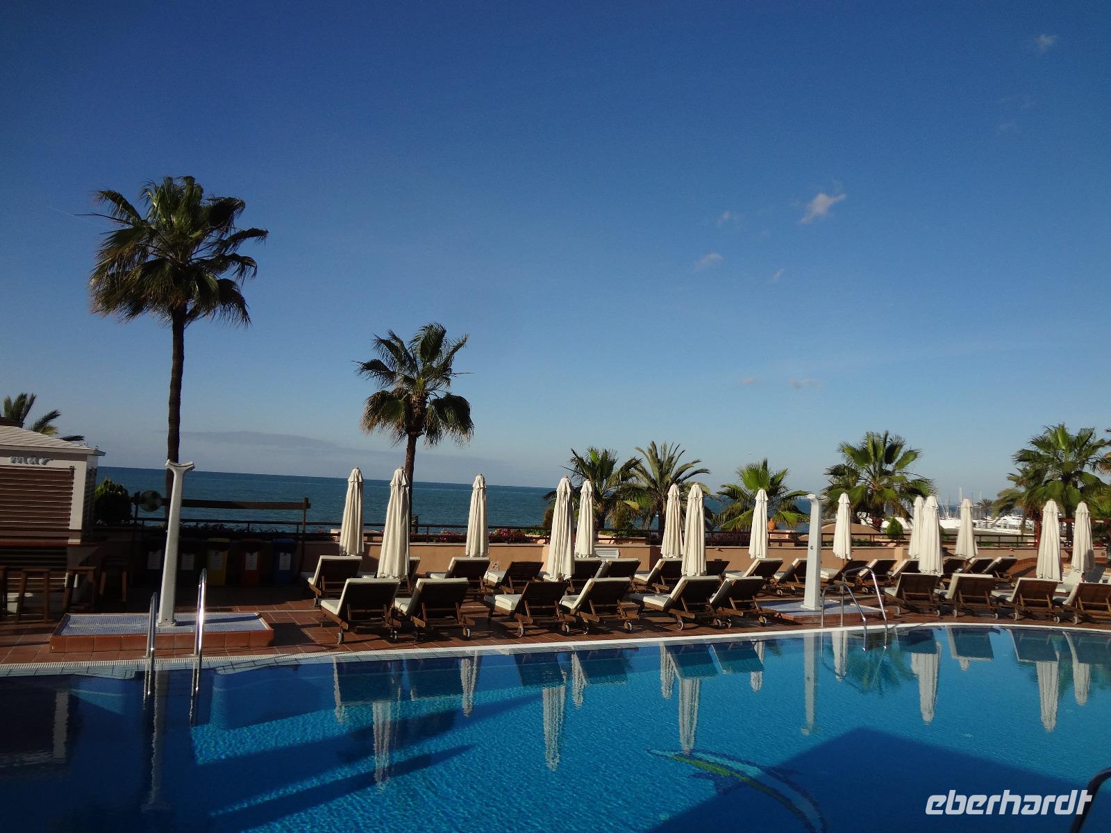 Ja, nun heute ist es wieder sonnig. Wohl fuer die Neuankoemmlinge die sich hier eine Woche Badeurlaub gebucht haben. Wir muessen uns schon fruehzeitig von 2 Familienmitgliedern trennen, da sie einen frueheren Flug nach Duesseldorf gebucht haben und bald darauf wollen noch 2 verschwinden, sie haben naemlich in Malaga eine Verlaengerung gebucht. Na, die werden uns sicher sehr vermissen, denn wir bleiben noch 2 Stunden hier. Zeit ueberall hin zu gehen und die Fotos zu schiessen, die mit natuerlichem sonnenlicht besser ausschauen als im Grauton. Um 10 sind wir dann auch alle bereit, ein grosser Bus faehrt uns nach Malaga zum Flughafen und etwas betruebt checken wir abenteuerlos ein. Wir finden auch gleich das Gate, haben noch Zeit die letzten Sachen im Dutyfree zu erstehen und steigen in den Kranich ein, der uns wieder wohlbehalten nach Hause fliegt. Kuesschen, Kuesschen, Tschuesschen, Tschuesschen ertoent es nun, aber wenn man genauer hinschaut, dann sieht man sofort, dass viele unter uns neue Freunde gefunden haben. Wir haben gemeinsam so vieles erlebt und so vieles gelernt nicht nur ueber die Region Andalusiens sondern auch ueber uns und unsere Mitreisenden. Es war eine wunderbare Reise, herzlichsten Dank an alle, ohne jeden unter uns waere diese Reise nicht so schoen, abwechslungsreich, lustig, unterhaltsam und abenteuerlich gewesen. Ich freue mich schon sehr auf ein Wiedersehen.