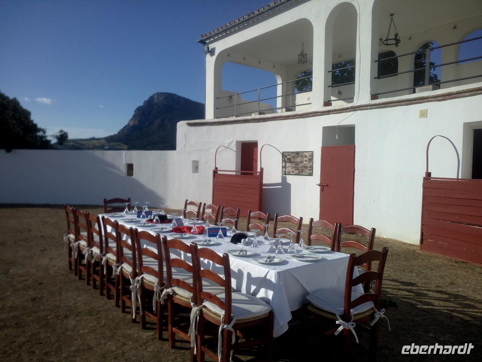 Nach einer individuellen Mittagspause fahren wir nachmittags in die Berge bei Ronda. Auf einer ruhig gelegenen Finca mit Ausblick auf einen Stausee, die so typisch sind für das andalusische Hinterland und die Wasserversorgung der Städte sicher stellen, kann der Urlaub jetzt so richtig beginnen! Wir genehmigen uns einen Urlaubs-Cocktail im Patio und erfrischen uns im Pool, bevor wir uns abends in der fincaeigenen Stierkampfarena treffen. Das nette Personal der Finca bereitet uns einen wunderbaren Grill-Abend mit der einen oder anderen lustigen Überraschung... Wer traut sich gegen die stierhaften Gäste unserer Gruppe anzutreten?