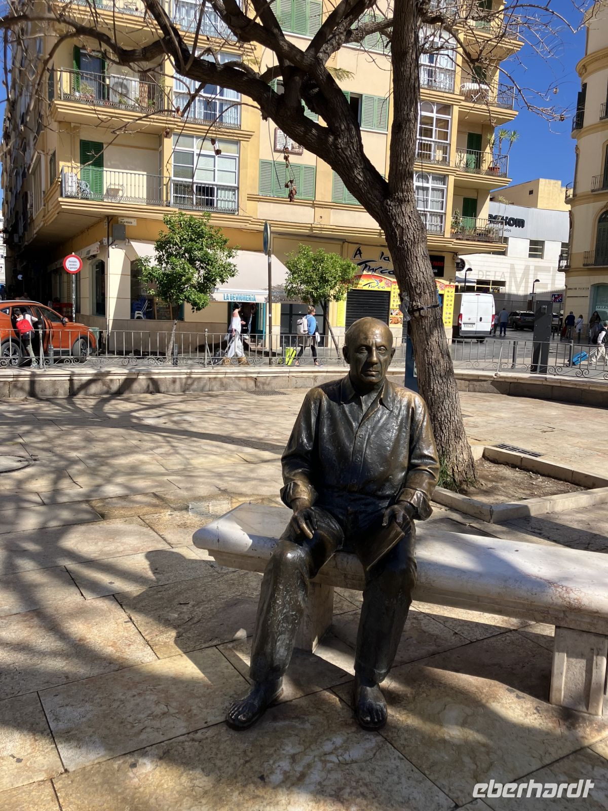 Wir starteten mit einem Spaziergang durch die charmanten Gassen der Altstadt. Unser erster Stopp war die Calle Marqués de Larios, der grossen Fussgängerzone, die sich im Laufe des Tages noch mit vielen Menschen füllen würde. Birgit plauderte nicht nur über geschichtliches, sondern auch über den Bürgermeister und sein Vermächtnis. Wir sahen Picassos Geburtshaus am Plaza de la Merced. Das unscheinbare, ockerfarbene Gebäude mit seinen schmiedeeisernen Balkonen strahlt eine besondere Aura aus – hier wurde der große Künstler geboren! Damit wir uns an diesen Augenblick erinnern würden, setzten wir uns neben die Statue Picassos, um ein denkwürdiges Foto zu machen.