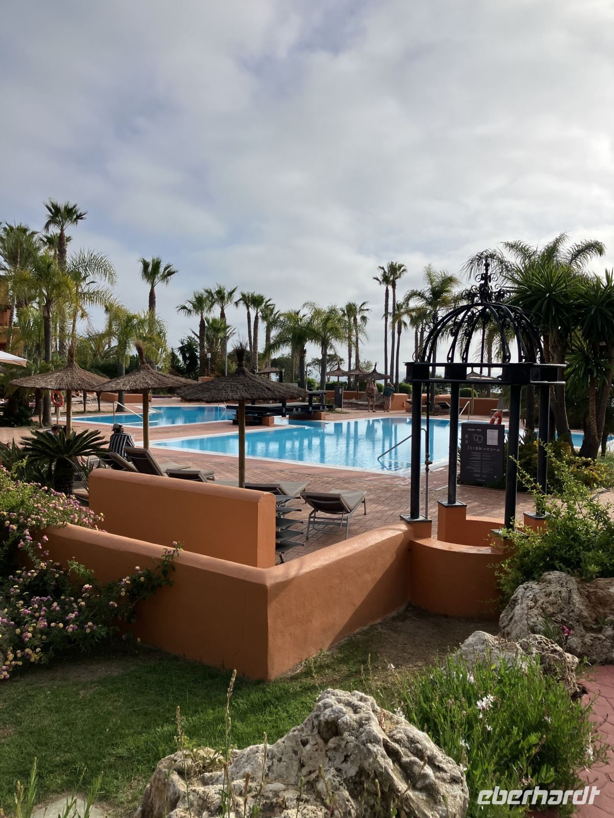 Mit unserem netten Busfahrer Tulio fuhren wir weiter nach Chiclana de la Frontera, wo unser traumhaftes Royal Hideaway Hotel auf uns wartete. Schon beim Betreten der eleganten Lobby mit ihren funkelnden Kronleuchtern und dem Blick auf Gartenanlage mit mehreren Pools fühlten wir uns wie im Paradies. Die Zimmer waren ein groß und geräumig, perfekt für die kommenden 3 Nächte.