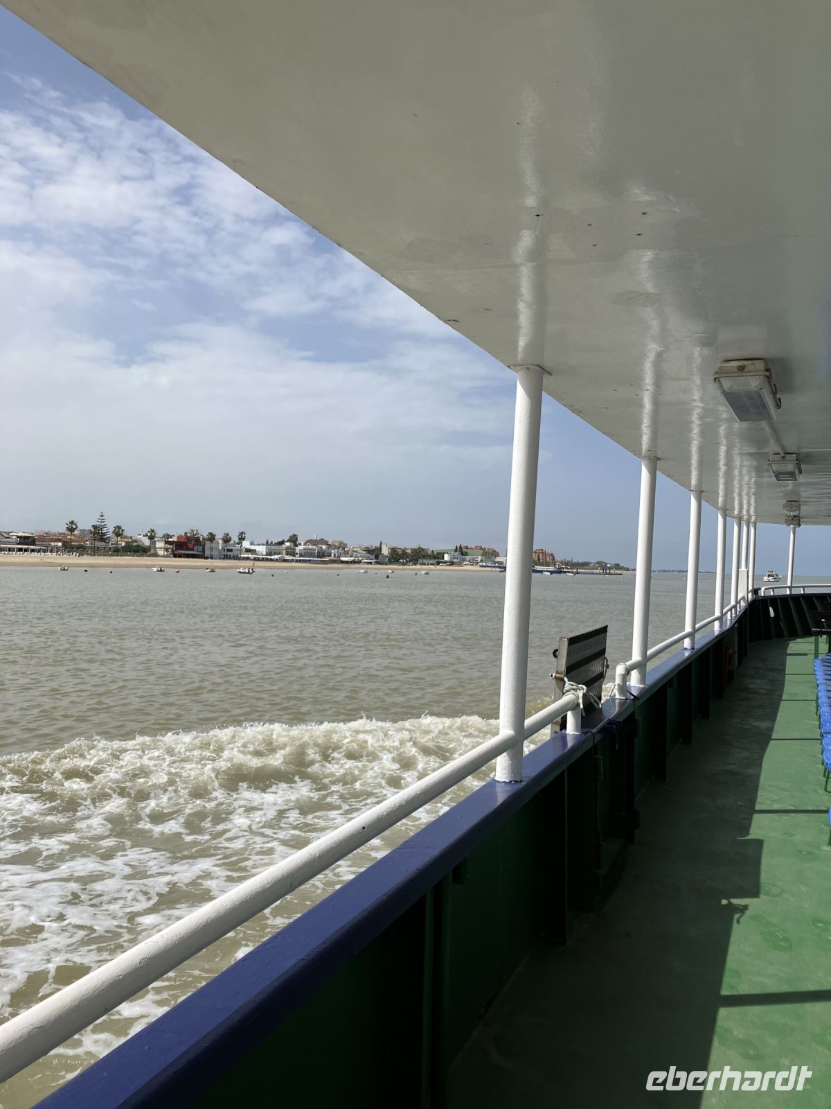 Der Tag begann früh. Wir kamen pünktlich um 9:00 Uhr in Sanlúcar de Barrameda an, wo wir uns an der Fábrica de Hielo, einer ehemaligen Eisfabrik direkt am Ufer des Guadalquivir, versammelten. Das sanfte Plätschern des Flusses begrüßte uns, während wir auf unser Fährboot warteten. Mit der Überfahrt über den Guadalquivir begann das Abenteuer dieses Tages.