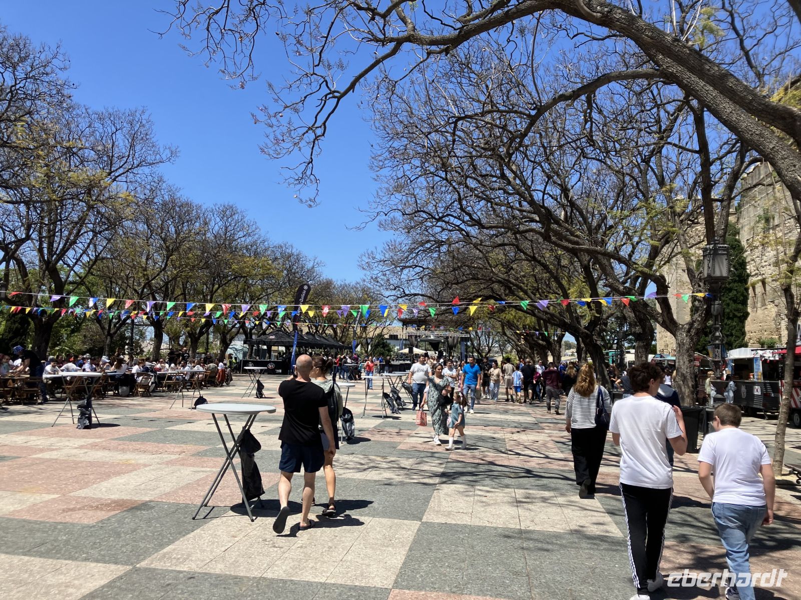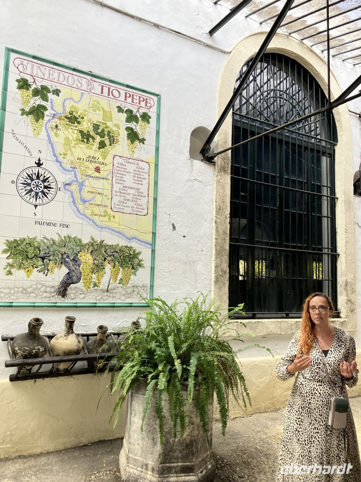 Diese Stärkung musste sein, denn wir fuhren weiter nach Jerez de la Frontera, wo uns eine ganz andere Stimmung erwartete. Die Stadt vibrierte vor Energie, denn das MotoGP-Rennen lockte Tausende von Motorsportfans an. Überall dröhnten Motoren, und die Straßen waren erfüllt von bunt gekleideten Fans und Livemusik schallte über den Platz vor dem Alcazar. Wir konnten nicht anders, als im Rhythmus der Klänge mitzuwippen, während wir zur Bodega González Byass schlenderten.