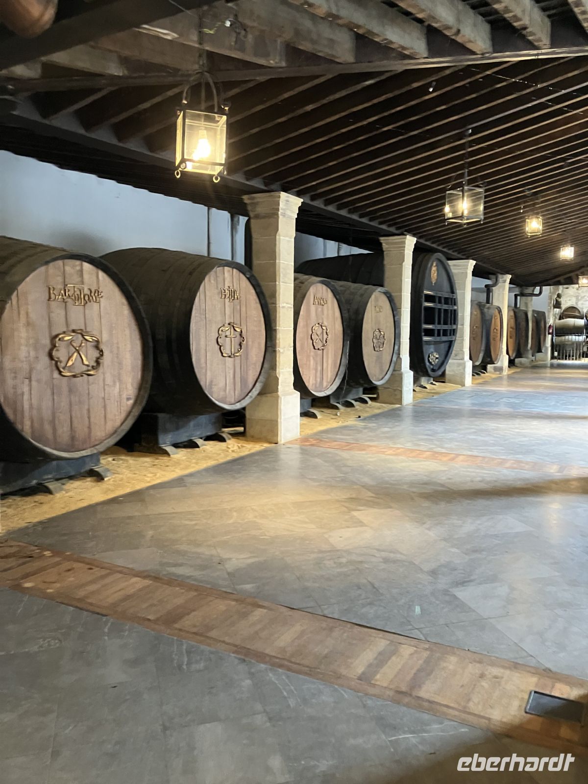 In der Bodega wurden wir von Esperanza, unserer freundlichen Führerin, empfangen. Sie führte uns durch die „heiligen Hallen“ der berühmten Sherry-Produktion. Die kühlen, dämmrigen Keller mit ihren endlosen Reihen von Fässern verströmten den unverwechselbaren Duft von Sherry – süß, nussig und ein Hauch von Salz. Esperanza erklärte uns die Kunst der Sherry-Herstellung, von Fino bis PX, und wir staunten über die jahrhundertealte Tradition. Danach durften wir zwei Sorten probieren: Die Meinungen waren geteilt – Sherry ist wirklich Geschmacksache! Einige von uns liebten den starken Geschmack, andere zuckten bei der Intensität zusammen, aber wir hatten alle Spaß beim Verkosten und Diskutieren.