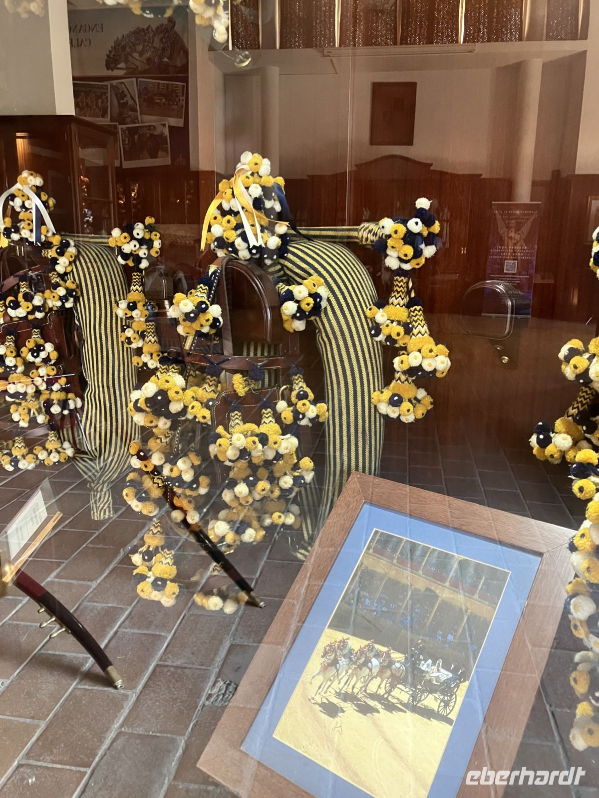 Der Tag begann mit einer kurzen Fahrt zum berühmten, staatlichen Gestüt Yeguada de la Cartuja (auf Deutsch: die Herde der Karthäuser) – Hierro del Bocado. Schon beim Betreten des stattlichen Anwesens spürten wir die besondere Atmosphäre: der sanfte Klang von Hufgetrappel und das Klingeln der Glöckchen von den bunt geschmückten Karossen. Unsere Führung begann mit einer herzlichen Begrüßung durch Linda, eine deutsch sprechende Mitarbeiterin des Gestüts, die uns in die Welt der reinrassigen Andalusier-Pferde, auch bekannt als Kartäuserpferde, einführte. Wir spazierten durch die Stallungen, wo die edlen Tiere mit ihren glänzenden Fellen und anmutigen Bewegungen sofort alle Blicke auf sich zogen. Linda erzählte uns von der jahrhundertelangen Tradition der Pferdezucht in Jerez und wie diese in der heutigen Zeit weitergeführt wird. Der Höhepunkt war die Vorstellung der Kartäuserpferde in der Arena: In einer choreografierten Show präsentierten die Andalusier ihre beeindruckenden Fähigkeiten – vom stolzen Trab bis hin zu tänzerischen Bewegungen, die fast wie ein Ballett wirkten. Die Reiter in traditioneller Tracht lenkten die Pferde mit einer solchen Leichtigkeit, dass wir alle in Staunen versetzt waren. Nicht nur die kraftvollen als auch anmutigen Bewegungen der Pferde sondern vor allem der Einlauf der Fohlen, die zum Schluss auf ihre Mutterstuten trafen, waren ein Anblick, der uns den Atem raubte.