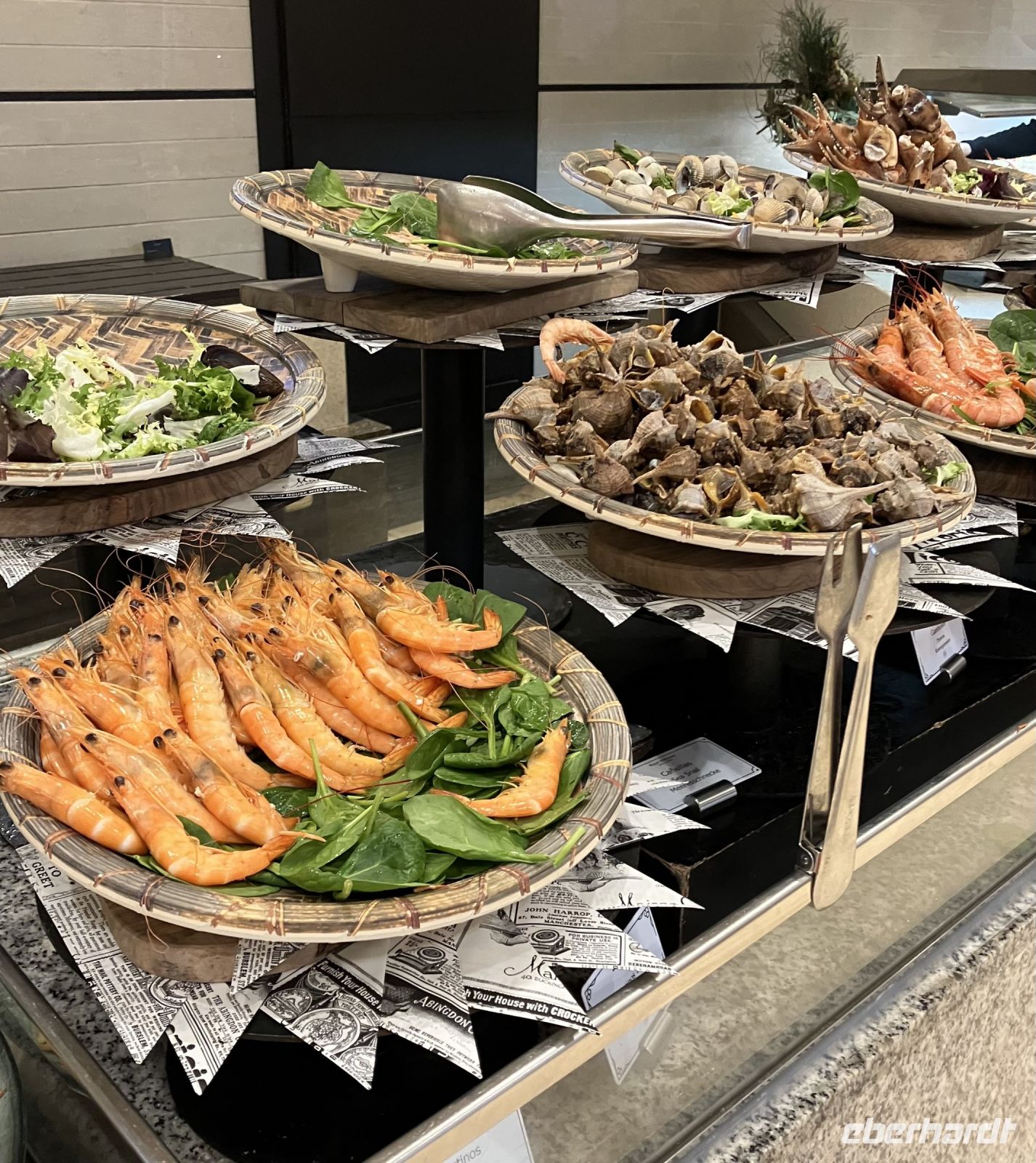 Das Abendbuffet war wie immer ein Fest für den Gaumen. Die Auswahl ließ wirklich keine Wünsche offen. Nur wir wünschten uns, dass man mehr essen könne.