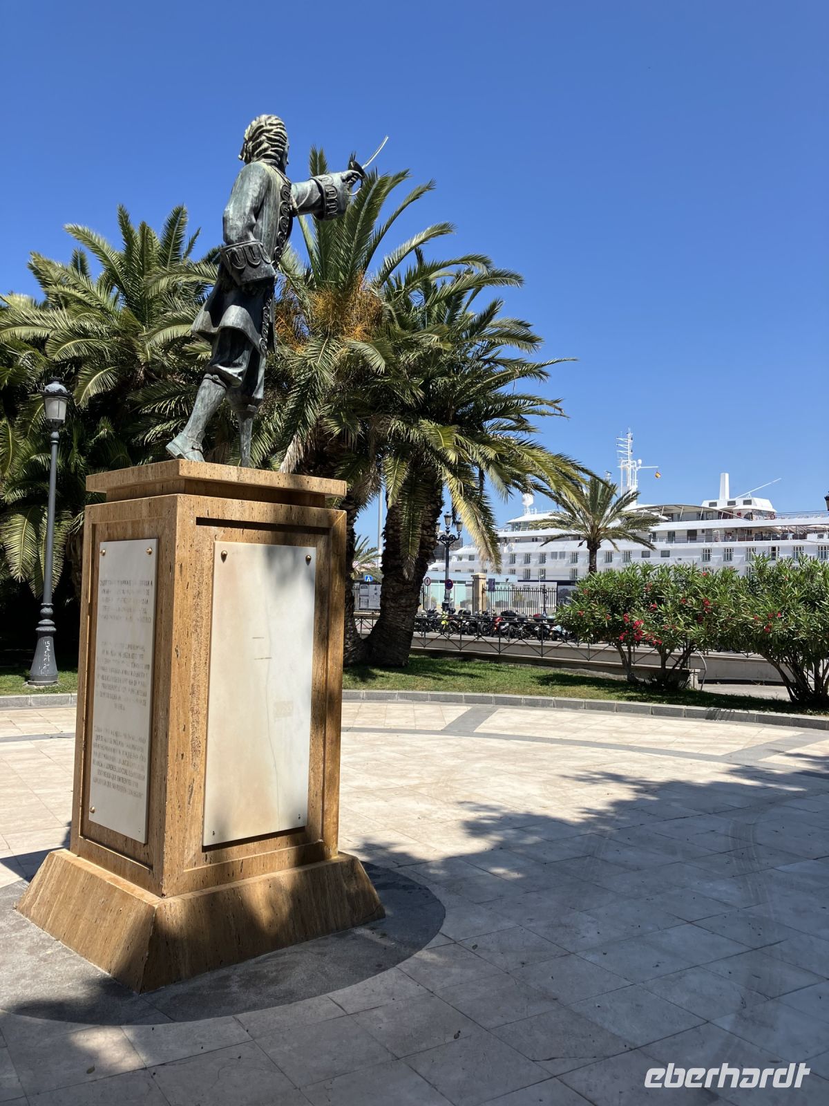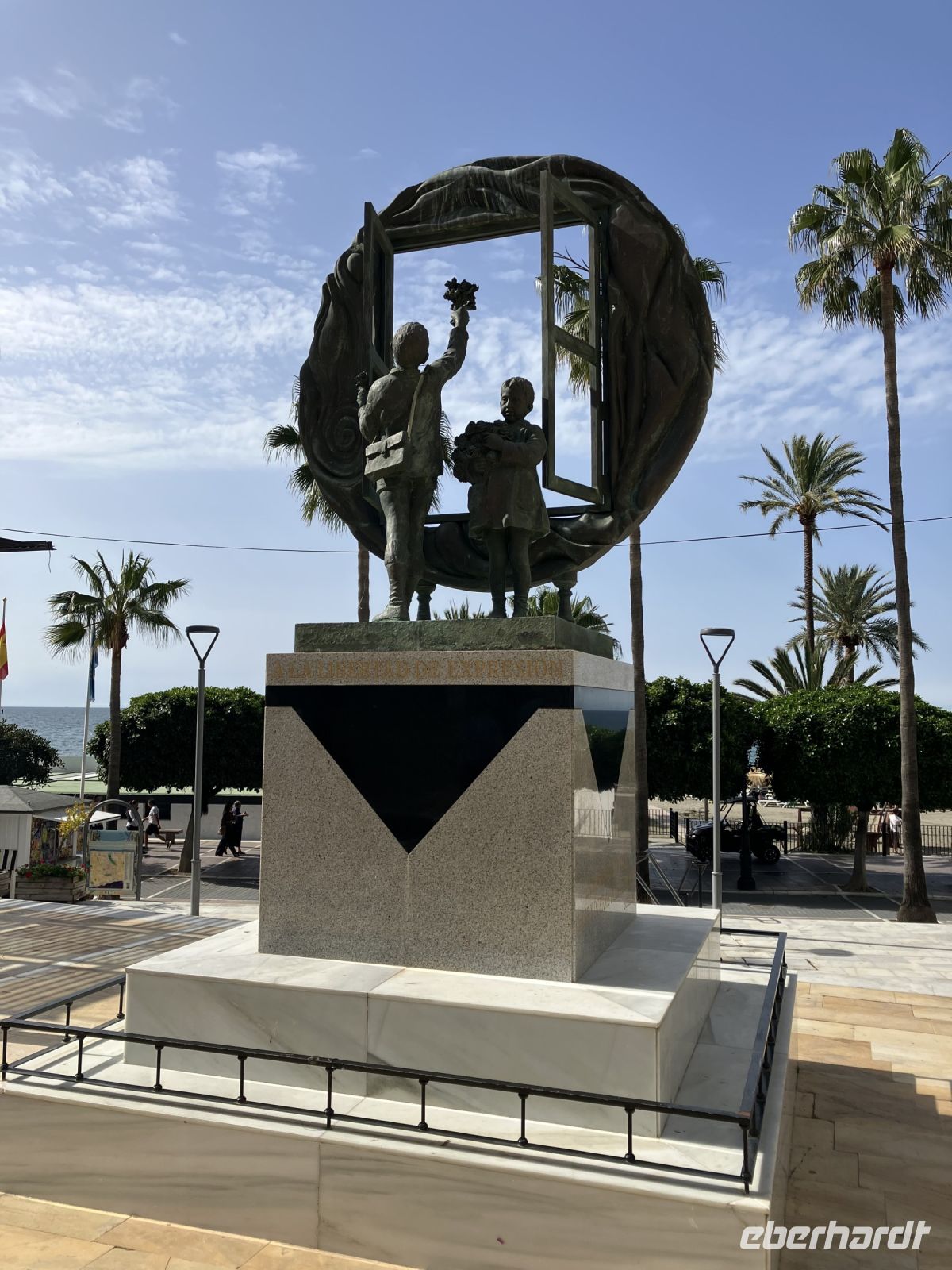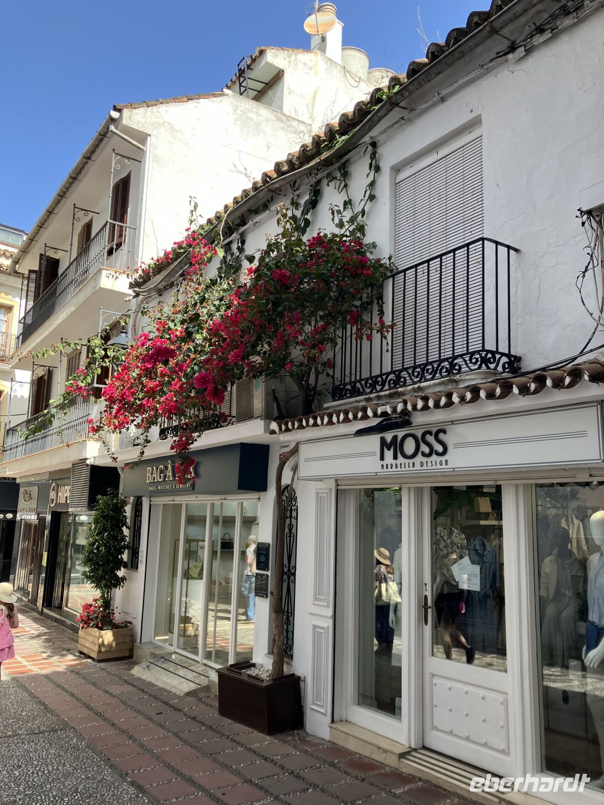 Von dort ging es weiter zum Paseo Dalí, einer kleinen Allee, die mit Skulpturen des exzentrischen Künstlers gespickt ist. Naja, vielleicht sind sie von Dalí. Genau weiß man das ja nicht. Trotzdem konnten wir nicht widerstehen, ein paar skurrile Fotos mit den surrealen Kunstwerken zu machen. Weiter bummelten wir durch die engen, blumengeschmückten Gassen der Altstadt zum Plaza de los Naranjos, mitten im Herzen von Marbella. Der traumhafte Platz ist umgeben von duftenden Orangenbäumen und lebhaften Cafés. Die Luft war erfüllt vom Aroma frisch gebrühten Kaffees, und wir wunderten uns, wie lebendig es auf dem Platz schon zuging. Hier nahmen wir uns etwas Zeit. Die meisten von uns ließen sich in einem der gemütlichen Cafés nieder, nippten an einem cremigen Café con leche und beobachteten das bunte Treiben. Einige stöberten in den kleinen Läden nach Souvenirs, während andere einfach die Sonne und die entspannte Atmosphäre genossen. Schmunzelnd stellten wir fest, dass die Frauen es bedauerten, dass wir nicht mehr Freizeit hatten, aber einige Männer eher froh darüber waren.