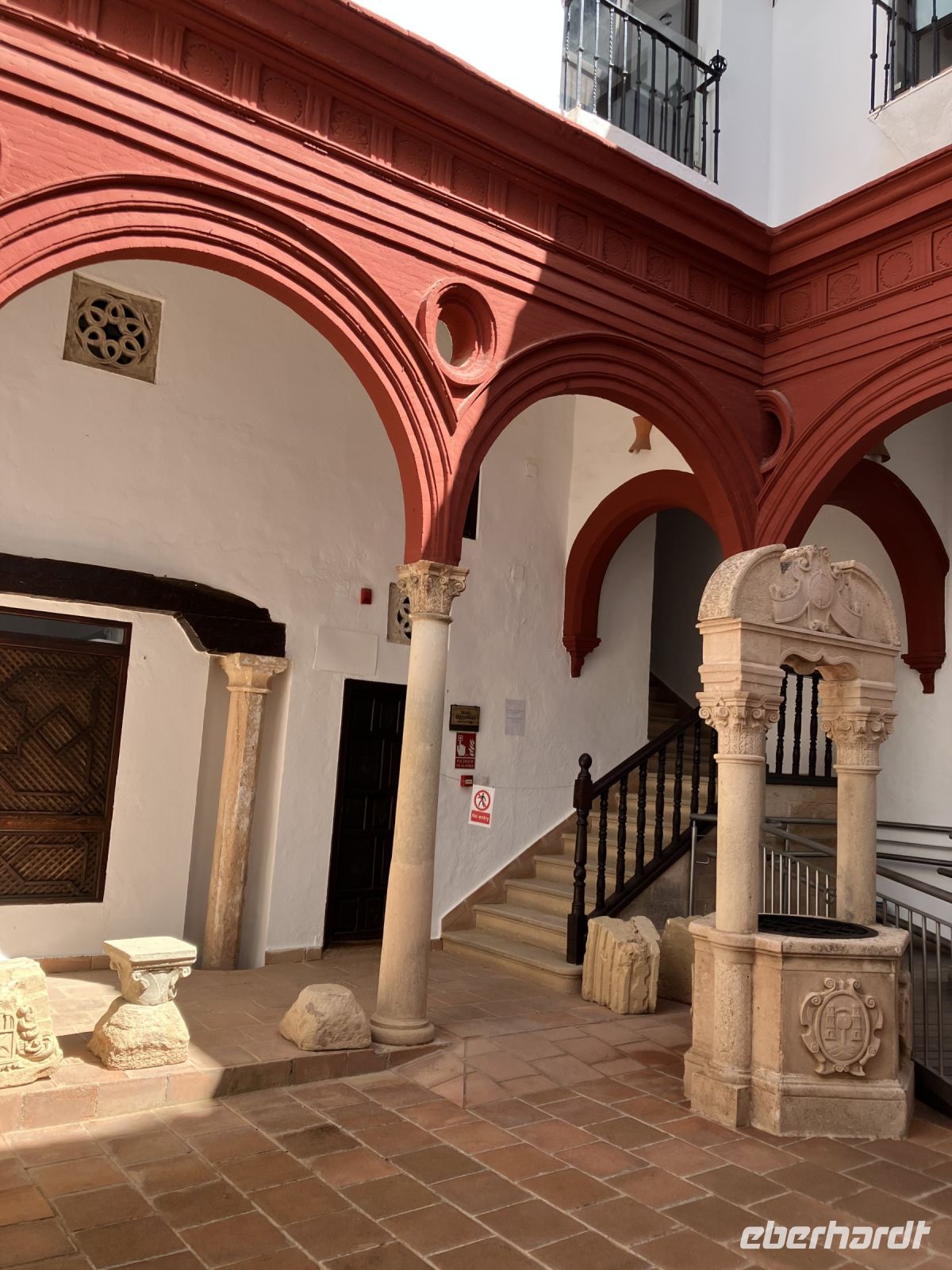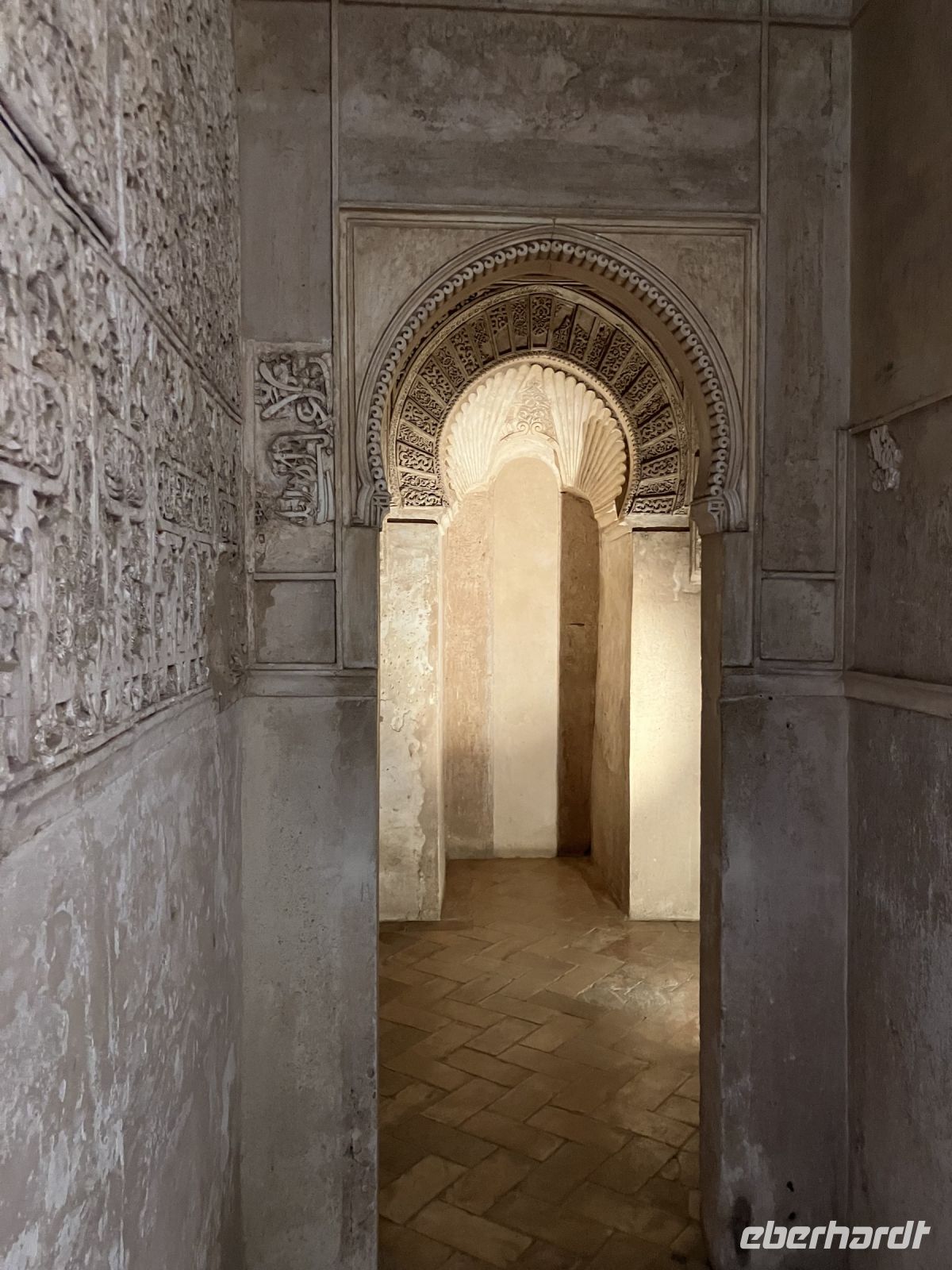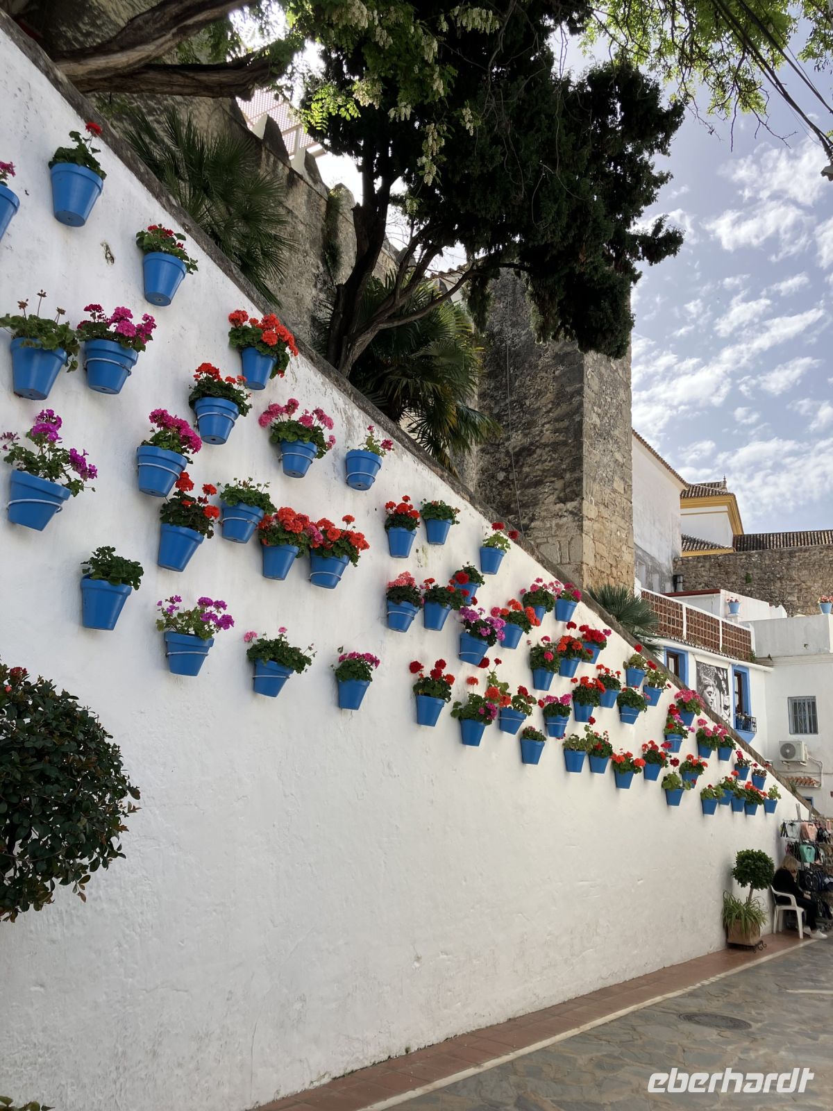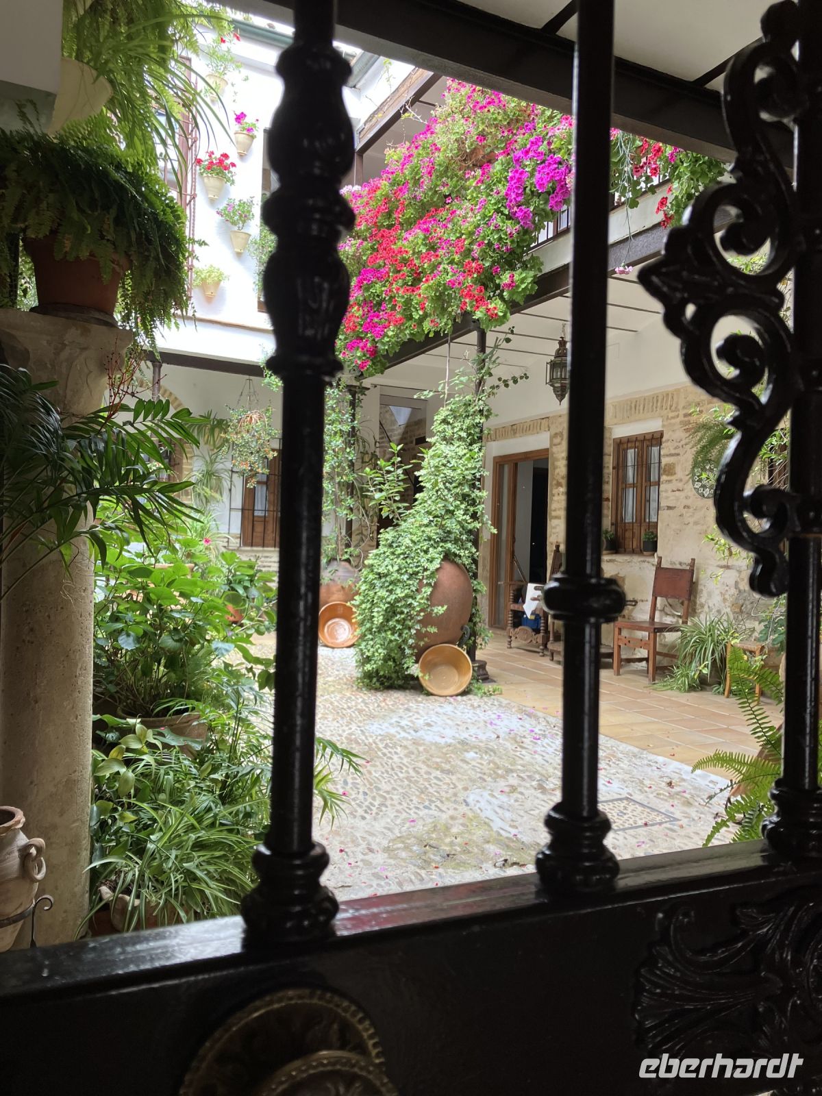 Direkt nach dem Frühstück trafen wir unsere Reiseführerin Inés vor unserem Hotel in der Altstadt, dem Herzen des einstigen Al-Andalus. Sie führte uns ins Judería, das jüdische Viertel, dessen enge Gassen seit dem 10. Jahrhundert von sephardischen Juden belebt wurden. Unser erster Stopp war die Synagoge, erbaut 1315, eine der wenigen erhaltenen in Spanien. Ihre filigranen Stuckarbeiten und hebräischen Inschriften erzählten von einer Zeit, in der Juden, Muslime und Christen in Córdoba koexistierten. Wir schlenderten weiter, warfen Blicke in blumengeschmückte Patios – typisch für Córdoba, wo die Innenhöfe seit maurischer Zeit das Leben prägen – und erreichten die berühmte Blumengasse, die Calleja de las Flores. Mit der Mezquita im Hintergrund war es, als posiere die Stadt extra für ein Postkartenfoto für uns. Und das Beste war, wir hatten diese kleine Gasse um diese Uhrzeit fast für uns allein.